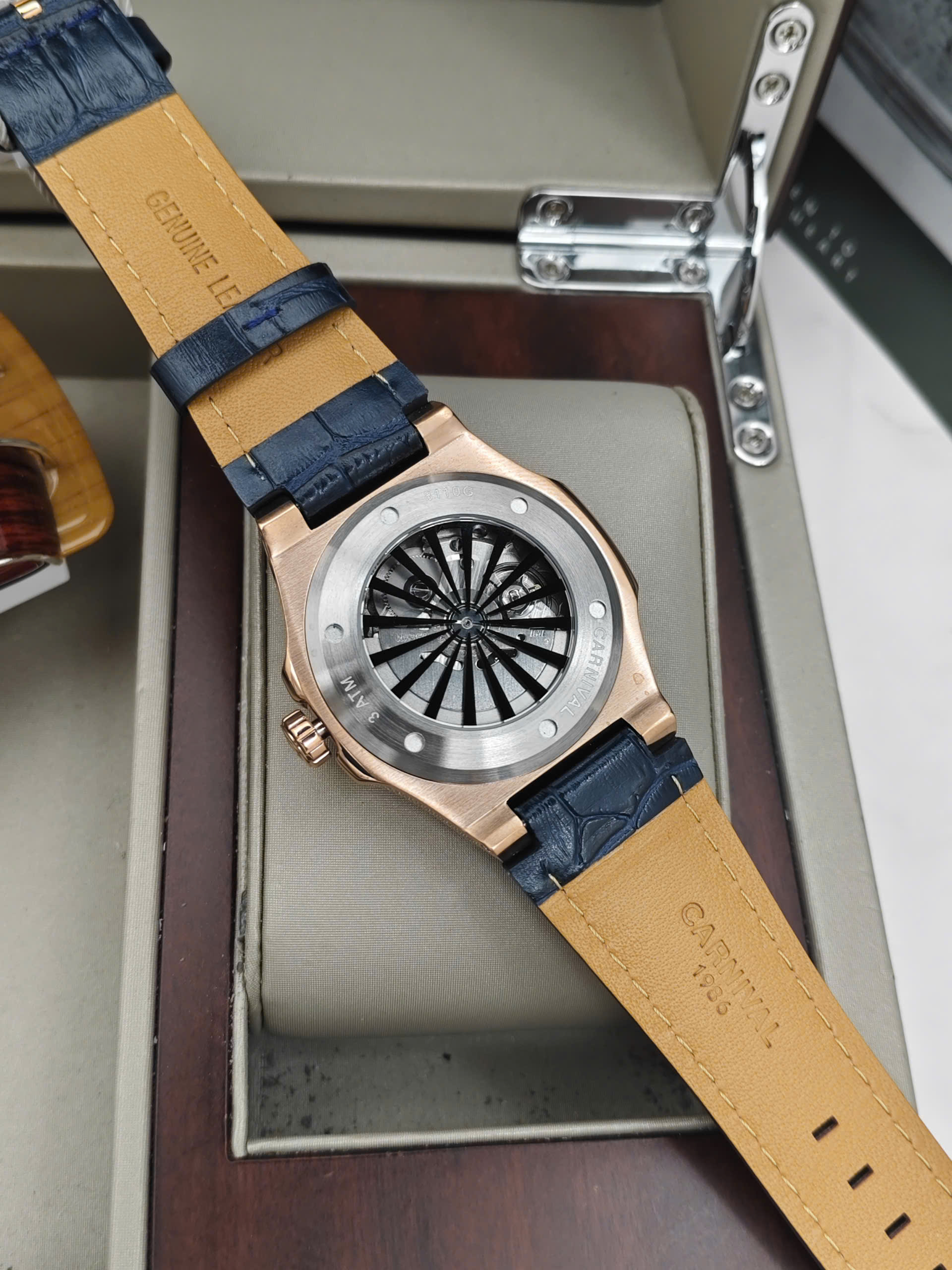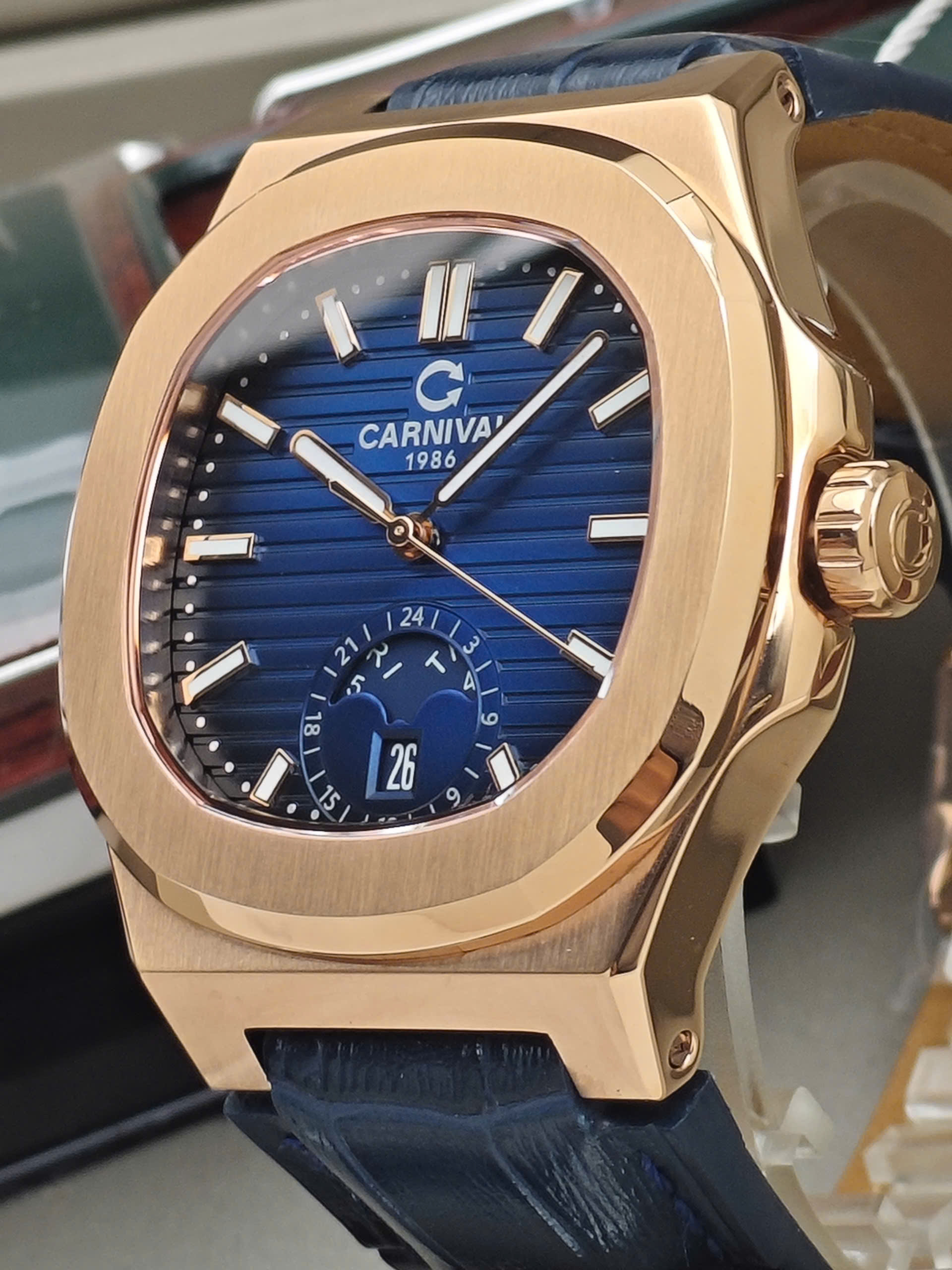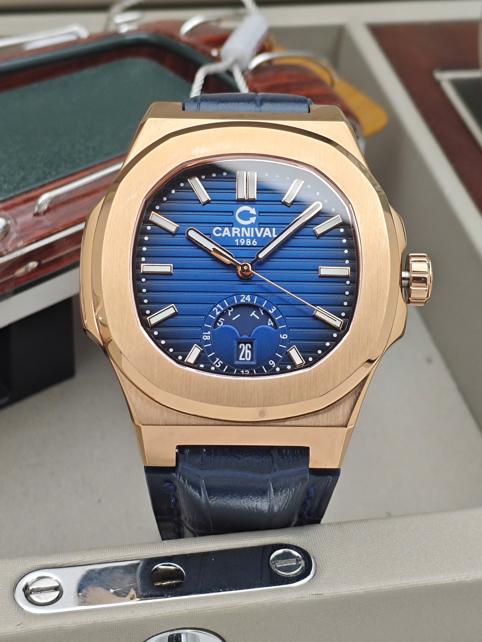 Carnival 8110G1-VH-DD-X được trang bị bộ máy cơ Automatic (tự động) tinh xảo với khả năng trữ cót lên đến 42 tiếng, cho phép đồng hồ hoạt động chính xác và bền bỉ theo thời gian mà không cần dùng pin. Để bảo vệ tối đa cho bộ máy bên trong, hãng đã sử dụng mặt kính Sapphire nguyên khối chống trầy xước vượt trội cùng vỏ thép không gỉ chắc chắn. Sự kết hợp giữa dây da cao cấp mềm mại và các chi tiết dạ quang trên kim số giúp người đeo không chỉ cảm thấy thoải mái mà còn dễ dàng theo dõi thời gian ngay cả trong điều kiện thiếu sáng.
