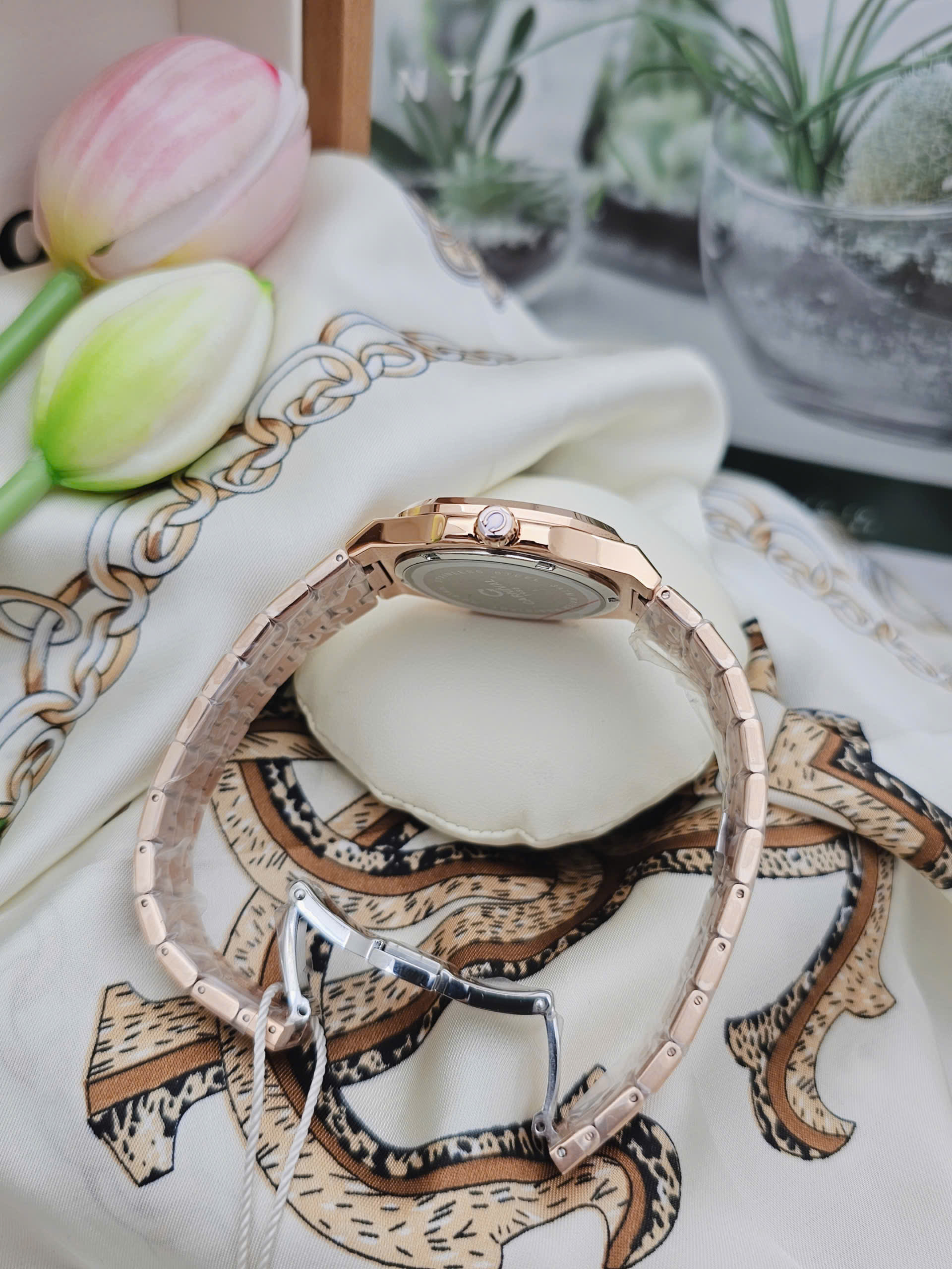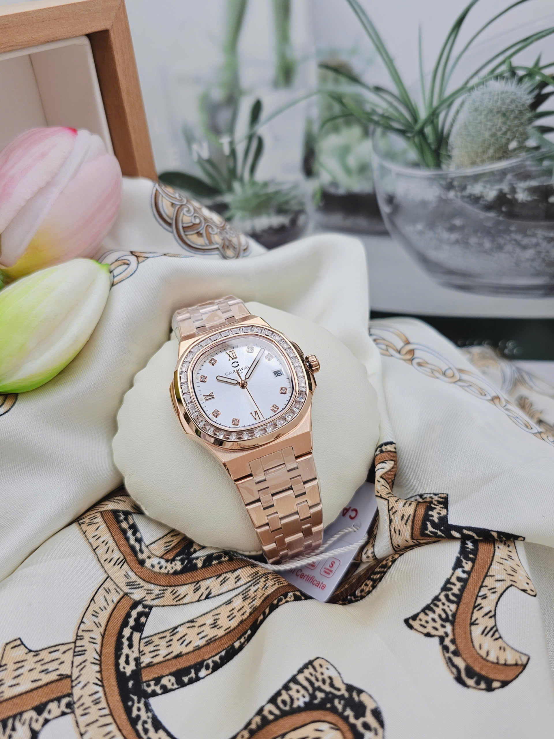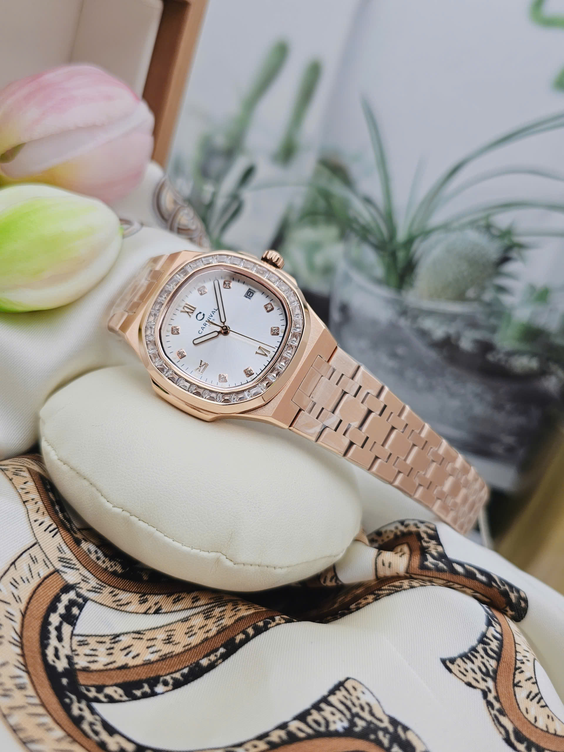 Đồng hồ nữ Carnival 8160L2-VH-T thuộc dòng sản phẩm 8160L đến từ thương hiệu Thụy Sỹ, nổi bật với thiết kế thanh lịch và tông màu vàng hồng (Rosegold) thời thượng. Sở hữu đường kính mặt số 34mm cùng độ dày chỉ 7.8mm, mẫu đồng hồ nữ Carnival mang đến vẻ đẹp mỏng nhẹ, tinh tế và cực kỳ tôn cổ tay phái đẹp. Đây là lựa chọn lý tưởng cho những ai đang tìm kiếm đồng hồ nữ Carnival chính hãng phong cách sang trọng, nữ tính.