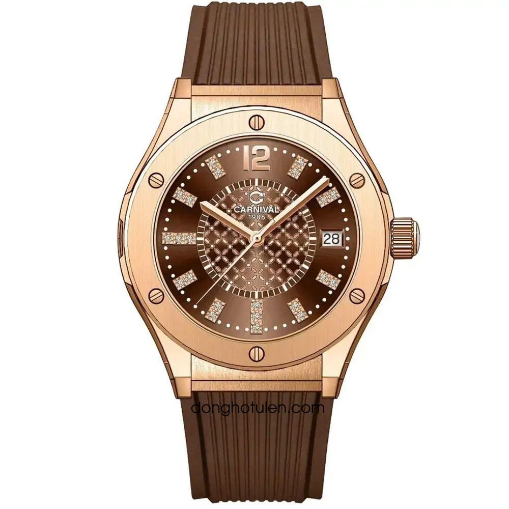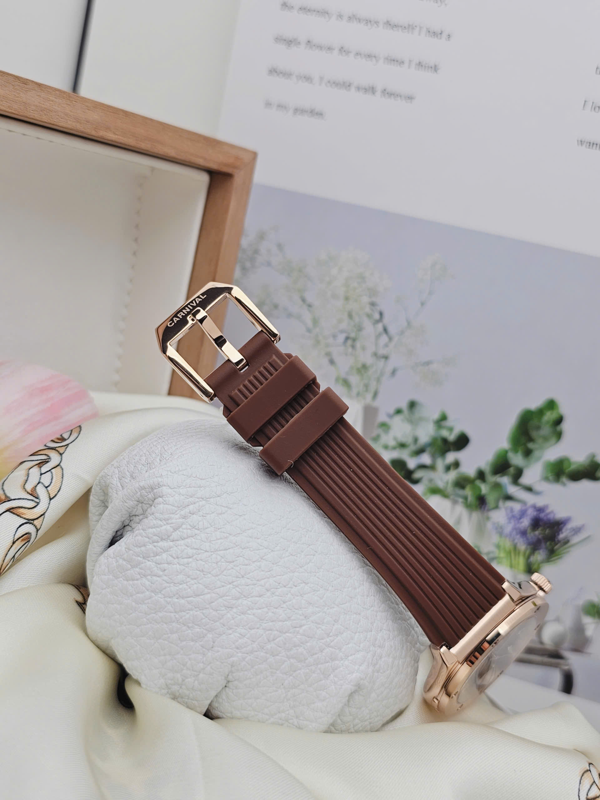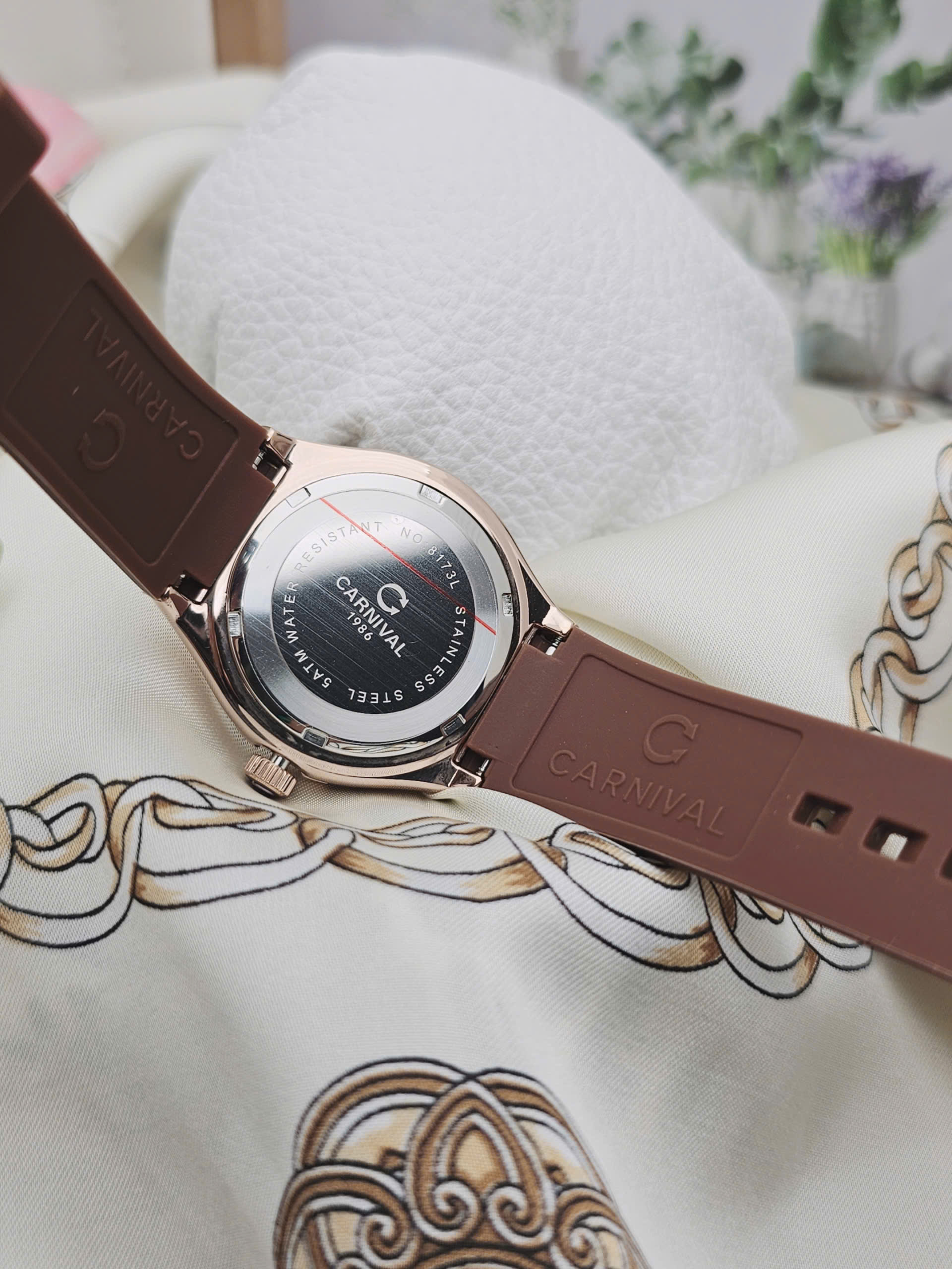 Đồng hồ nữ Carnival Mặt Nâu Dây silicone Đính đá 8173L-VH-N