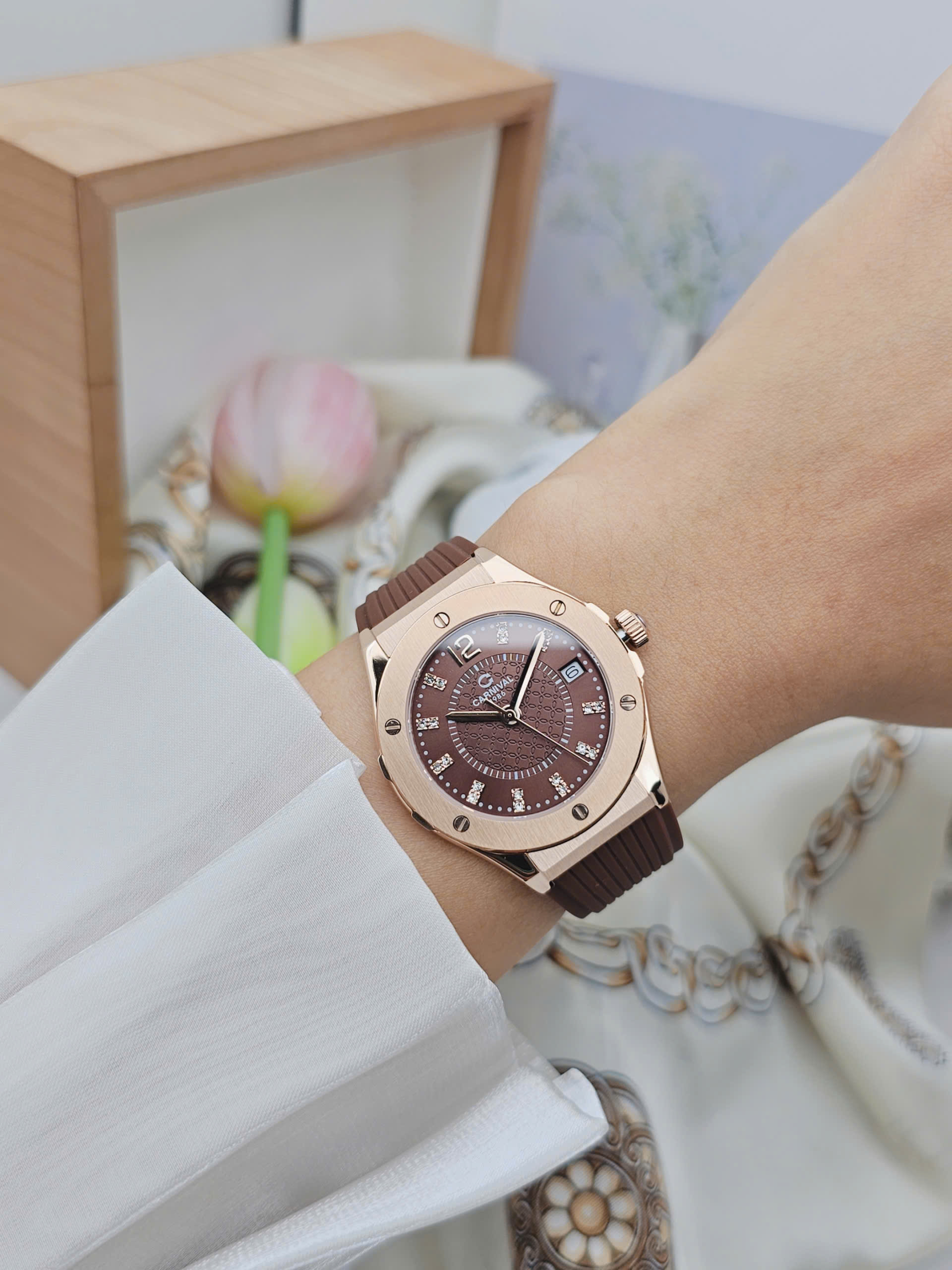 Đồng hồ nữ Carnival 8173L-VH-N chính hãng với form dáng cực kì giống với Hublot nhưng giá cả hợp túi tiền hơn rất nhiều, còn được biết đến nhiều với tên gọi tiểu Hublot Carnival hay bản dupe Hublot nữ. Đồng hồ Carnival nữ 8173L được trang bị dây cao su, viền đính đá đẹp mắt và sang trọng. Mặt dial hoa và cọc số đính đá cực sang mang sự ảnh hưởng của siêu phẩm Ferragamo F80 đình đám mang đến trải nghiệm tuyệt vời dành cho bạn với mức giá cực kỳ dễ tiếp cận.