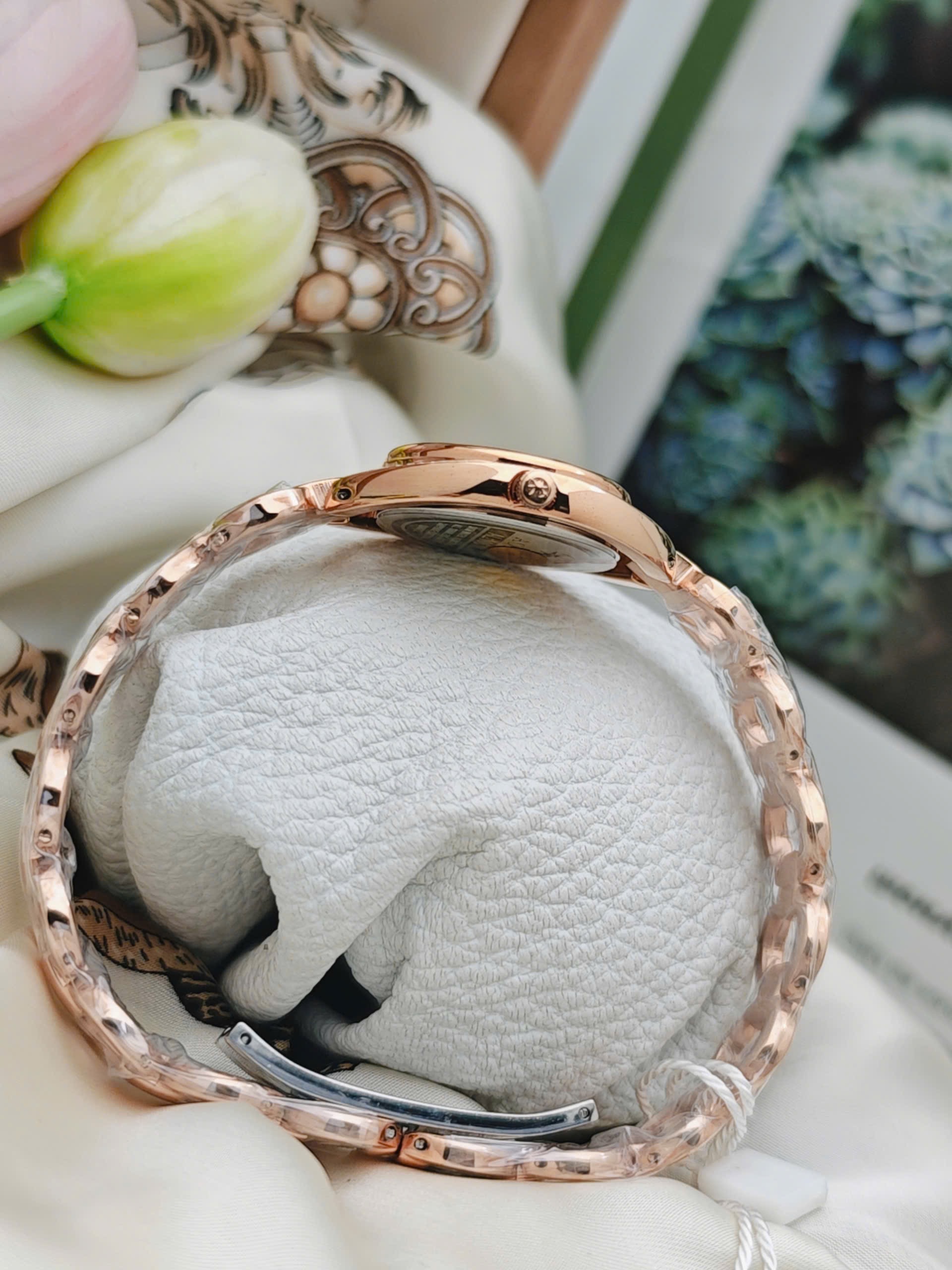 Về cấu hình bên trong, Aolix AL1061-RGW-SRG khẳng định chất lượng vượt trội với nền tảng xuất xứ từ Nhật Bản. Mặt số của đồng hồ được bảo vệ bởi lớp kính Sapphire cao cấp, mang đến khả năng chống trầy xước tuyệt vời, giúp mặt kính luôn trong suốt và an toàn trước những va chạm vô ý hằng ngày. Trái tim của chiếc đồng hồ là bộ máy Quartz (pin) Miyota OS10 trứ danh của Nhật Bản. Nhờ bộ máy này, sản phẩm vận hành cực kỳ êm ái, bền bỉ và đảm bảo độ chính xác cao về thời gian, giúp các quý cô hoàn toàn yên tâm khi sử dụng.