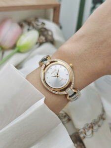 Đồng hồ Aolix nữ AL1061-GW-SD là một món phụ kiện thời trang lý tưởng dành cho phái đẹp, mang đậm phong cách năng động và cá tính. Với thiết kế mặt số có đường kính 30mm nhỏ gọn, chiếc đồng hồ ôm trọn và tôn lên vẻ thanh thoát cho cổ tay của người phụ nữ Á Đông. Điểm nhấn nổi bật nhất của sản phẩm chính là bộ vỏ và dây đeo được chế tác từ chất liệu thép không gỉ, kết hợp cùng công nghệ mạ vàng PVD tiên tiến. Điều này không chỉ mang lại sắc vàng rực rỡ, sang trọng mà còn giúp đồng hồ bền màu và chống ăn mòn hiệu quả theo thời gian.