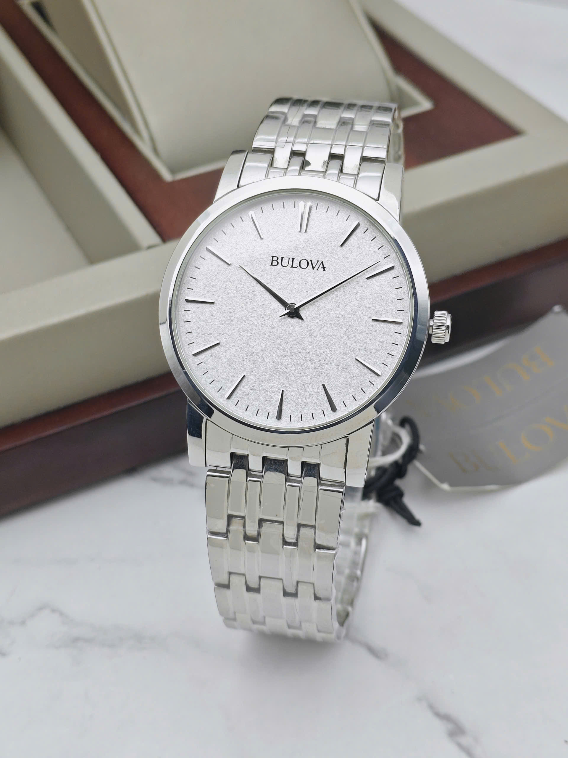 Bulova Classic Watch 38mm sử dụng quai thép không gỉ cao cấp, mang đến cảm giác chắc chắn, sang trọng và bền bỉ theo thời gian. Chất liệu thép không chỉ giúp đồng hồ giữ được vẻ ngoài sáng đẹp mà còn tạo sự thoải mái khi đeo lâu. Với thiết kế Classic đặc trưng, mẫu đồng hồ này không chỉ là công cụ xem giờ mà còn là phụ kiện thời trang tinh tế, góp phần khẳng định phong cách chững chạc và gu thẩm mỹ của người đàn ông hiện đại.