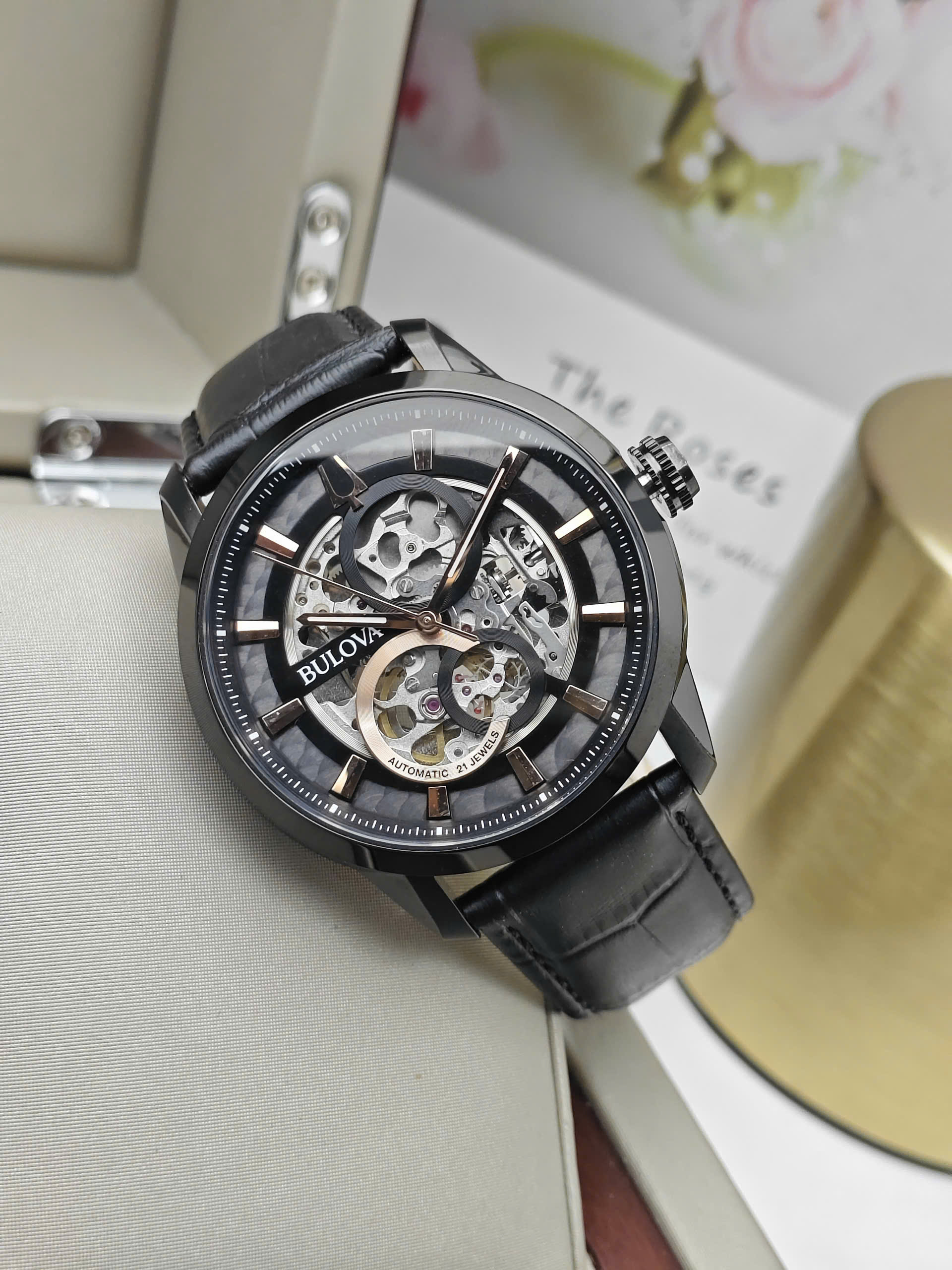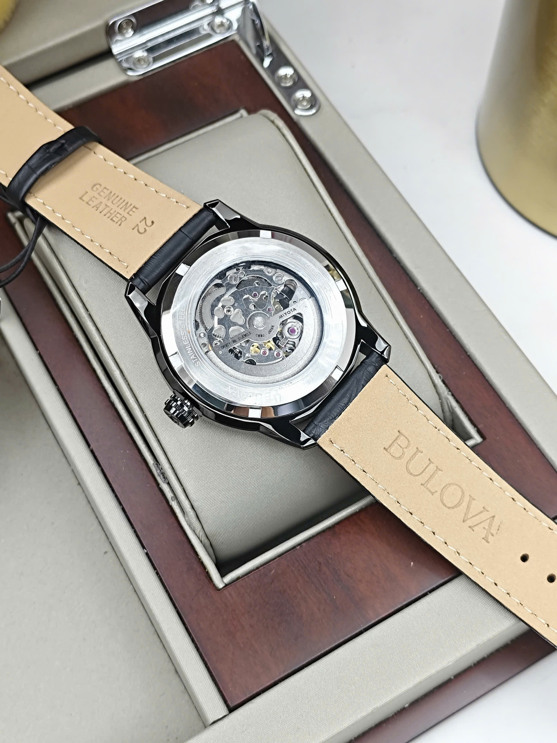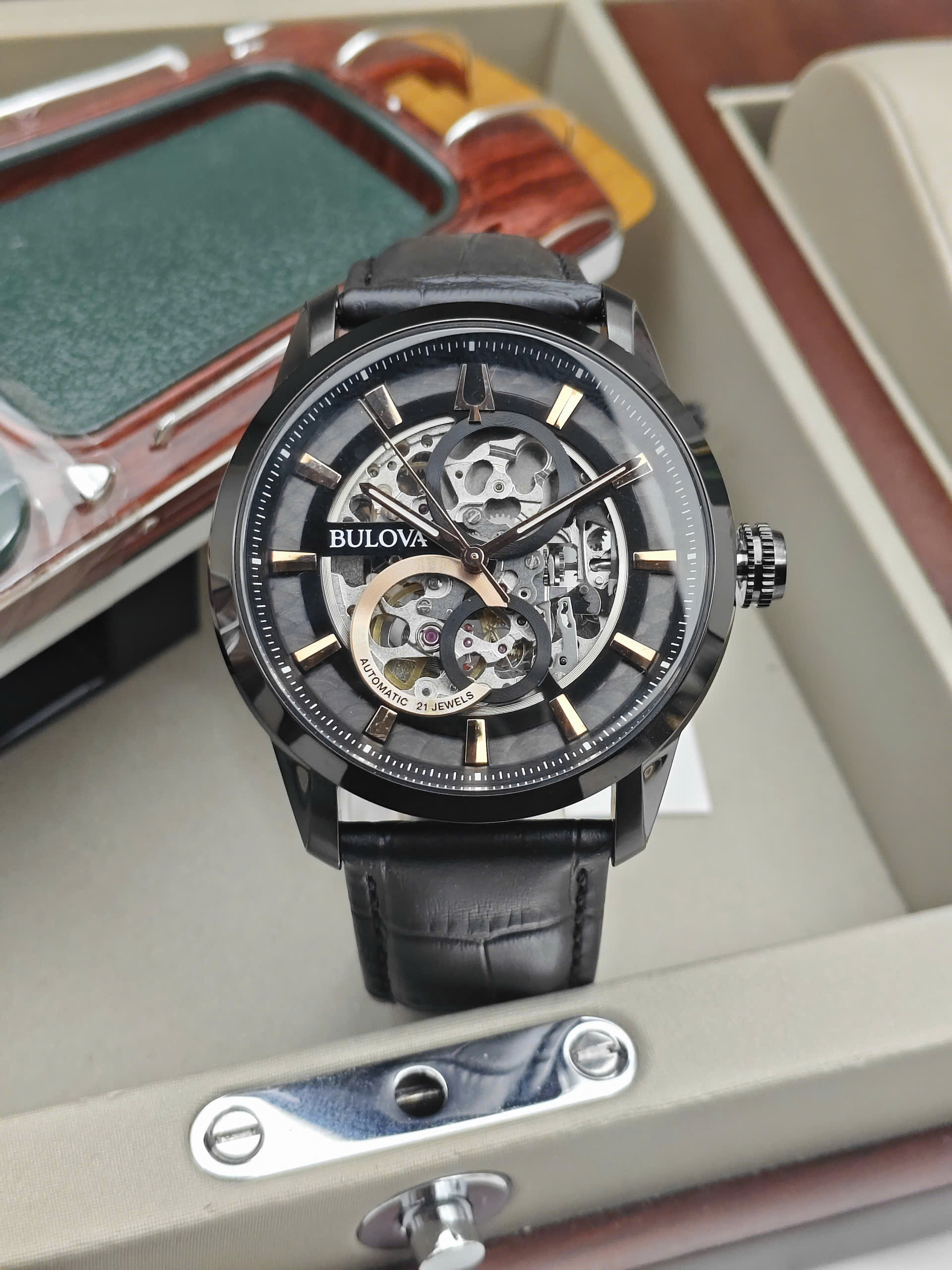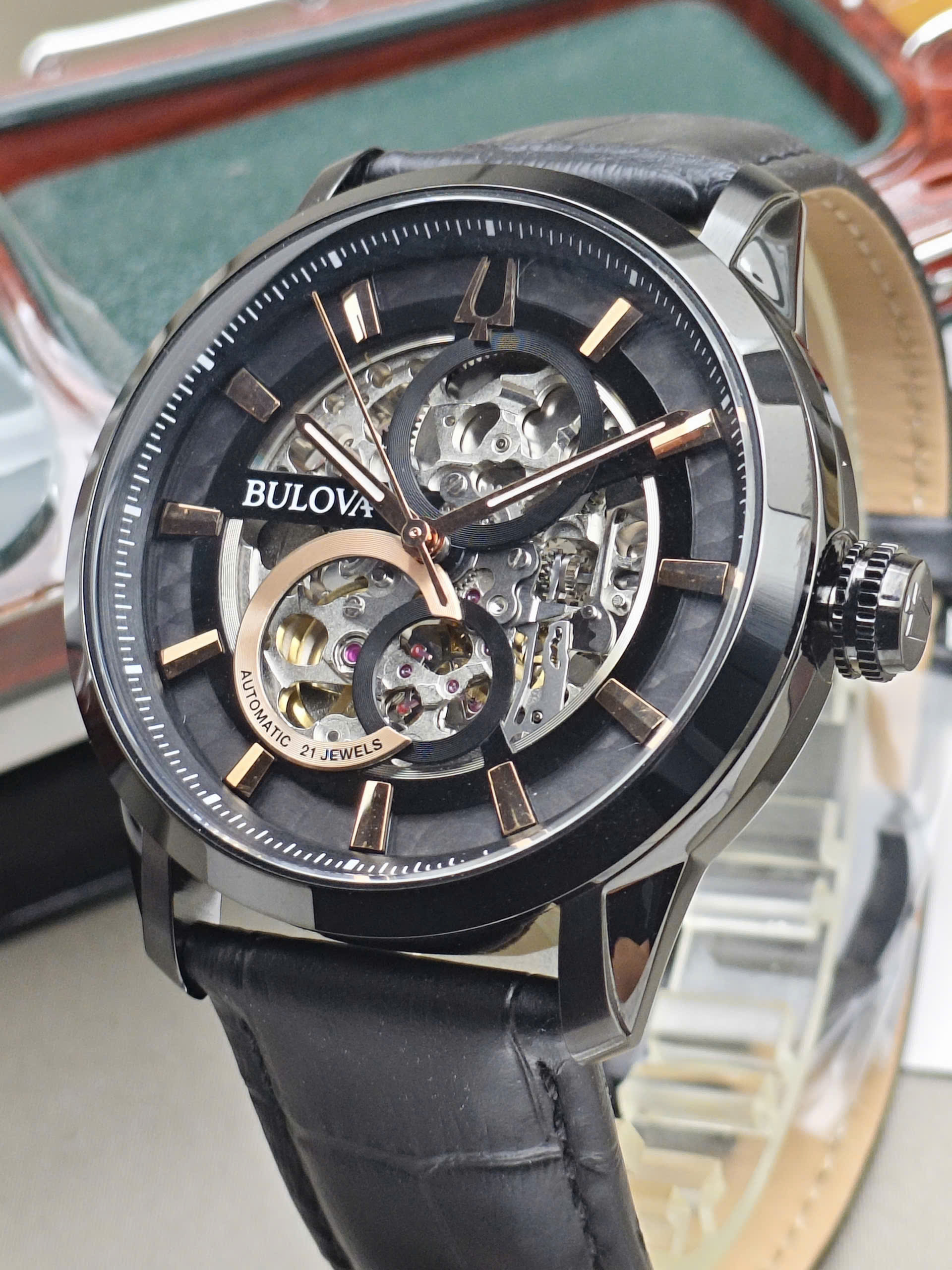 Đồng hồ Bulova 96A206 được trang bị bộ máy cơ automatic bền bỉ, vận hành ổn định với các chức năng giờ, phút, giây và lịch ngày tiện lợi. Vỏ thép không gỉ cao cấp mang lại độ bền và khả năng chống ăn mòn tốt theo thời gian. Dây da màu xanh nổi bật nhưng vẫn giữ được nét tinh tế, tạo điểm nhấn khác biệt và cảm giác đeo êm ái. Mặt kính sapphire chống trầy xước giúp bảo vệ đồng hồ hiệu quả trong quá trình sử dụng hàng ngày.