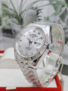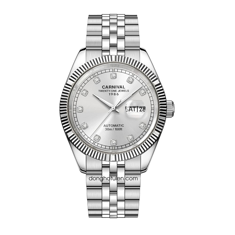 Đồng hồ Carnival 8131G-VT-T là mẫu đồng hồ nam cơ tự động mang đậm dấu ấn thanh lịch và sang trọng, kết hợp hoàn hảo giữa nét truyền thống và tinh thần hiện đại. Phần mặt tròn cổ điển kích thước 40–41mm cùng niềng khía giúp tổng thể đồng hồ trông gọn gàng mà vẫn đậm chất nam tính.