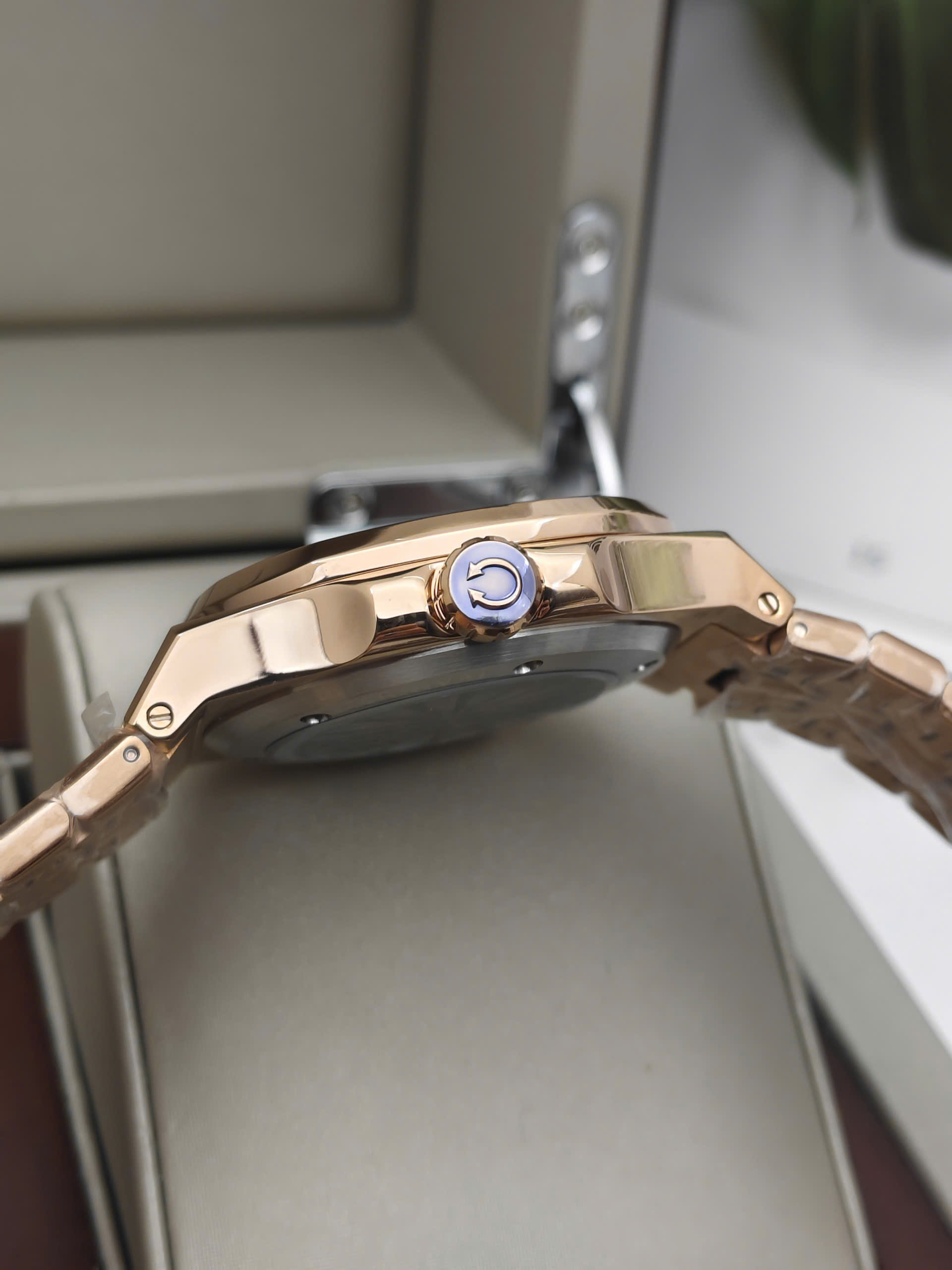 Vỏ và dây thép không gỉ phủ màu vàng hồng được hoàn thiện tỉ mỉ, vừa bền bỉ vừa sang trọng. Mặt kính sapphire cao cấp có khả năng chống trầy xước hiệu quả, bảo vệ tối ưu mặt số trong quá trình sử dụng. Đồng hồ sử dụng bộ máy cơ Automatic xuất xứ Nhật Bản, vận hành mượt mà nhờ chuyển động cổ tay, mang lại trải nghiệm cơ khí đầy cuốn hút cho những ai yêu thích đồng hồ truyền thống.