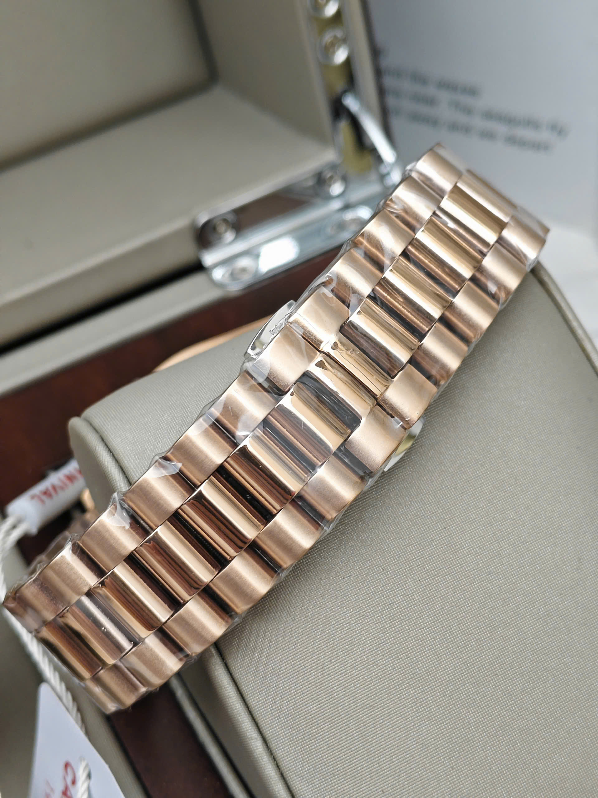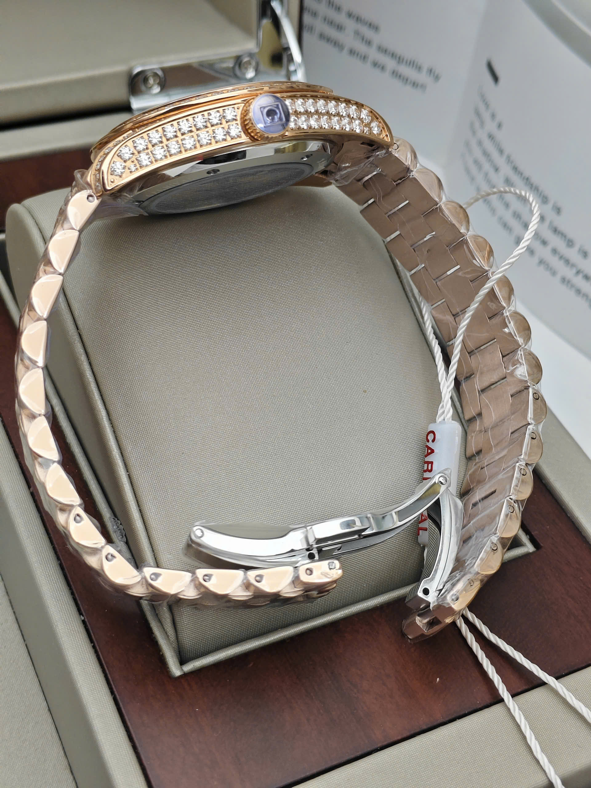 Đồng hồ Carnival 8907G-VH-N được trang bị bộ máy cơ automatic có xuất xứ từ Nhật Bản, nổi tiếng với độ chính xác và độ bền cao. Các chức năng giờ, phút, giây cùng lịch ngày và thứ được bố trí rõ ràng, hỗ trợ tối đa cho nhu cầu sử dụng hằng ngày. Vỏ thép không gỉ màu bạc kết hợp dây thép mạ vàng hồng mang lại cảm giác chắc chắn và sang trọng. Mặt kính sapphire chống trầy xước hiệu quả, giúp bảo vệ đồng hồ luôn bền đẹp theo thời gian.