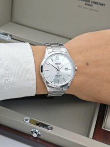 Với size 40mm gọn gàng, dễ đeo, được trang bị kính sapphire chống xước tốt cùng với độ chống nước 5 ATM chắc chắn sẽ mang lại cho bạn trải nghiệm một chiếc đồng hồ bền bỉ tuyệt vời.