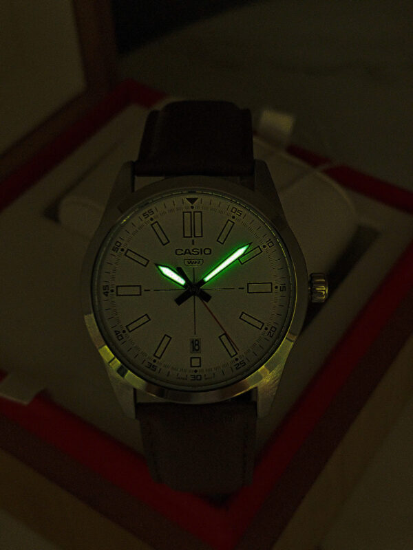 Với khả năng chống nước 3 ATM, mẫu đồng hồ này đáp ứng tốt các nhu cầu cơ bản như rửa tay hoặc đi mưa nhẹ. Casio MTP-VD02L-7EUDF không chỉ là công cụ xem giờ mà còn là phụ kiện thời trang dễ phối với nhiều trang phục khác nhau. Sản phẩm được bảo hành quốc tế 1 năm, mang lại sự yên tâm khi sử dụng. Đây là lựa chọn phù hợp cho những ai đang tìm kiếm một chiếc đồng hồ nam bền bỉ, dễ đeo và mang đậm chất Nhật Bản.