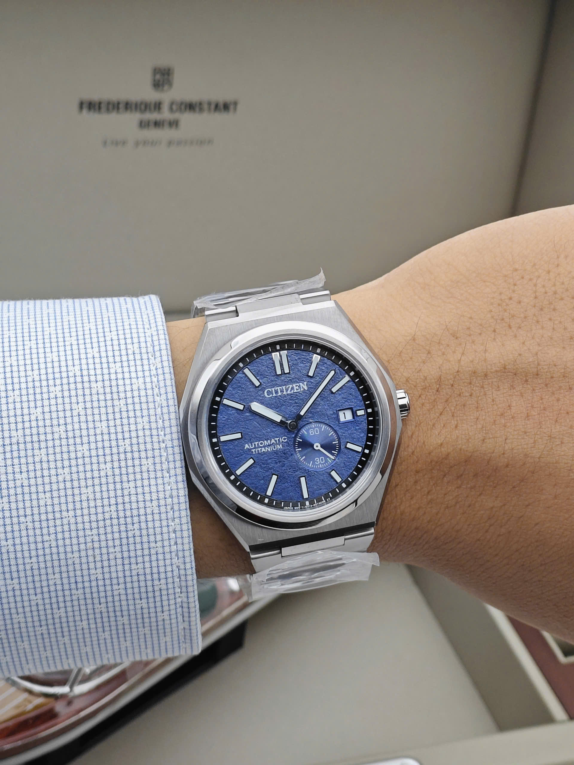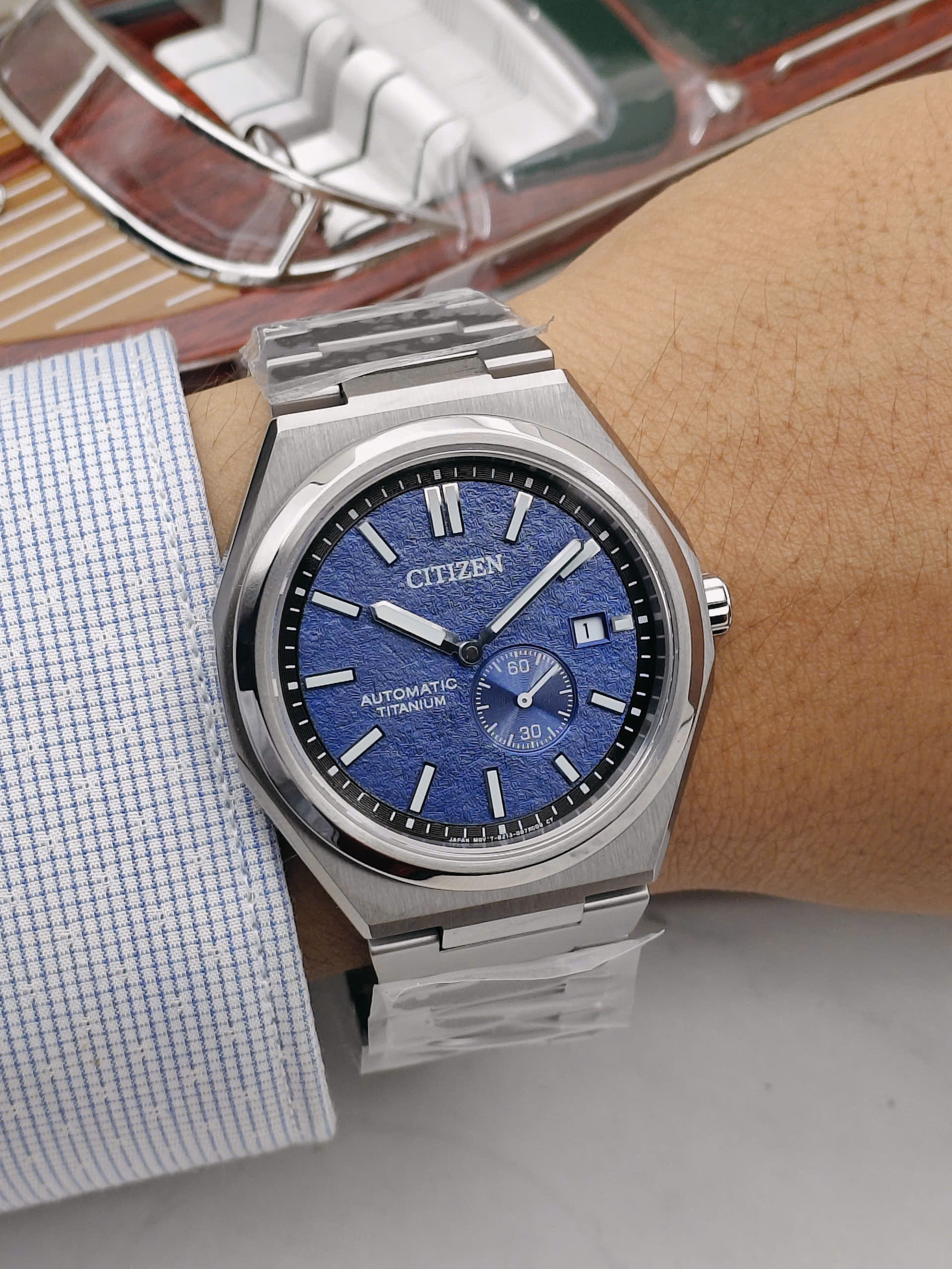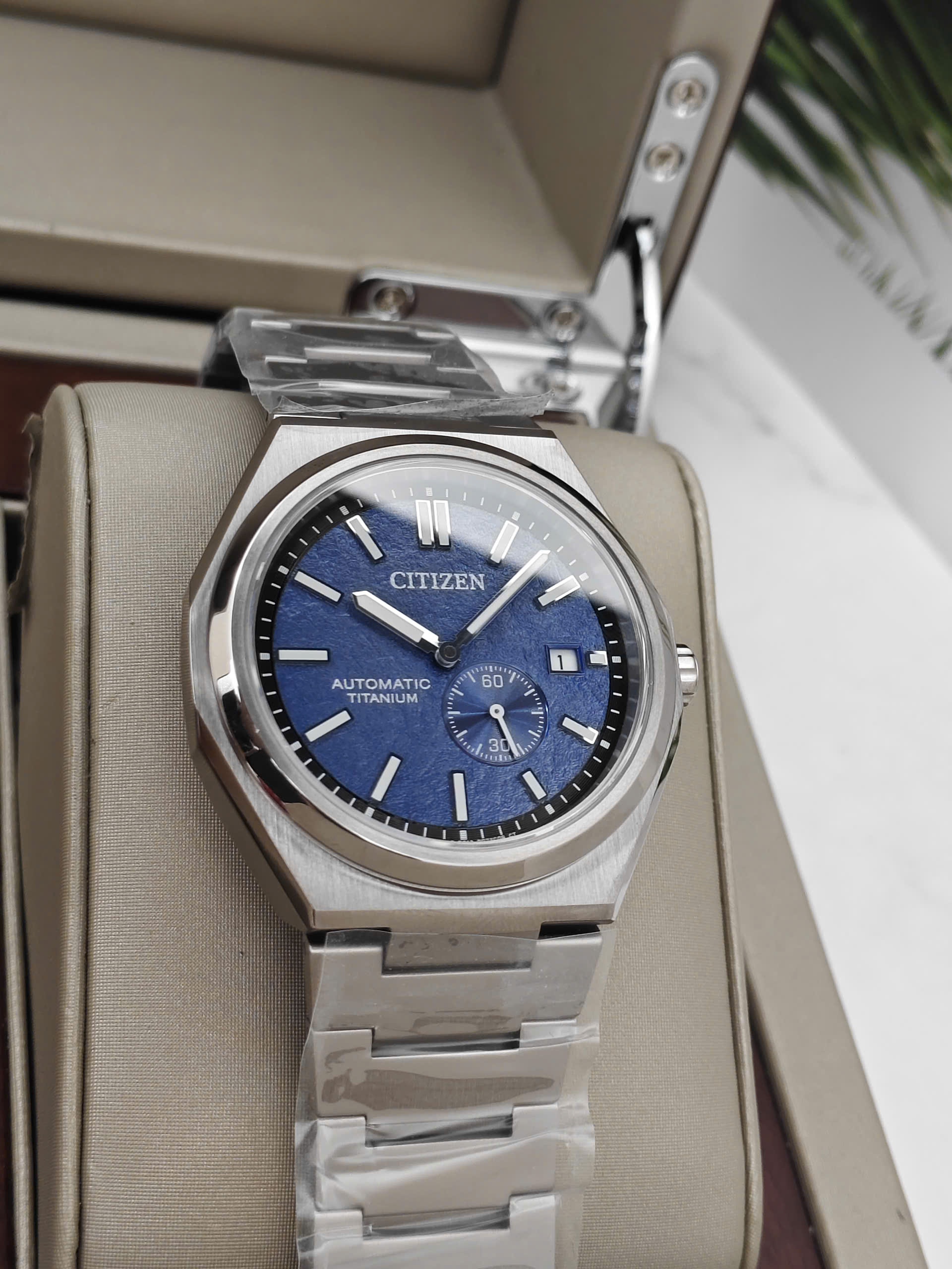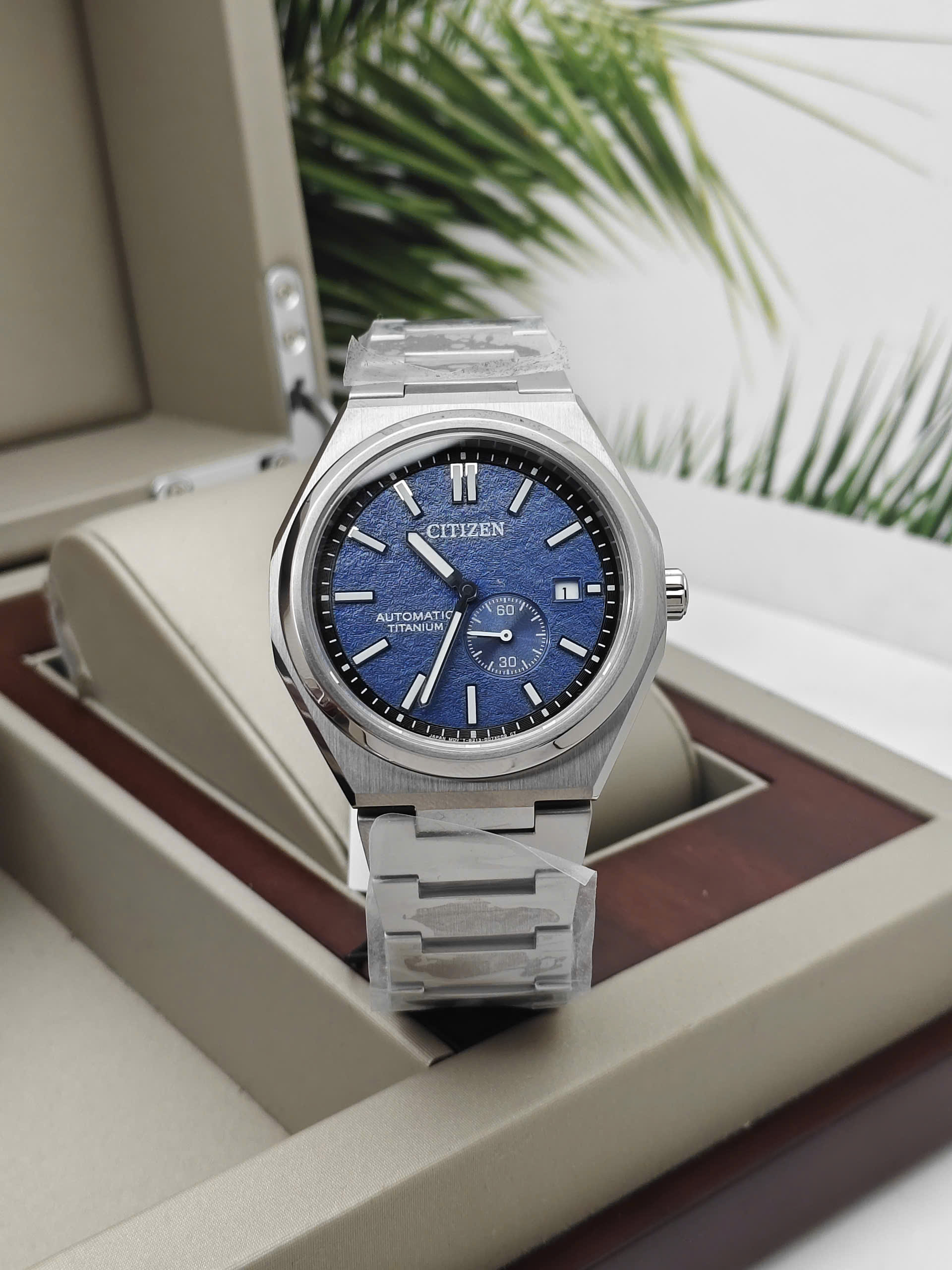 Đồng hồ nam tự động Citizen Zenshin Super Titanium Kim giây nhỏ Mặt xanh NJ0180-80L