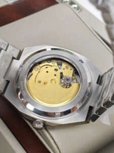 Trang bị kim giây nhỏ không đồng trục tạo điểm nhấn hiện đại cho chiếc đồng hồ cùng mặt sau lộ đáy cho bạn có thể quan sát được vẻ đẹp của cổ máy bên trong. Bên cạnh đó việc trang bị lịch ngày ở góc 3 giờ cũng mang lại sự tiện dụng tuyệt vời.