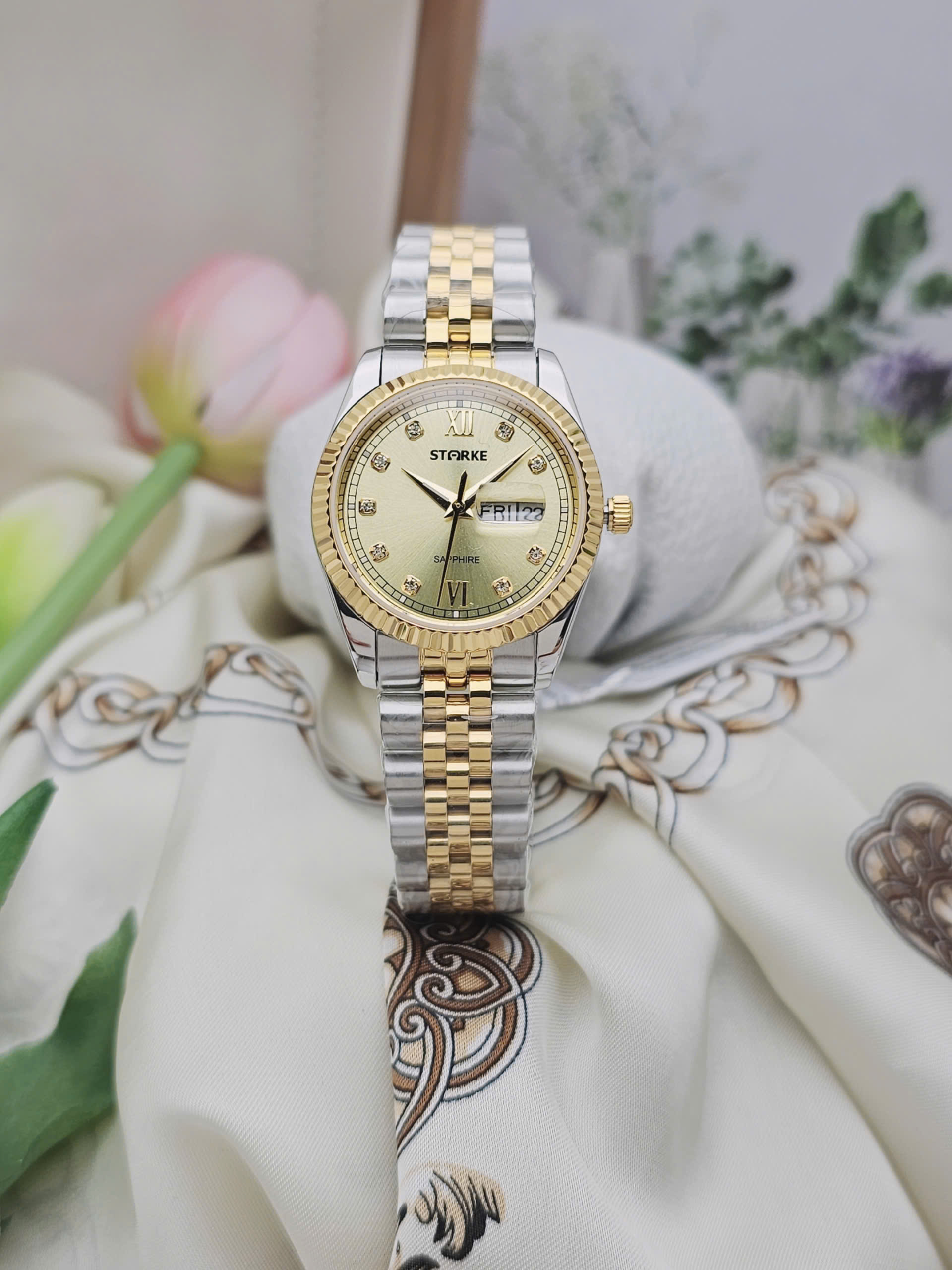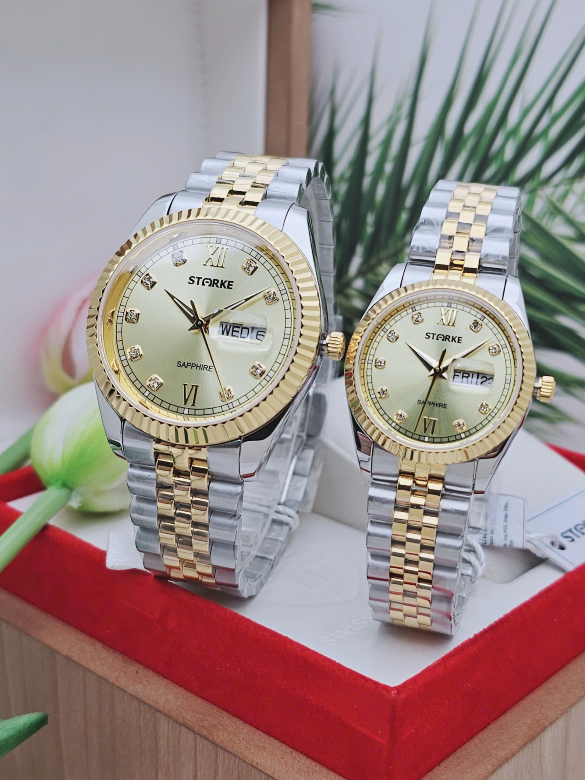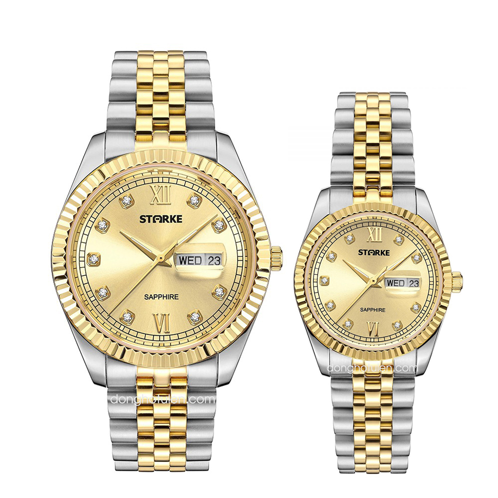 Đồng hồ đôi STARKE SK185AL-SK185AM Demi Vàng Mặt Vàng
