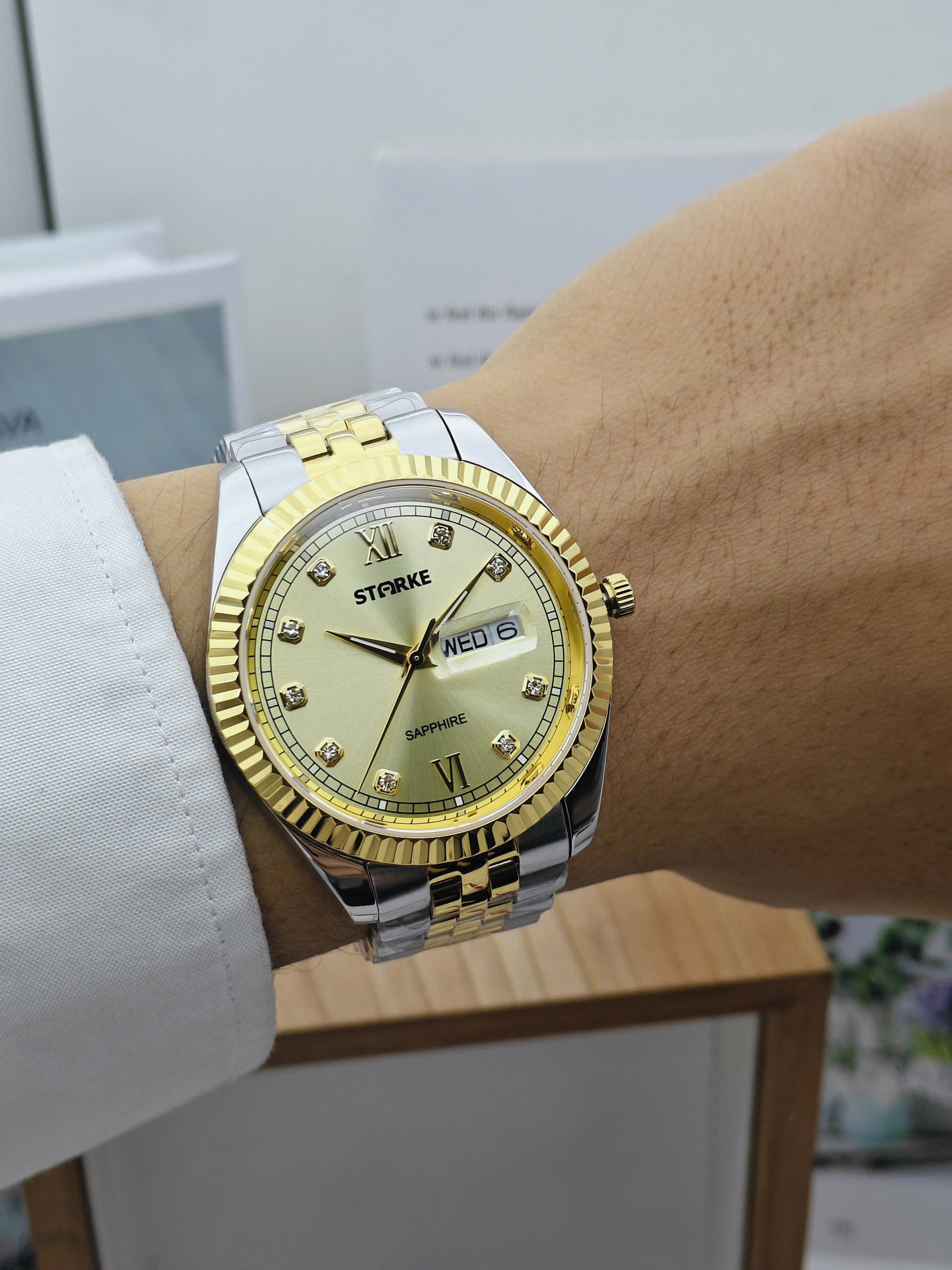 Cả hai mẫu đồng hồ trong bộ đôi Starke SK185 đều có đường kính mặt số 40mm, mang lại cảm giác cân đối và hiện đại khi đeo. Kính Sapphire cao cấp giúp chống trầy xước hiệu quả, bảo vệ mặt đồng hồ luôn sáng đẹp theo thời gian. Bộ máy quartz vận hành chính xác, ổn định, đáp ứng tốt nhu cầu xem giờ hằng ngày. Các chức năng cơ bản như giờ, phút, giây được thể hiện rõ ràng, tối giản, phù hợp với những ai yêu thích phong cách gọn gàng và tinh tế.