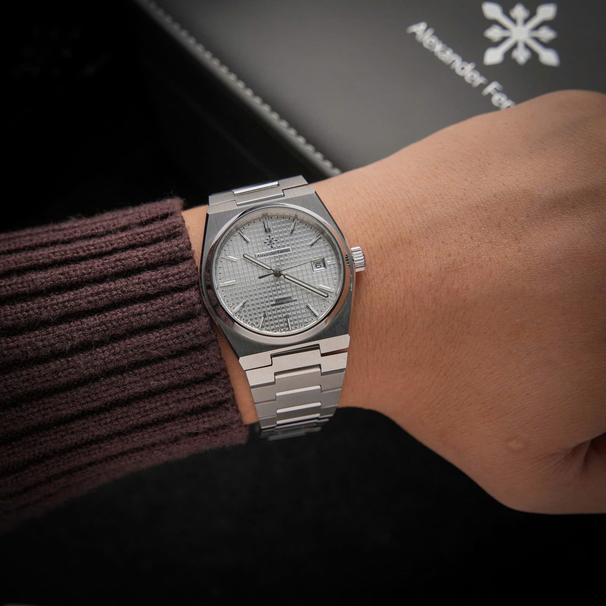 Alexander Ferros 5052S02 mang phong cách thanh lịch vượt thời gian, phù hợp với quý ông yêu sự tinh giản và chuẩn mực. Mặt số trắng trang nhã kết hợp viền và dây thép không gỉ màu bạc tạo nên tổng thể hài hòa, dễ phối trang phục. Kích thước 38mm gọn gàng, vừa vặn cổ tay, thích hợp cho cả môi trường công sở lẫn các dịp trang trọng. Mặt kính sapphire trong suốt giúp giữ trọn vẻ đẹp tinh tế theo năm tháng.