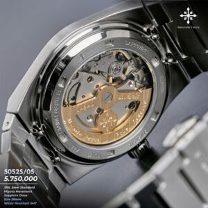 Mẫu 5052S05 được trang bị bộ máy cơ tự động xuất xứ Nhật Bản, vận hành ổn định và chính xác. Các chức năng cơ bản như giờ, phút, giây và lịch ngày được bố trí rõ ràng, dễ theo dõi. Khả năng chịu nước 5ATM đáp ứng tốt nhu cầu sinh hoạt hằng ngày. Vỏ và dây thép không gỉ chắc chắn, kết hợp kính sapphire chống trầy xước, giúp đồng hồ duy trì hiệu suất và hình thức lâu dài.