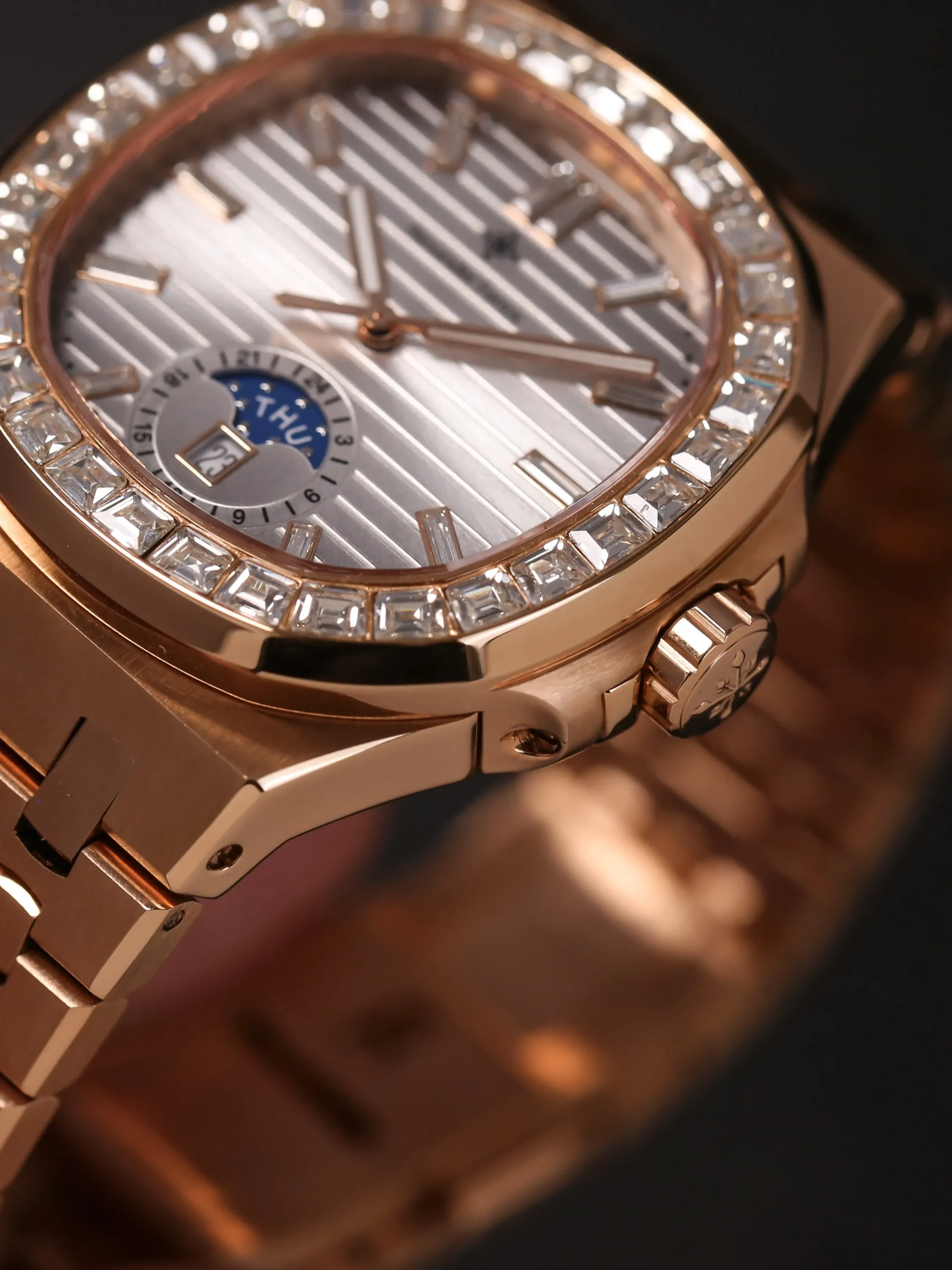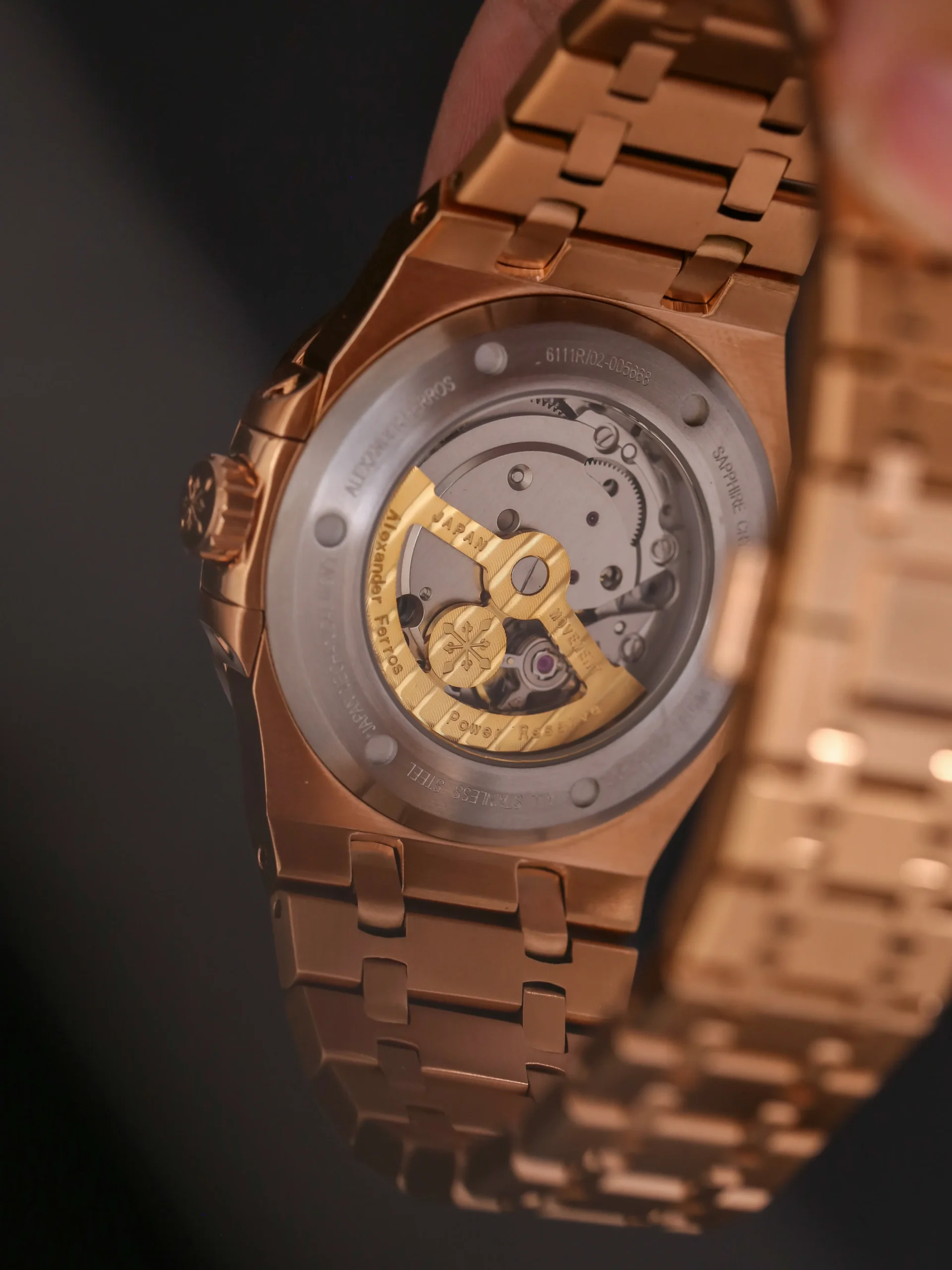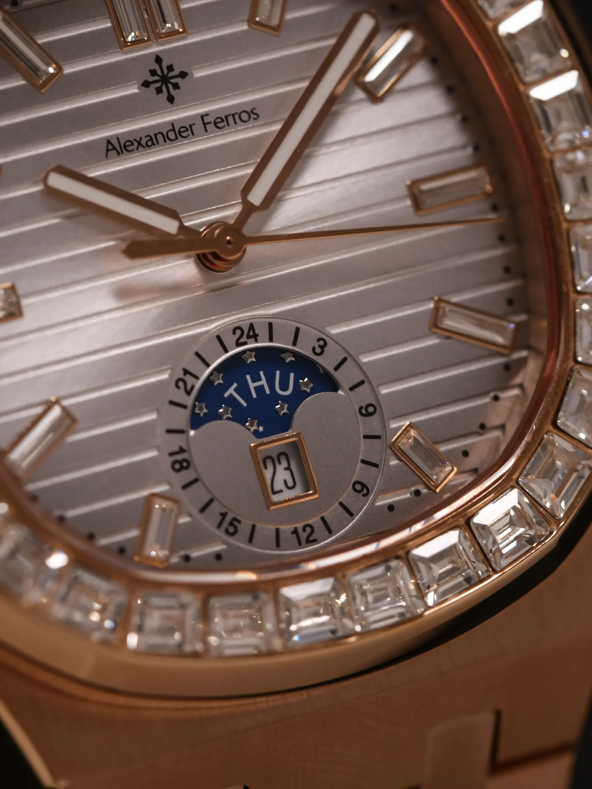 Sự kết hợp giữa mặt số trắng tinh tế và dây thép không gỉ màu vàng hồng tạo nên phong cách thanh lịch và sang trọng. Mặt kính sapphire cao cấp giúp hạn chế trầy xước hiệu quả, giữ cho đồng hồ luôn sáng đẹp trong quá trình sử dụng. Với thiết kế tinh tế cùng bộ máy automatic bền bỉ, Alexander Ferros 6111R/02 là lựa chọn phù hợp cho nam giới yêu thích đồng hồ cơ cao cấp.