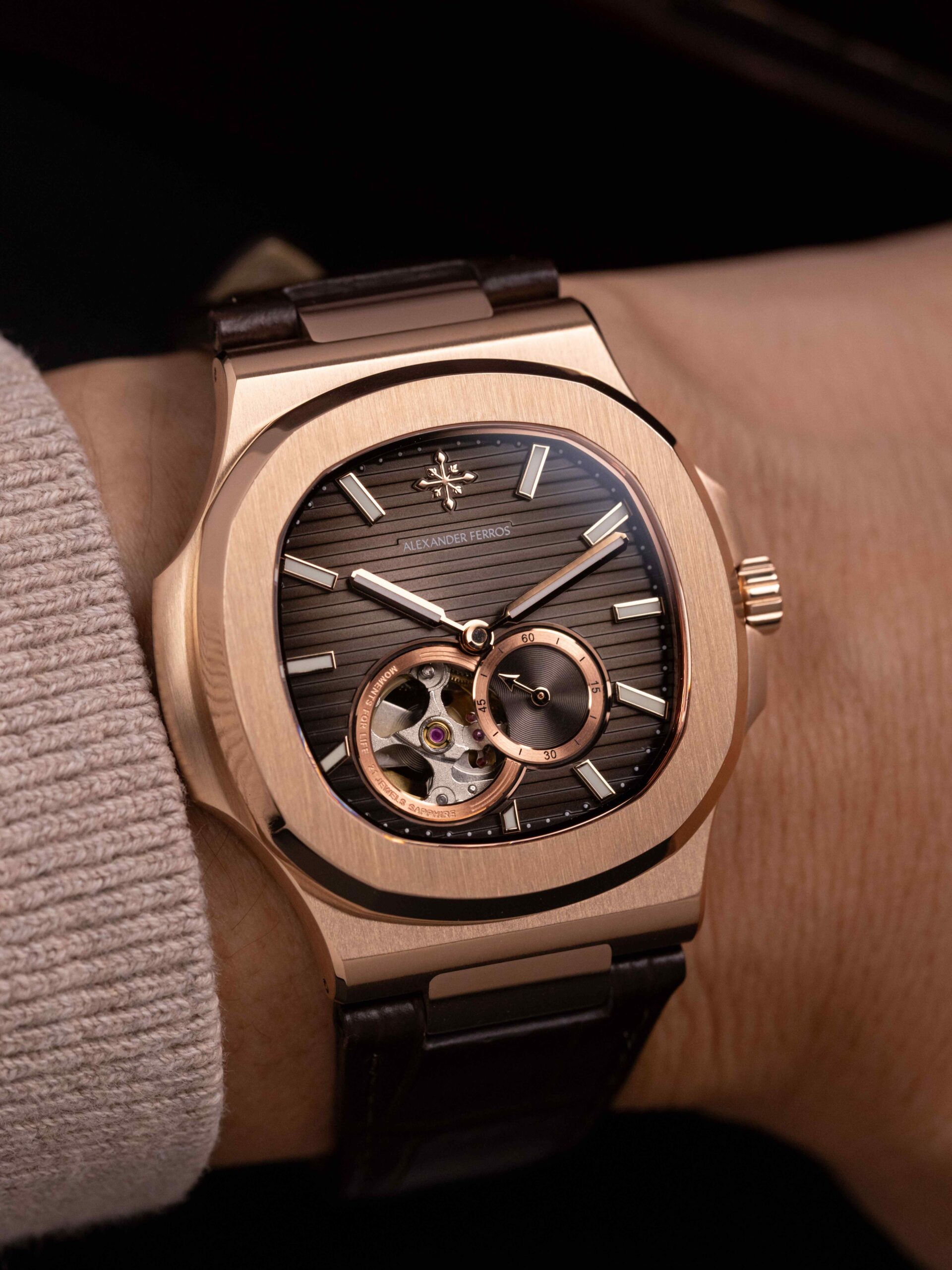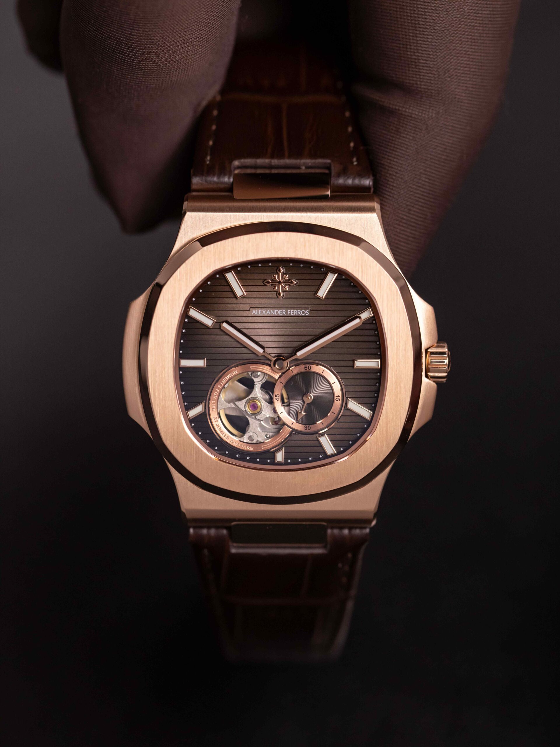 Bên cạnh thiết kế ấn tượng, Alexander Ferros 6312R-01 còn được trang bị kính sapphire cao cấp có khả năng chống trầy xước tốt, giúp mặt đồng hồ luôn trong suốt và bền đẹp theo thời gian. Khả năng chống nước 5 ATM cho phép người dùng yên tâm khi rửa tay hoặc gặp mưa nhẹ trong sinh hoạt thường ngày. Dây da màu nâu mang lại cảm giác đeo êm ái và tăng thêm vẻ ngoài lịch lãm. Sự kết hợp giữa bộ máy automatic Nhật Bản, chất liệu cao cấp và thiết kế nam tính giúp mẫu đồng hồ này trở thành phụ kiện lý tưởng dành cho quý ông hiện đại.