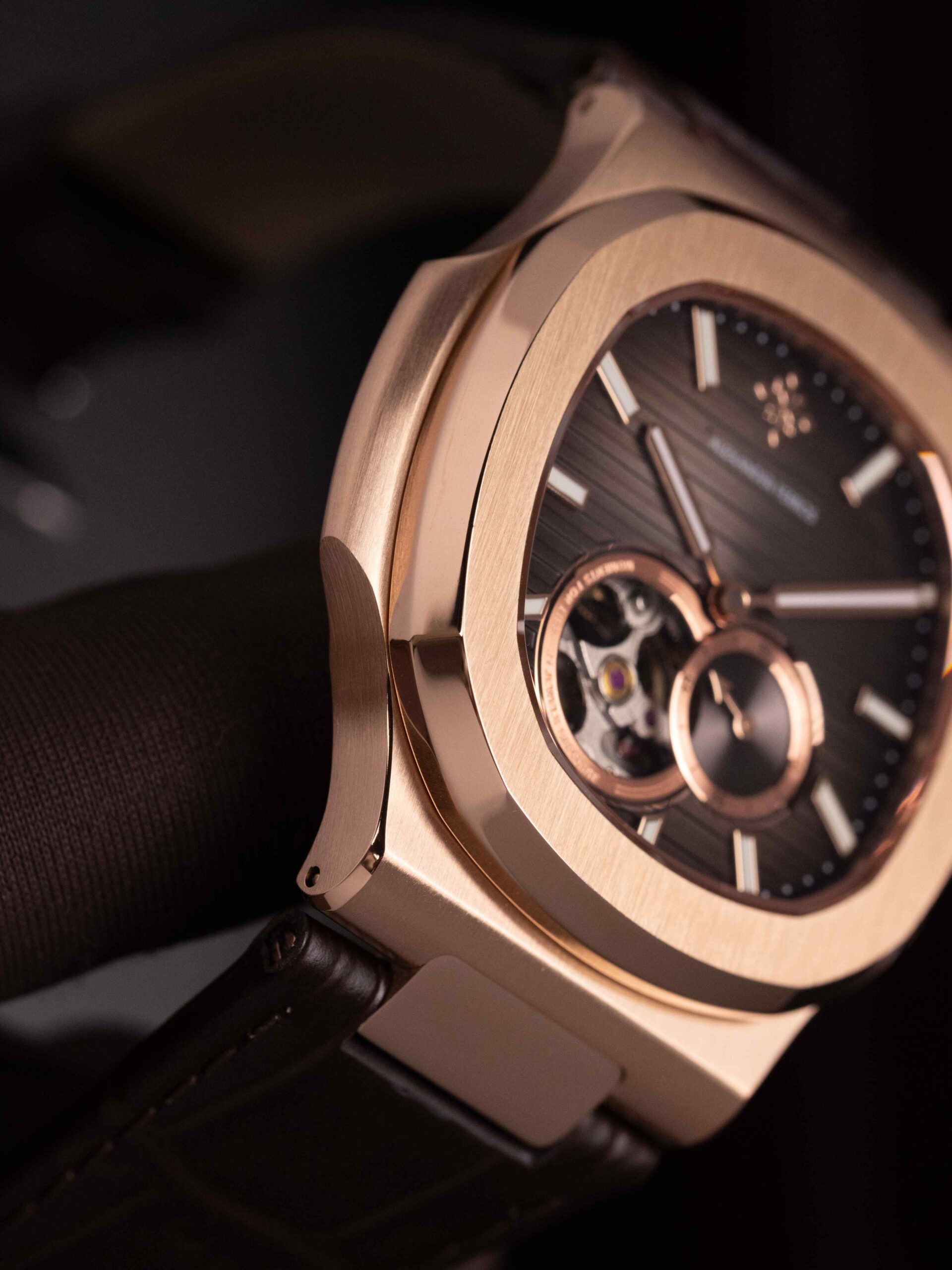 Alexander Ferros 6312R-01 là mẫu đồng hồ nam mang phong cách mạnh mẽ và sang trọng, phù hợp với những quý ông yêu thích thiết kế nổi bật. Mặt số màu đen cổ điển kết hợp cùng viền vàng hồng tạo nên điểm nhấn tinh tế và đẳng cấp trên cổ tay. Vỏ đồng hồ được chế tác từ thép không gỉ cao cấp giúp tăng độ bền, hạn chế ăn mòn và giữ được vẻ sáng bóng theo thời gian. Với đường kính mặt số 40mm, mẫu đồng hồ mang lại cảm giác đeo chắc chắn và phù hợp với những người có cổ tay trung bình đến lớn.