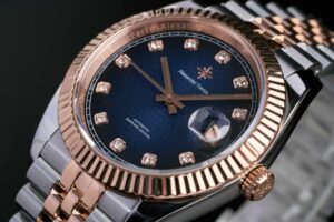 Đồng hồ Alexander Ferros 8032D/05 là mẫu đồng hồ nam nổi bật với thiết kế sang trọng và hiện đại. Mặt số màu xanh tạo điểm nhấn cuốn hút, kết hợp cùng viền vàng hồng giúp tổng thể trở nên tinh tế và đẳng cấp. Vỏ đồng hồ được chế tác từ thép không gỉ chắc chắn, mang lại độ bền cao và khả năng chống ăn mòn tốt. Dây đeo thép không gỉ demi sang trọng không chỉ tạo cảm giác chắc chắn khi đeo mà còn giúp chiếc đồng hồ dễ dàng phối hợp với nhiều phong cách thời trang khác nhau.