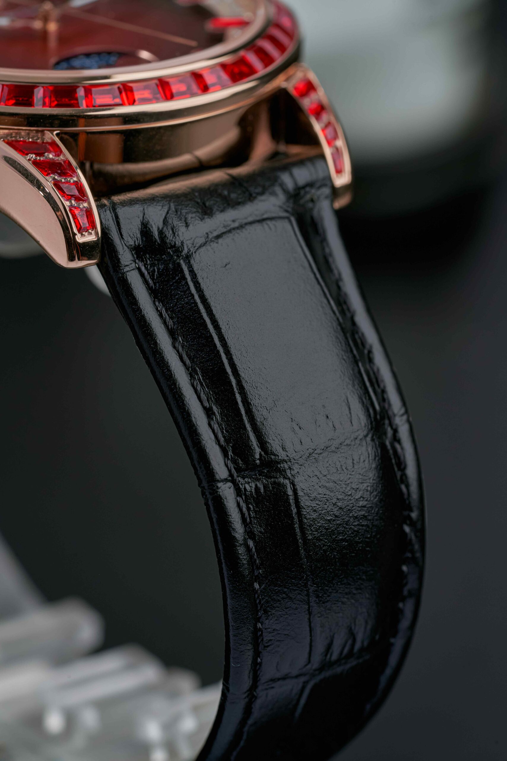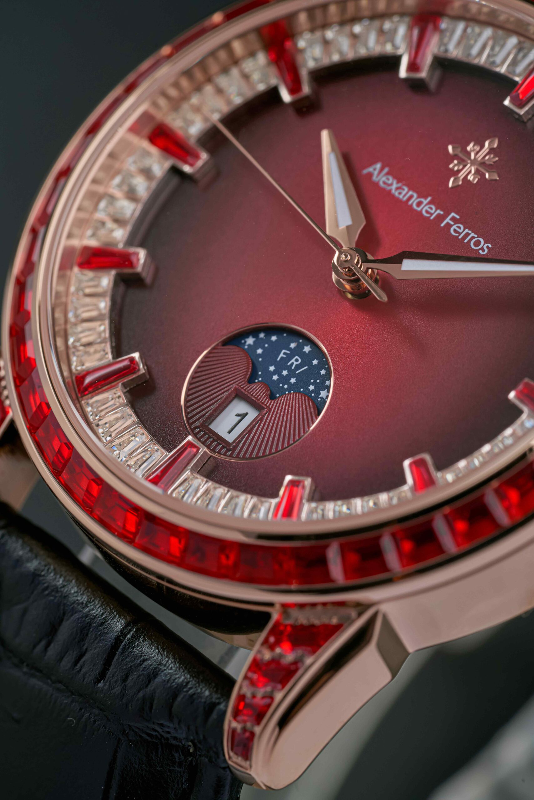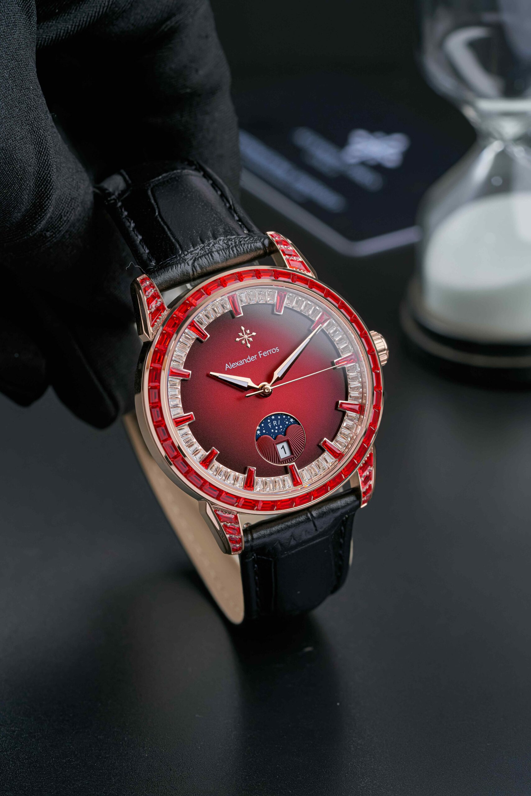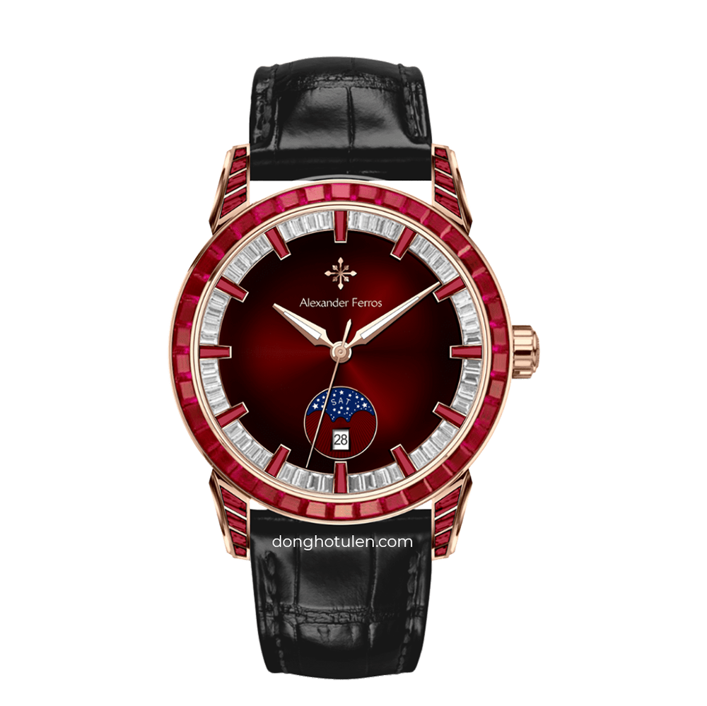 Không chỉ là công cụ xem giờ, Alexander Ferros 9081R-03 còn là phụ kiện thời trang thể hiện phong cách và đẳng cấp của phái mạnh. Dây da màu đen mang lại cảm giác đeo êm ái, đồng thời tôn lên vẻ lịch lãm, cổ điển. Sự kết hợp giữa mặt đỏ nổi bật và viền vàng hồng sang trọng giúp sản phẩm dễ dàng trở thành điểm nhấn trong mọi bộ trang phục.