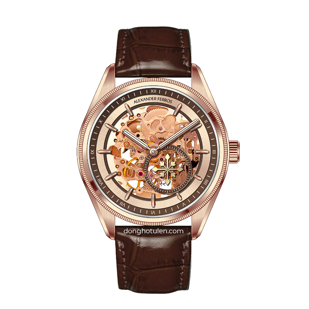 Đồng hồ nam Alexander Ferros 9262R-08 mang đậm phong cách sang trọng Thụy Sỹ, hướng đến những quý ông yêu thích vẻ đẹp lịch lãm và tinh tế. Mặt số skeleton màu nâu độc đáo giúp phô diễn chuyển động cơ khí bên trong một cách sống động và cuốn hút. Kích thước 40mm cân đối với cổ tay nam giới, tạo cảm giác đeo thoải mái. Vỏ thép không gỉ kết hợp viền vàng hồng mang lại tổng thể đẳng cấp và đầy nam tính.