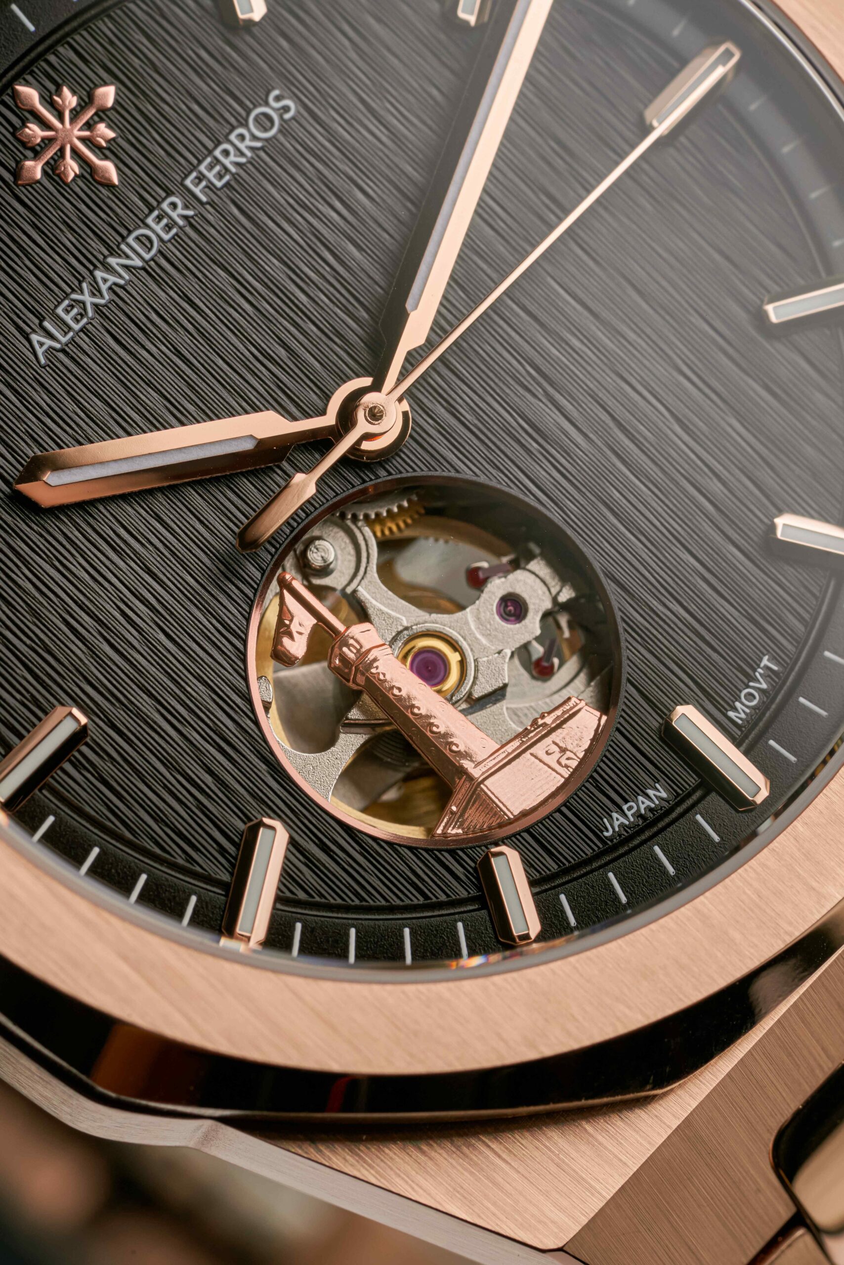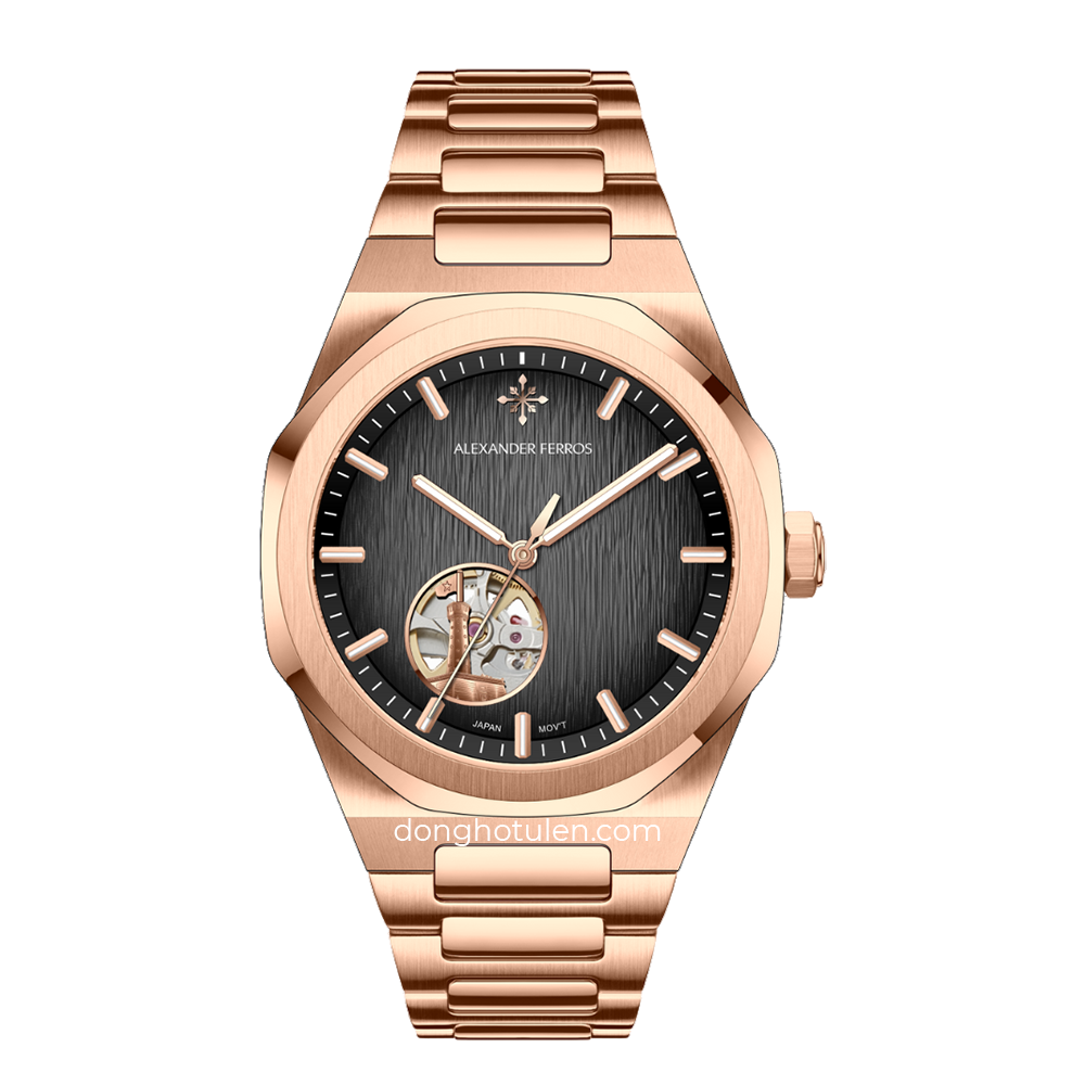 Mẫu Alexander Ferros 9292R/01 được trang bị bộ máy cơ tự động có xuất xứ từ Nhật Bản, nổi bật với độ ổn định và khả năng vận hành bền bỉ theo thời gian. Cơ chế automatic hoạt động nhờ chuyển động tự nhiên của cổ tay người đeo, giúp đồng hồ duy trì năng lượng mà không cần thay pin. Thiết kế hiển thị giờ, phút và giây rõ ràng mang đến sự tiện lợi trong việc theo dõi thời gian hằng ngày, đồng thời vẫn giữ được phong cách tối giản đặc trưng của dòng đồng hồ cơ.