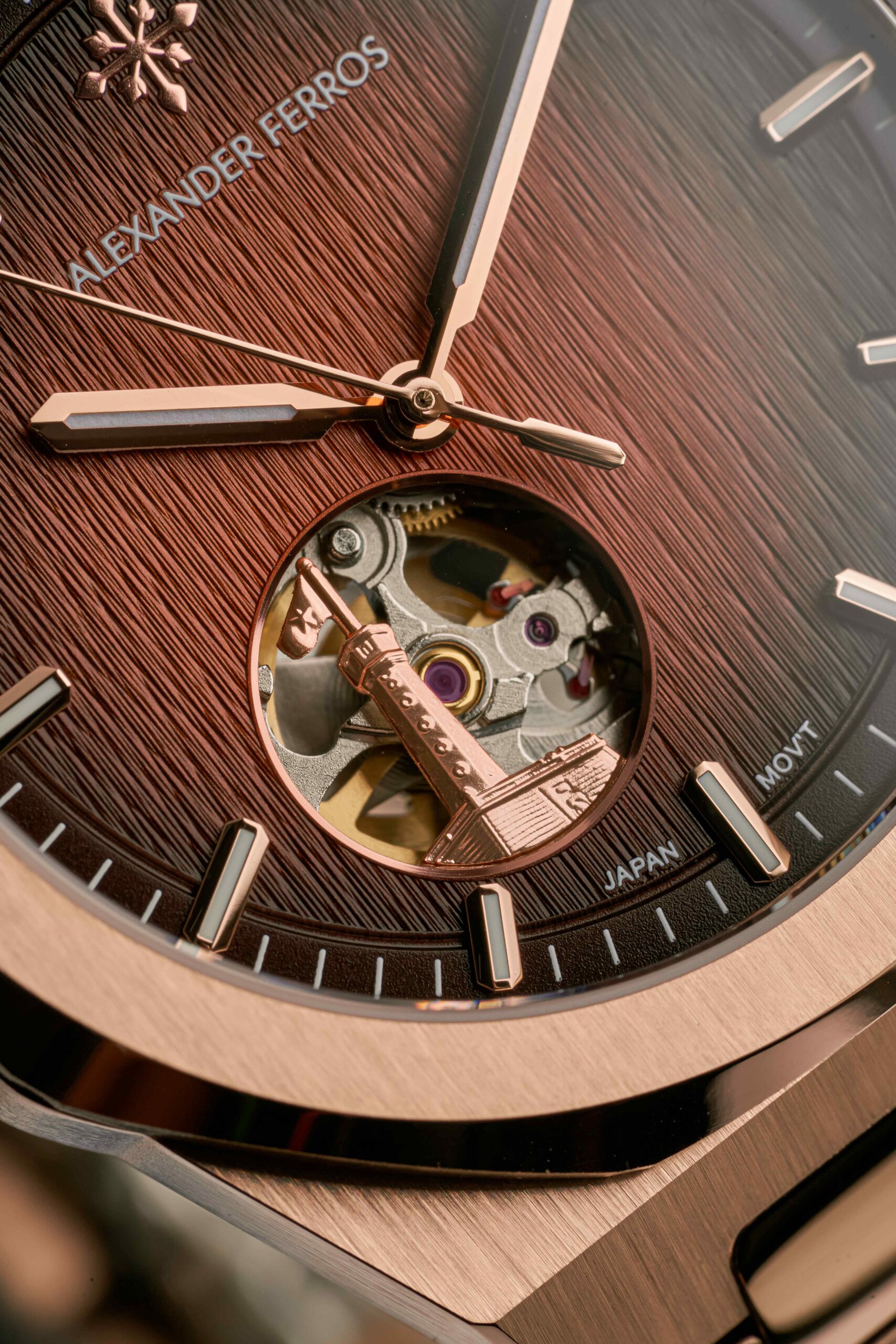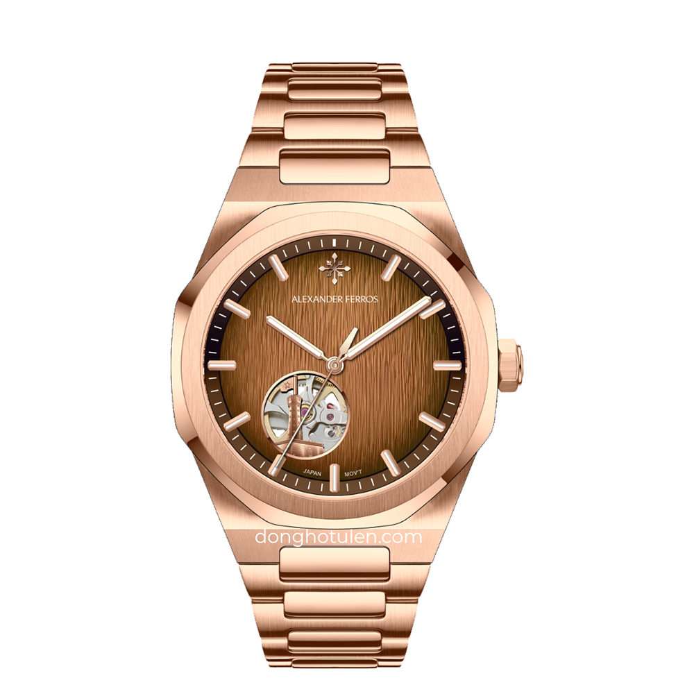 Mẫu Alexander Ferros 9292R/08 được trang bị bộ máy cơ tự động có xuất xứ từ Nhật Bản, nổi bật với độ ổn định và khả năng vận hành bền bỉ theo thời gian. Cơ chế automatic hoạt động nhờ chuyển động tự nhiên của cổ tay người đeo, giúp đồng hồ duy trì năng lượng mà không cần thay pin. Thiết kế hiển thị giờ, phút và giây rõ ràng mang đến sự tiện lợi trong việc theo dõi thời gian hằng ngày, đồng thời giữ được phong cách tối giản và thanh lịch đặc trưng của dòng đồng hồ cơ.