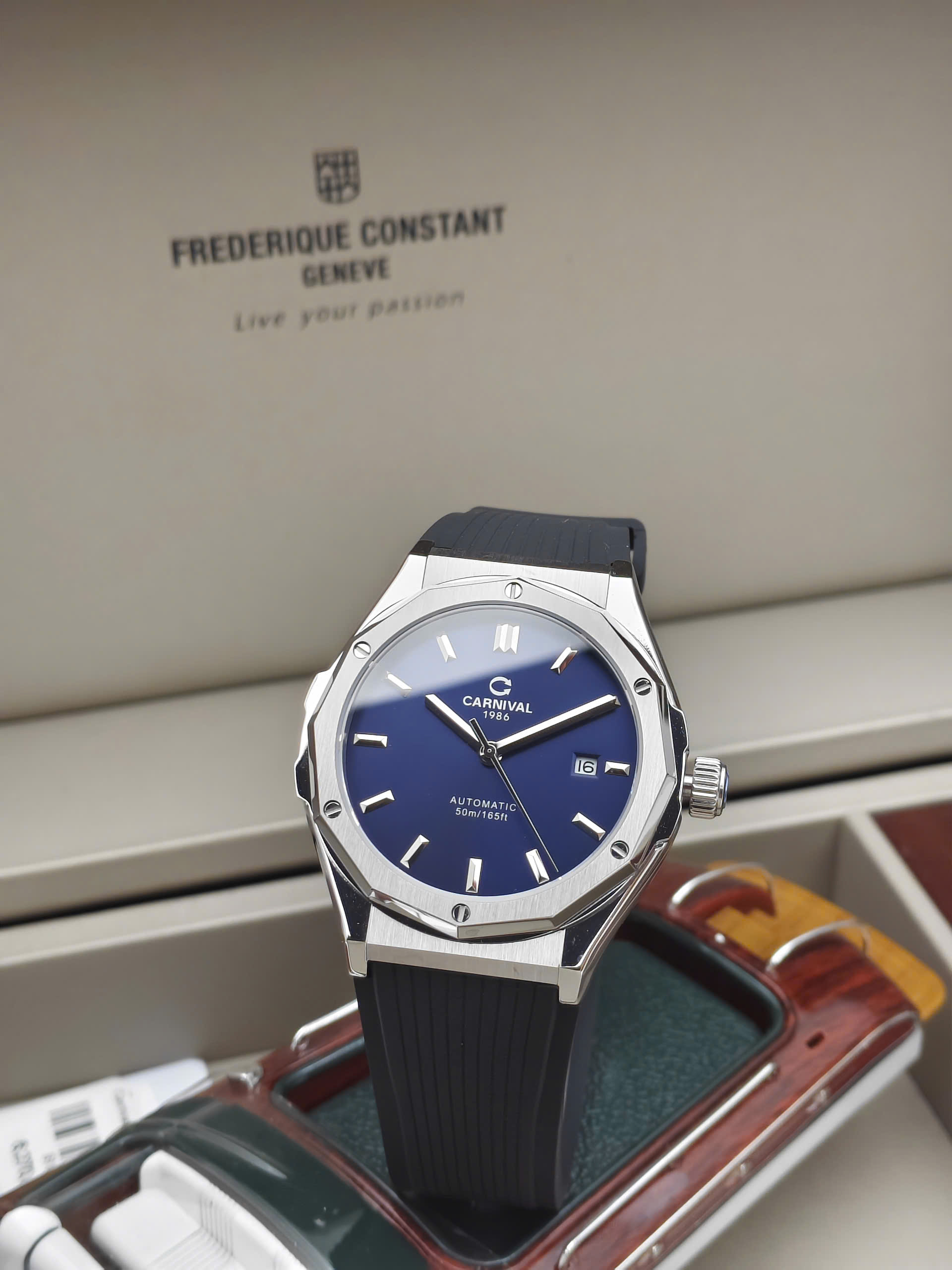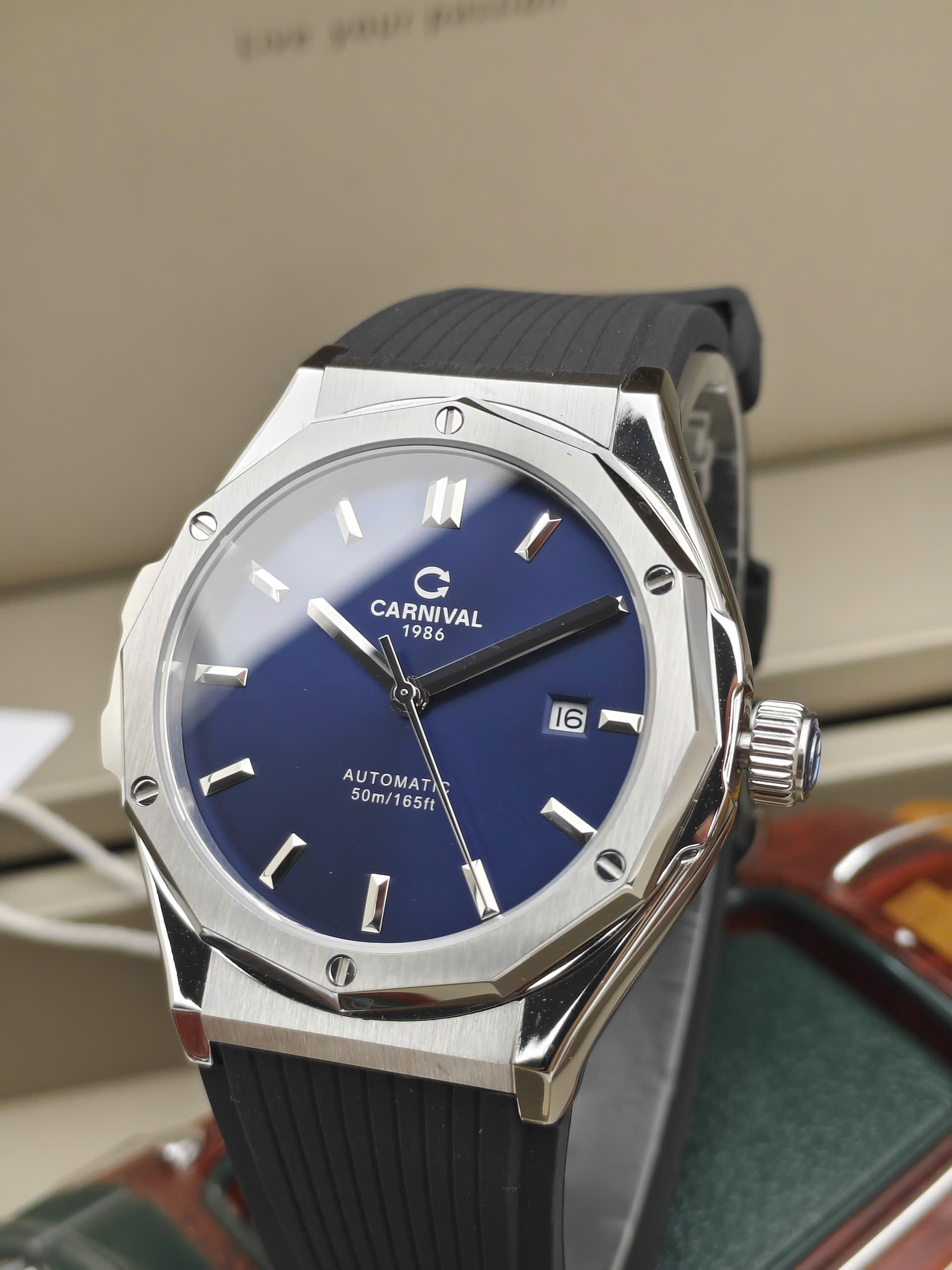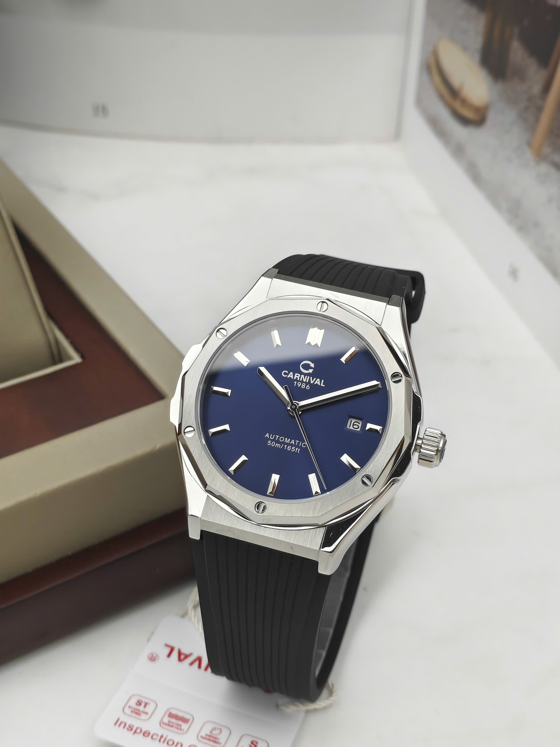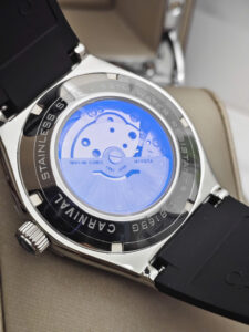 Carnival 8168G-VT-DCS-X mang đậm tinh thần thể thao hiện đại, dành cho nam giới yêu thích sự năng động và mạnh mẽ. Mặt số xanh nổi bật kết hợp vỏ thép không gỉ màu bạc tạo nên diện mạo khỏe khoắn, nam tính và đầy cuốn hút. Đường kính mặt 42mm giúp đồng hồ nổi bật trên cổ tay nhưng vẫn giữ được sự cân đối, phù hợp cho cả sinh hoạt hằng ngày lẫn các hoạt động ngoài trời.