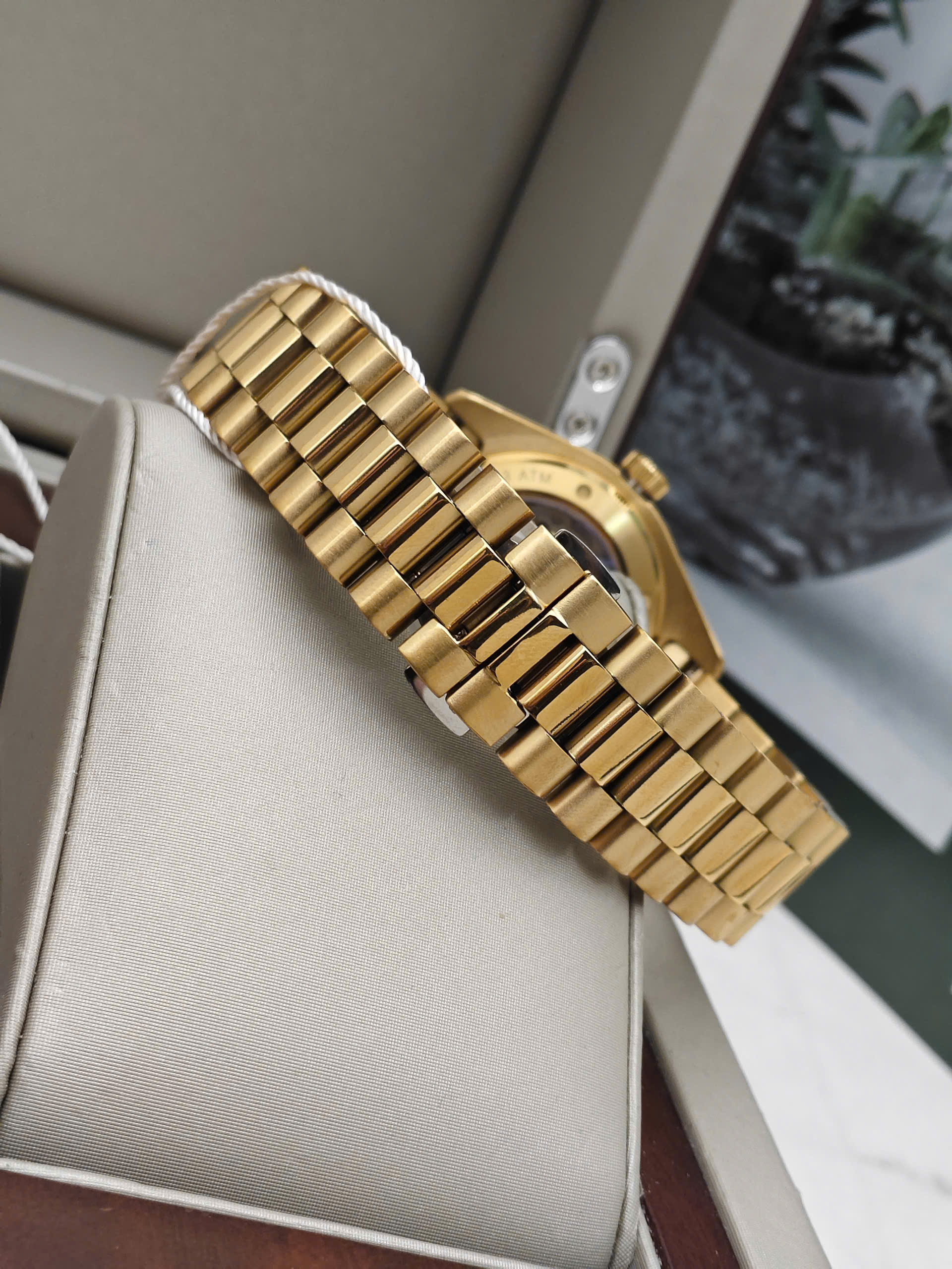 Thân vỏ và dây đeo của đồng hồ được làm từ thép 36L có độ bền và độ chống rỉ cao. Đồng hồ được trang bị mặt kính sapphire với độ cứng tối đa giúp hạn chế trầy xước khi va chạm. Kích thước 40mm là kích thước phù hợp với đa số người Việt. Phù hợp với trang phục công sở, tiệc,…