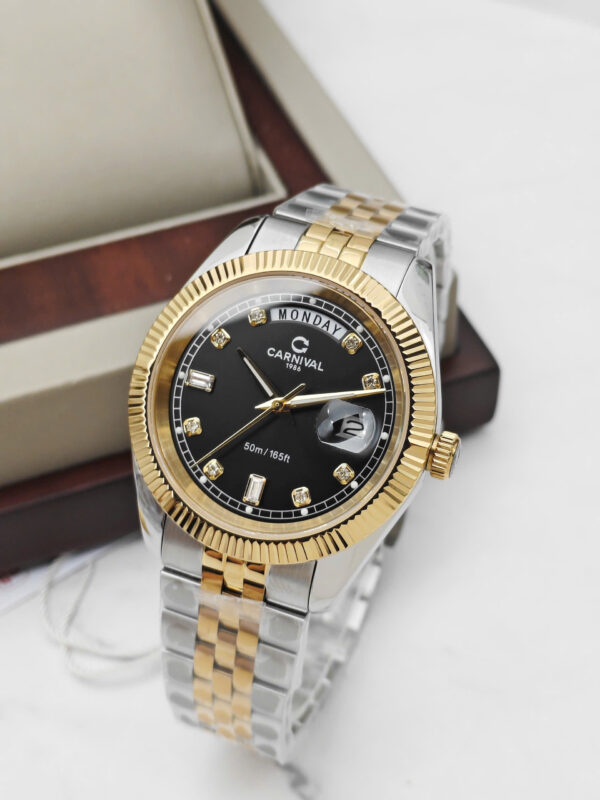 Carnival 8190G-CV-D sử dụng bộ máy Quartz Japan nổi tiếng với độ chính xác cao và hoạt động ổn định. Sự kết hợp giữa lắp ráp tại China và bộ máy Nhật Bản giúp sản phẩm đạt được sự cân bằng giữa chất lượng và giá thành. Đồng hồ được trang bị chức năng lịch ngày và thứ tiện lợi, hỗ trợ người dùng quản lý thời gian hiệu quả hơn. Độ chịu nước 5ATM cho phép bạn yên tâm sử dụng khi rửa tay, đi mưa nhẹ hoặc sinh hoạt hằng ngày mà không lo ảnh hưởng đến bộ máy bên trong.