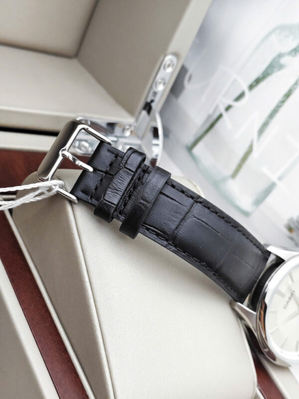 Đồng hồ Casio Moonphase MTP-M100L-1AVDF với thiết kế mặt trắng làm nổi bật lên ô Moonphase ở góc 6 giờ tạo nên tổng thể một chiếc đồng hồ cực kỳ sang trọng.