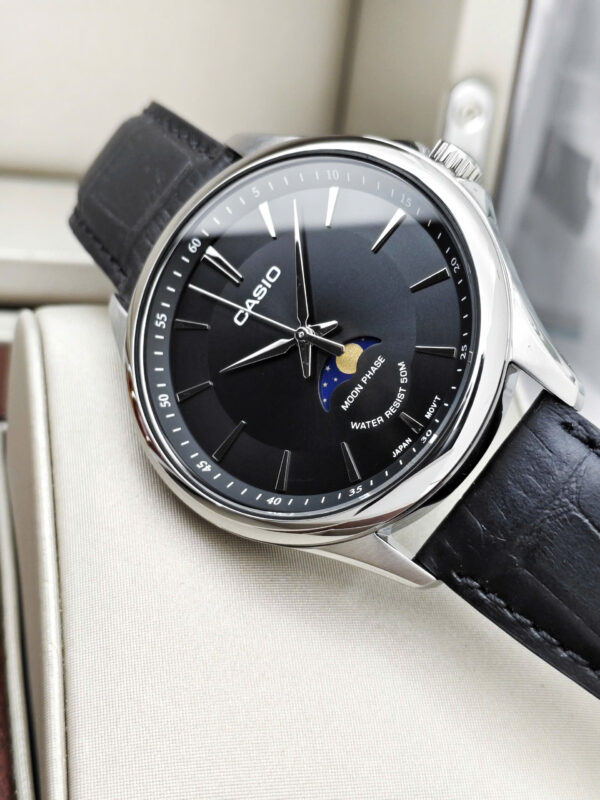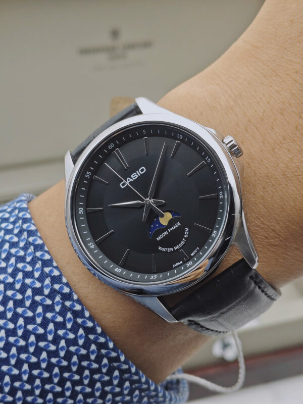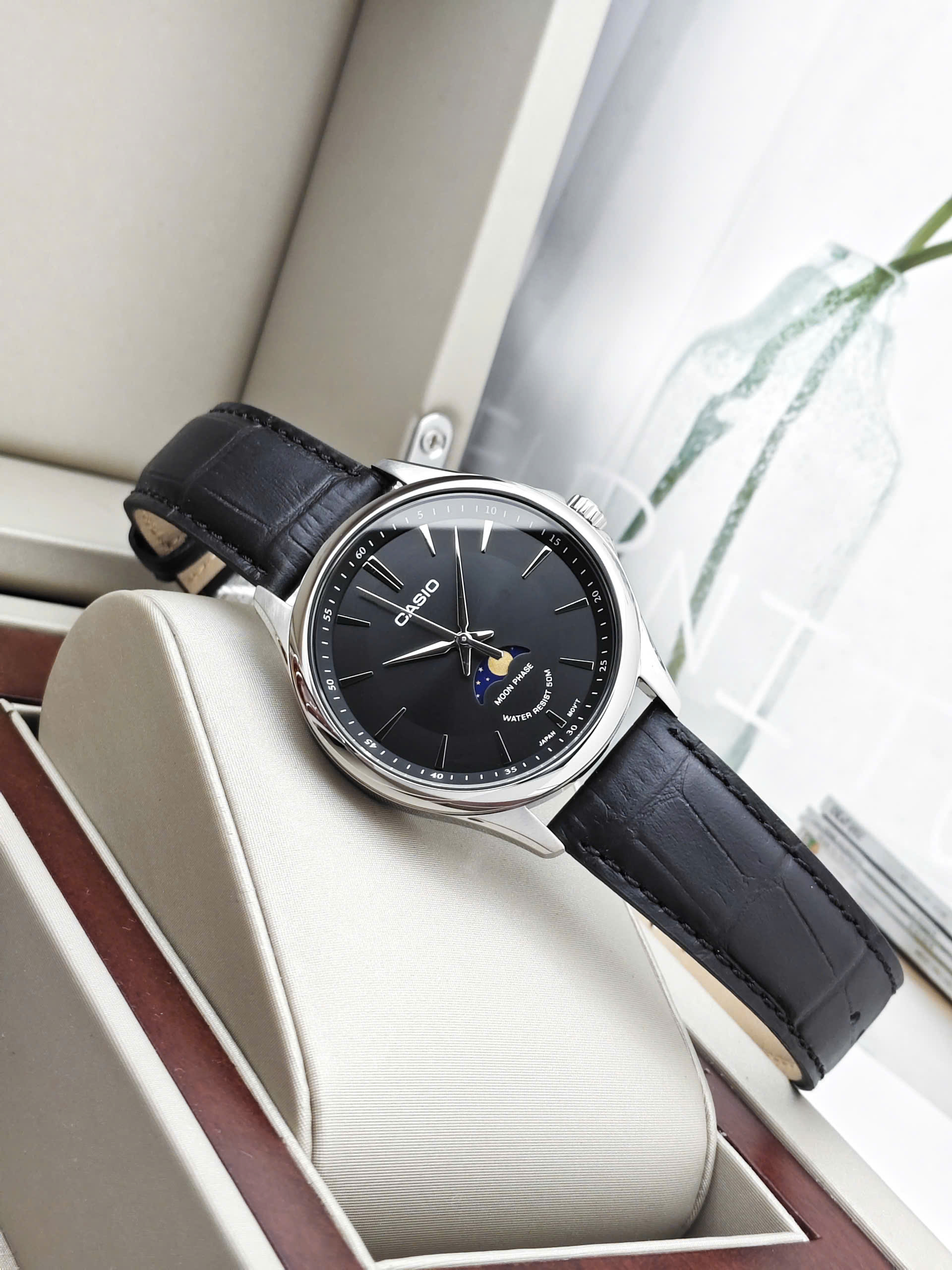 Đồng hồ Casio Moonphase MTP-M100L-1AVDF chính hãng là mẫu dresswatch chạy pin có chức năng Moonphase (Trăng, sao) cực kỳ đẹp và ấn tượng.