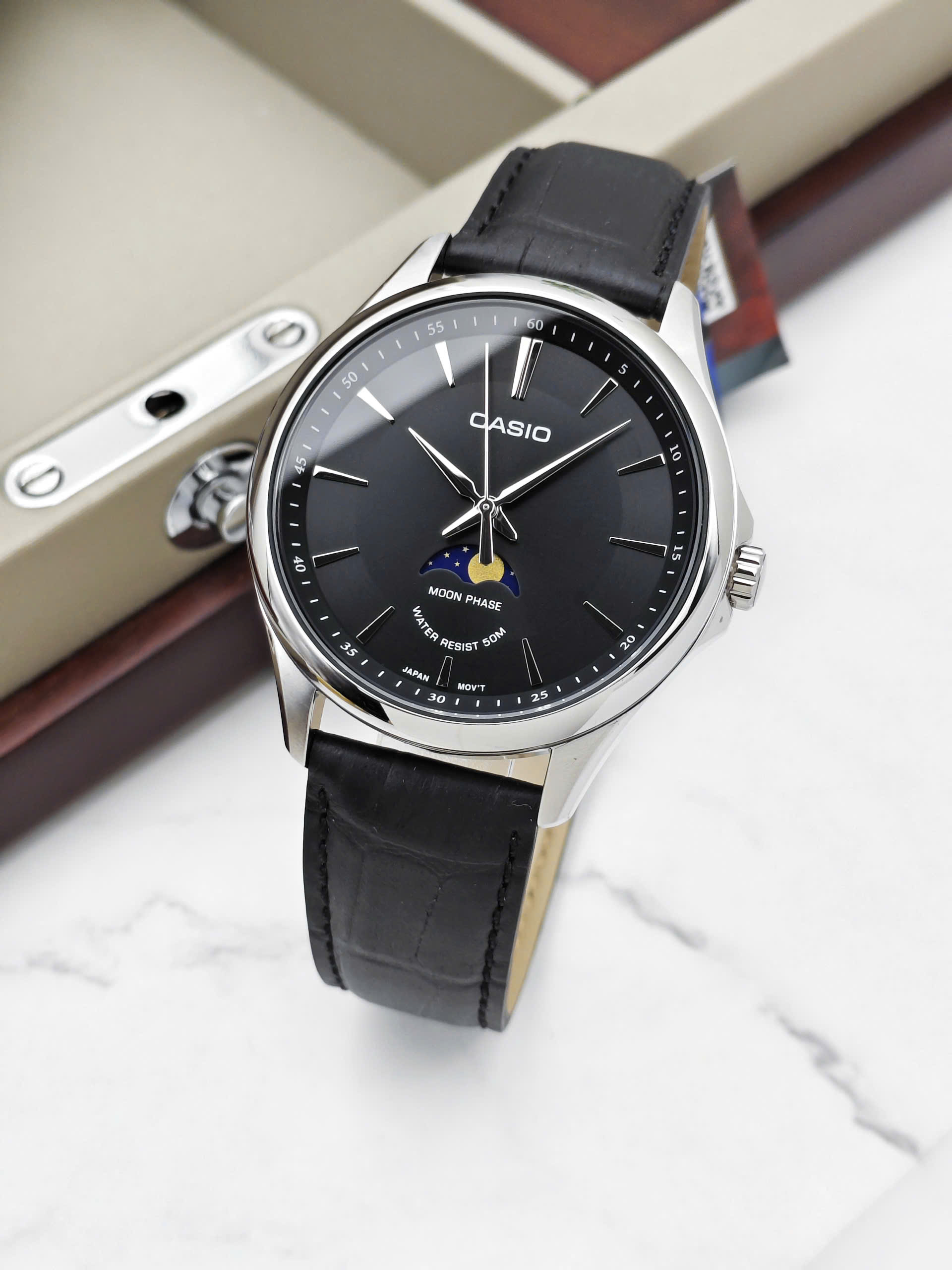 Casio Quartz Moonphase Leather Strap Men’s Watch MTP-M100L-1AVDF