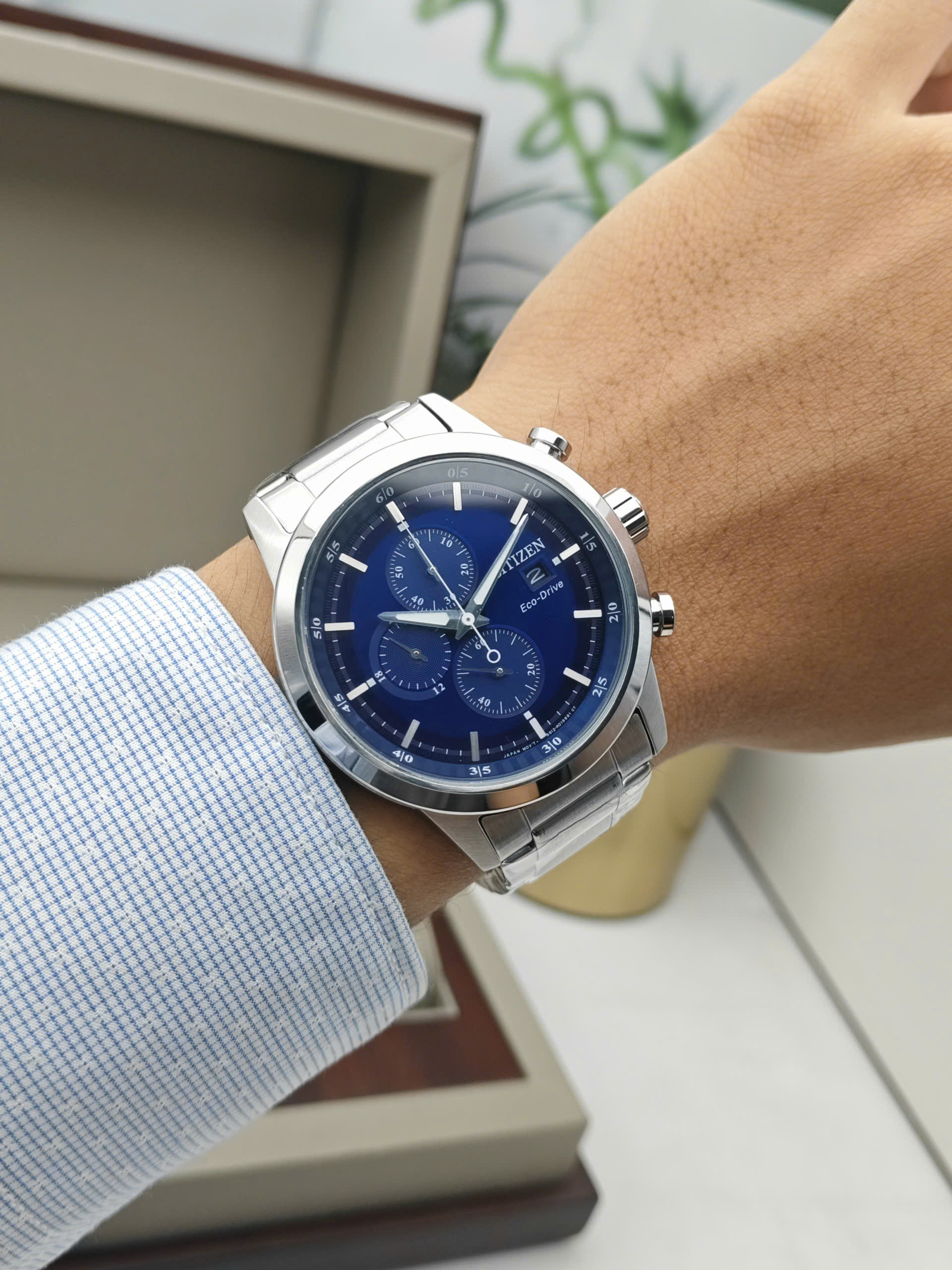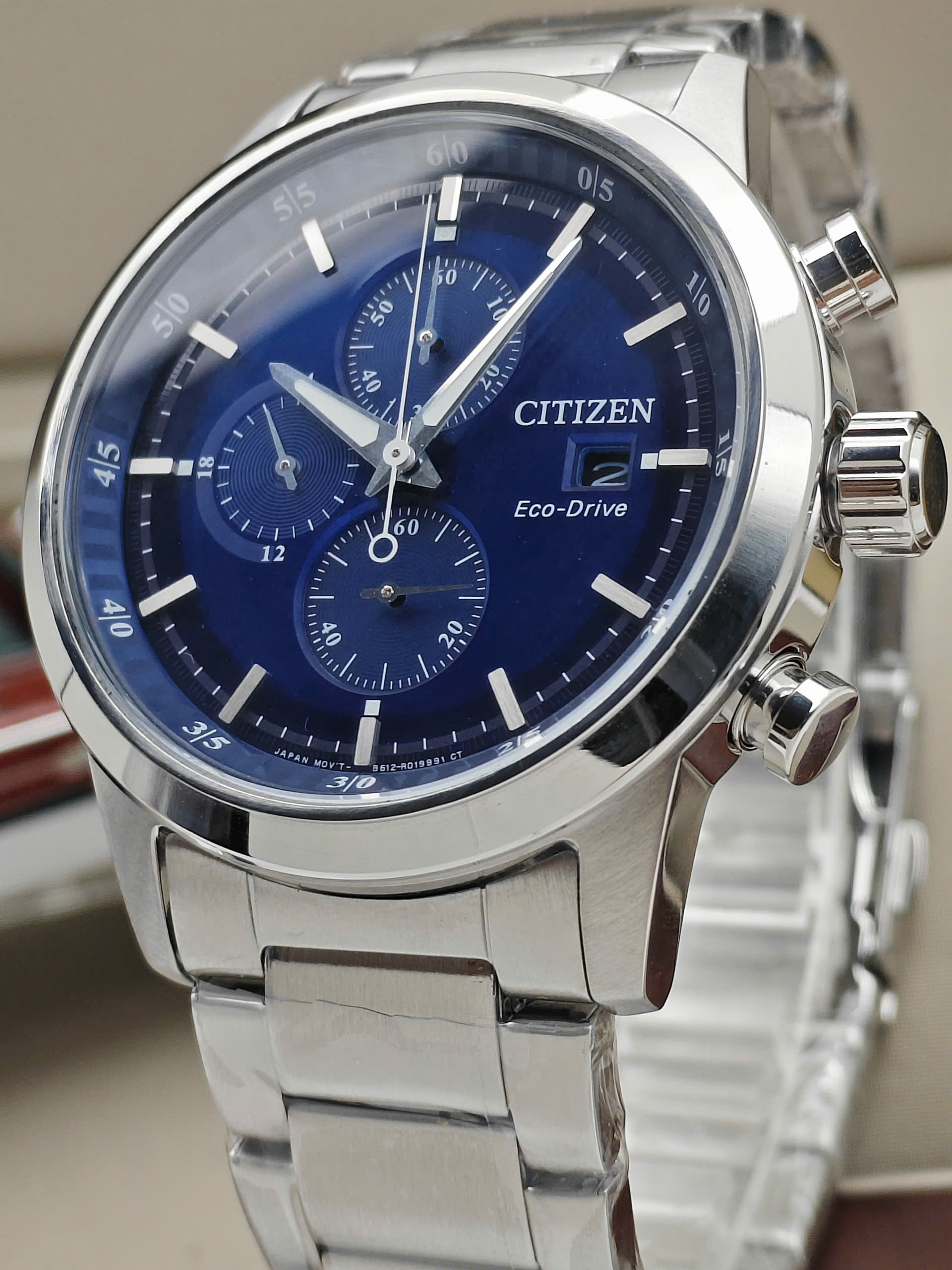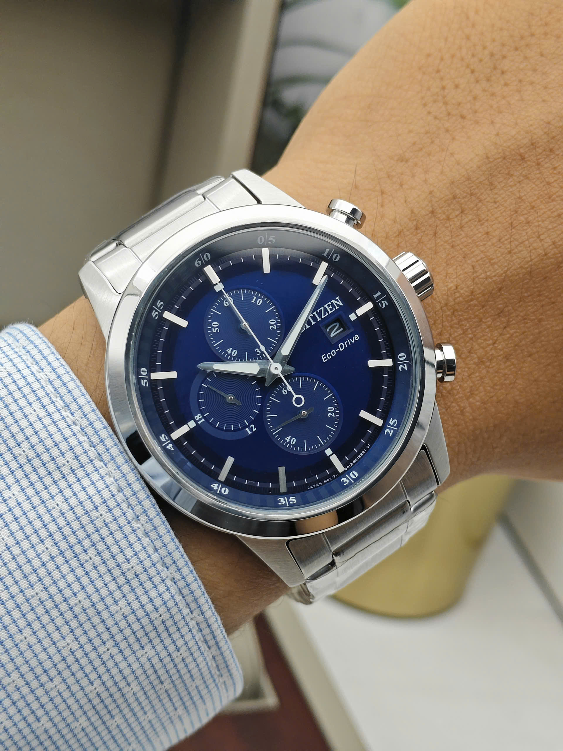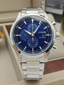 Loại máy: Pin – Năng lượng mặt trời (Quartz – Eco-Drive) / Chronograph