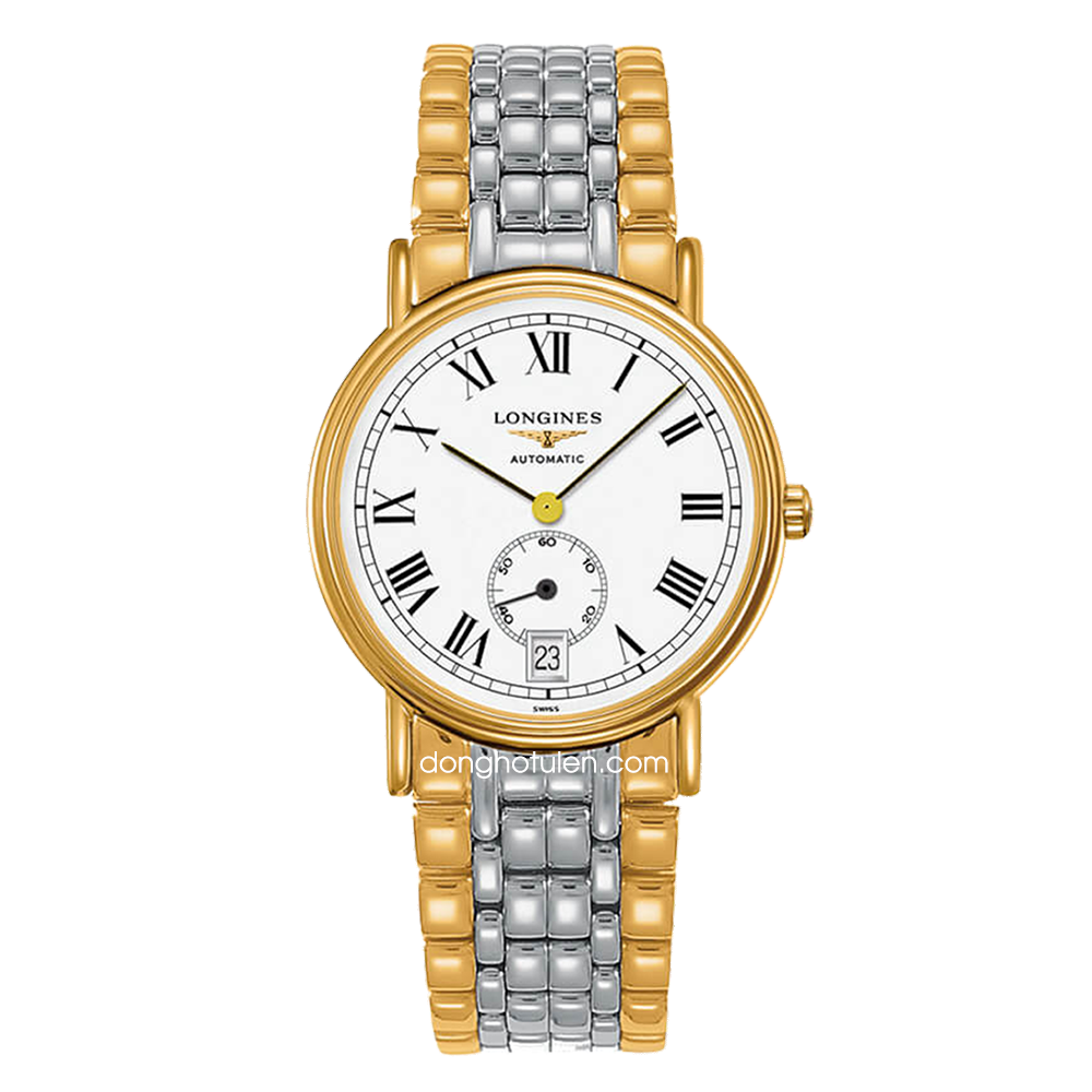 Đồng hồ nam Tự động Longines Presence size 38.5mm Kim rốn Viền vàng mặt trắng dây demi vàng L4.805.2.11.7