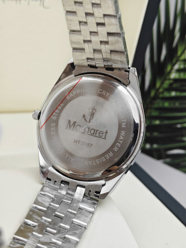Đồng hồ nam Margaret MT.8187 là chiếc đồng hồ mang phong cách đơn giản, giá cả cực kỳ êm nhưng vẫn được hãng trang bị bộ vỏ và dây bằng thép không gỉ, bộ máy Nhật và mặt kính sapphire. 3 yếu tố chính giúp cho chiếc đồng hồ bền bỉ và đẹp qua thời gian.
