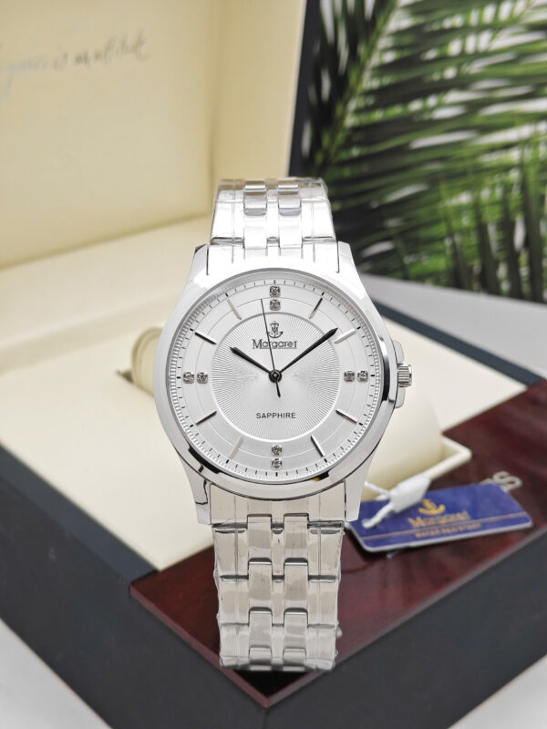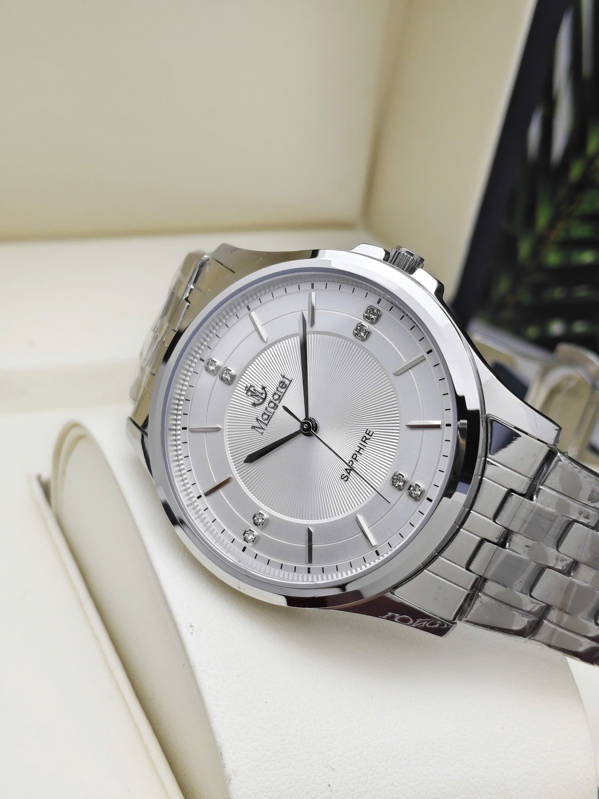 Đồng hồ nam Margaret Dây thép Mặt trắng kính sapphire MT.211
