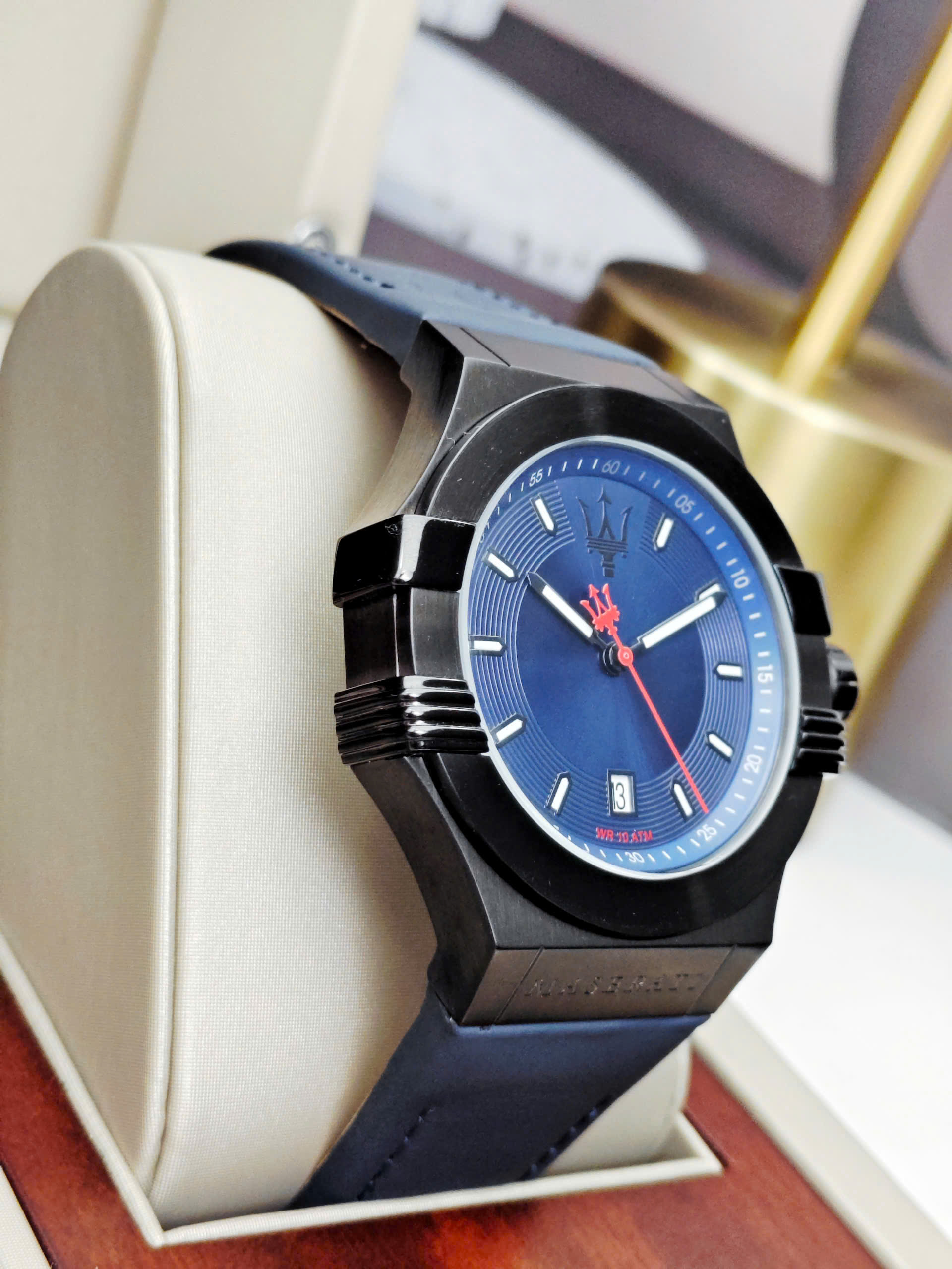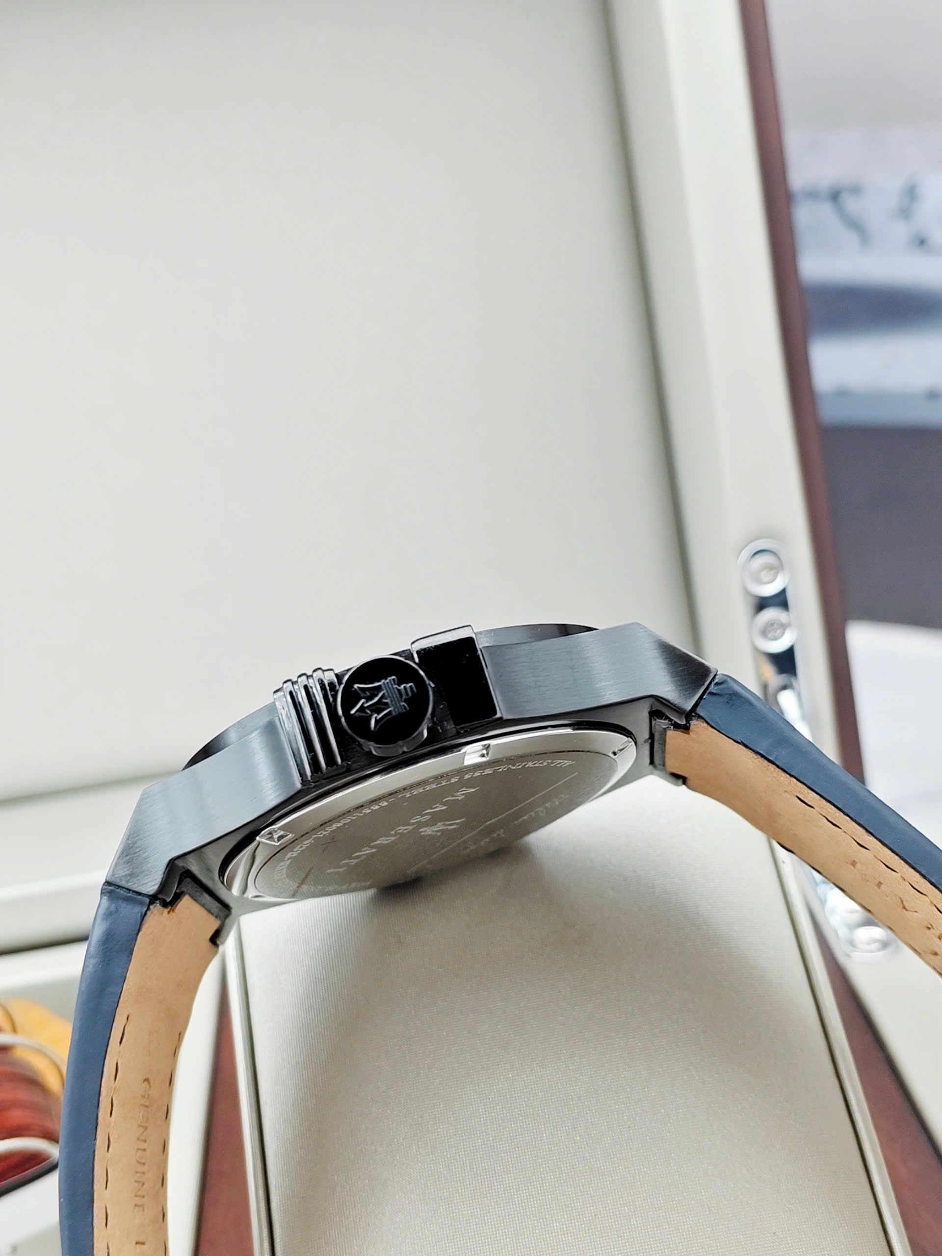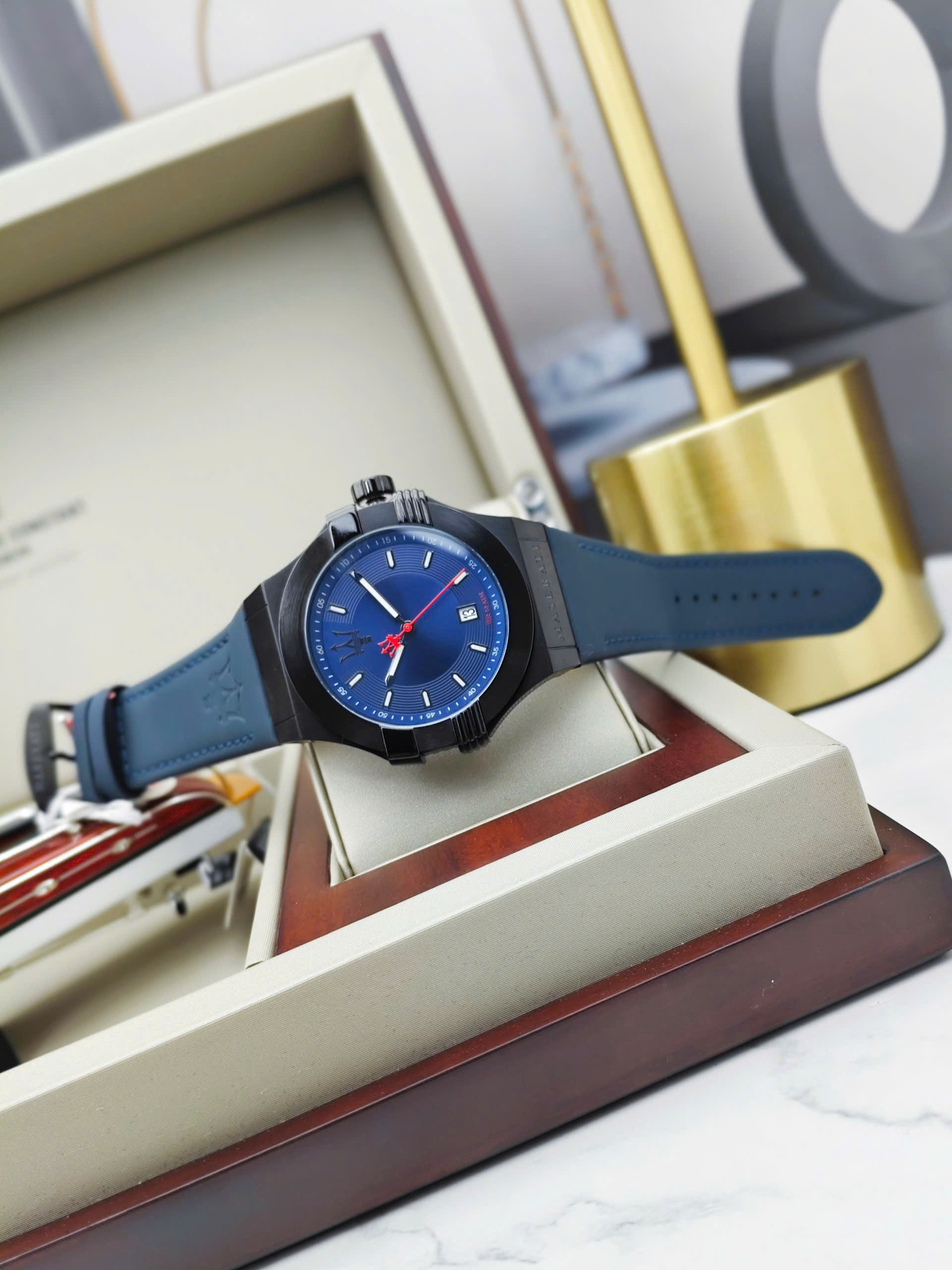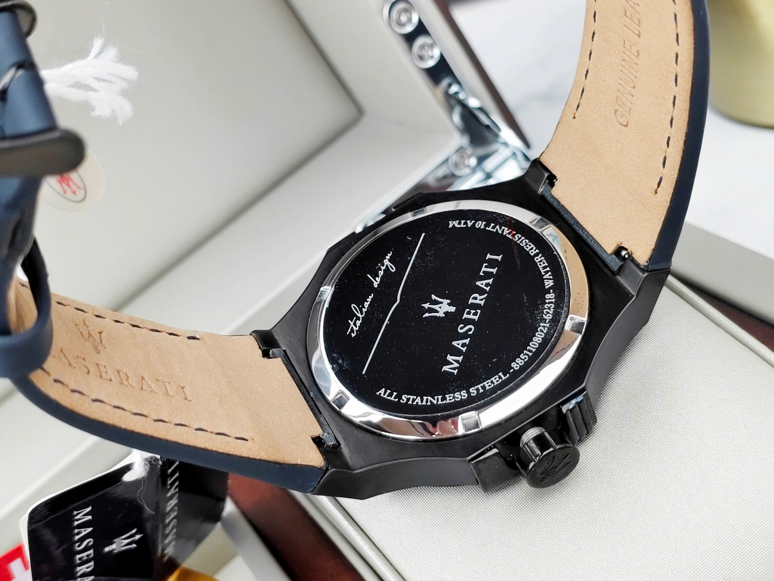 Không chỉ gây ấn tượng bởi thiết kế, Maserati Potenza R8851108021 còn sở hữu khả năng chống nước lên đến 10 ATM, giúp người dùng yên tâm khi rửa tay, đi mưa hoặc tham gia các hoạt động thường ngày. Độ dày 11mm mang lại cảm giác gọn gàng nhưng vẫn chắc chắn trên cổ tay. Sự kết hợp giữa mặt số xanh nổi bật và dây da xanh thanh lịch tạo nên một chiếc đồng hồ vừa hiện đại vừa sang trọng, phù hợp với những quý ông yêu thích phong cách thời trang tinh tế mang dấu ấn châu Âu.
