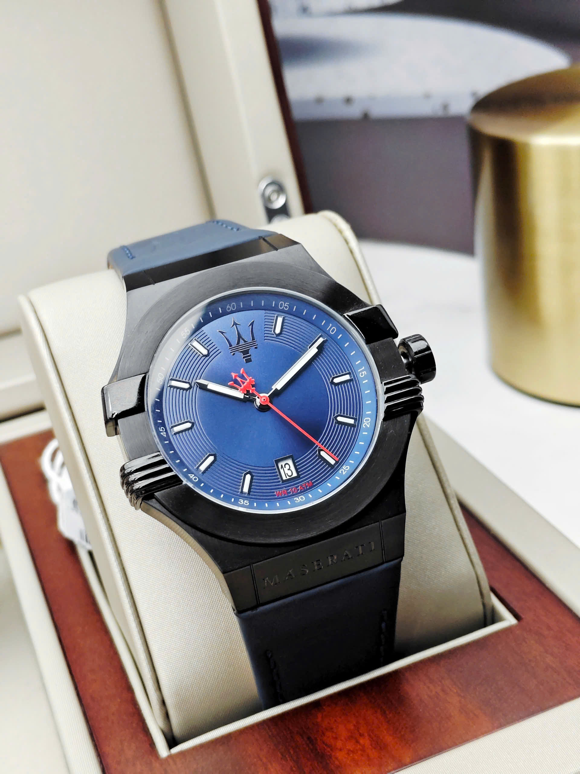 Đồng hồ Maserati Potenza R8851108021 mang đậm phong cách thiết kế mạnh mẽ và nam tính đến từ Ý. Mặt số xanh dương nổi bật kết hợp cùng viền xanh đồng điệu tạo nên tổng thể hài hòa và cuốn hút. Với đường kính mặt số 45mm, mẫu đồng hồ này phù hợp với những quý ông yêu thích phong cách thể thao và cá tính. Dây da xanh cao cấp không chỉ mang lại cảm giác đeo thoải mái mà còn góp phần tôn lên vẻ lịch lãm, giúp người dùng dễ dàng kết hợp với nhiều phong cách trang phục khác nhau.
