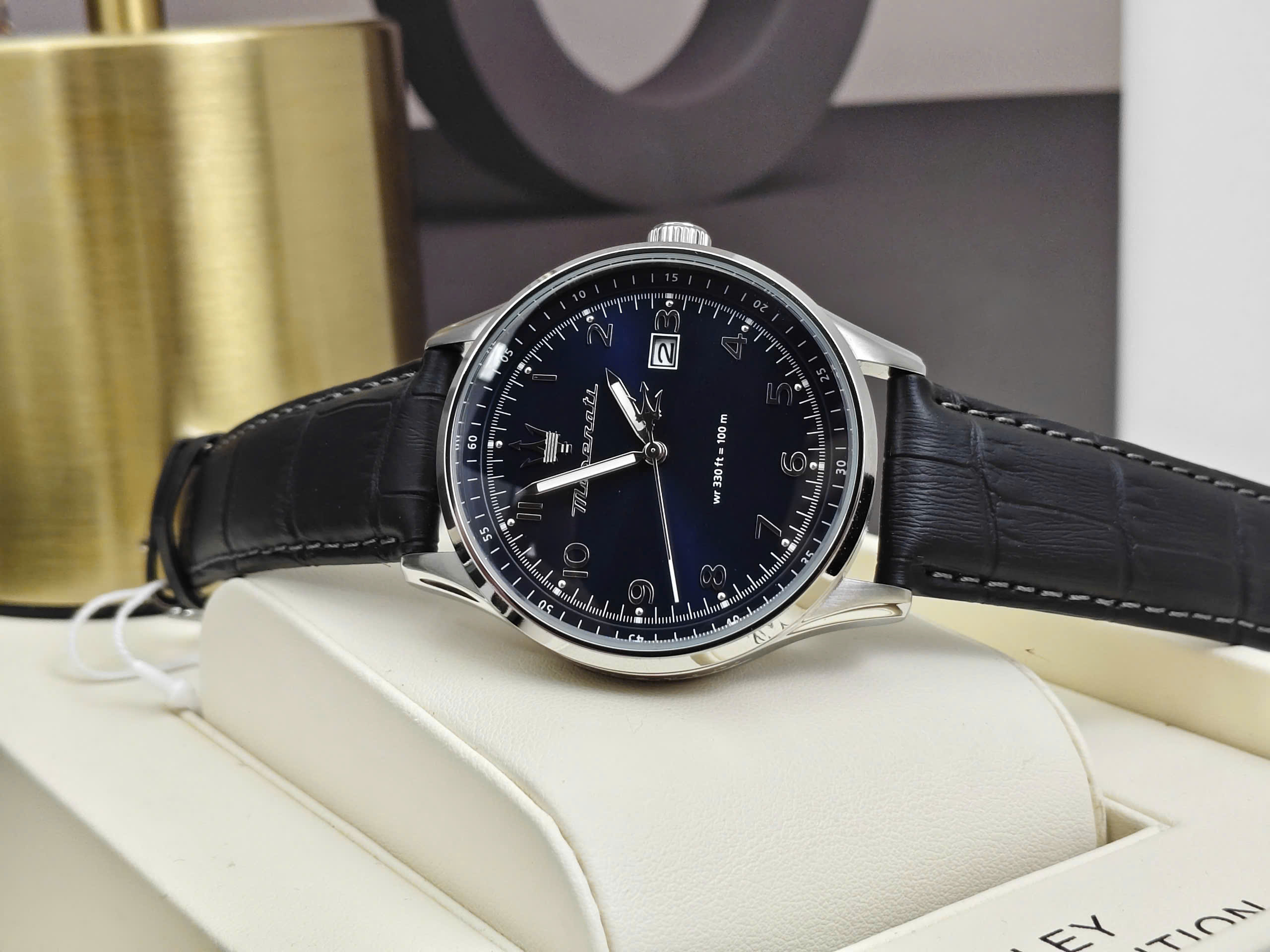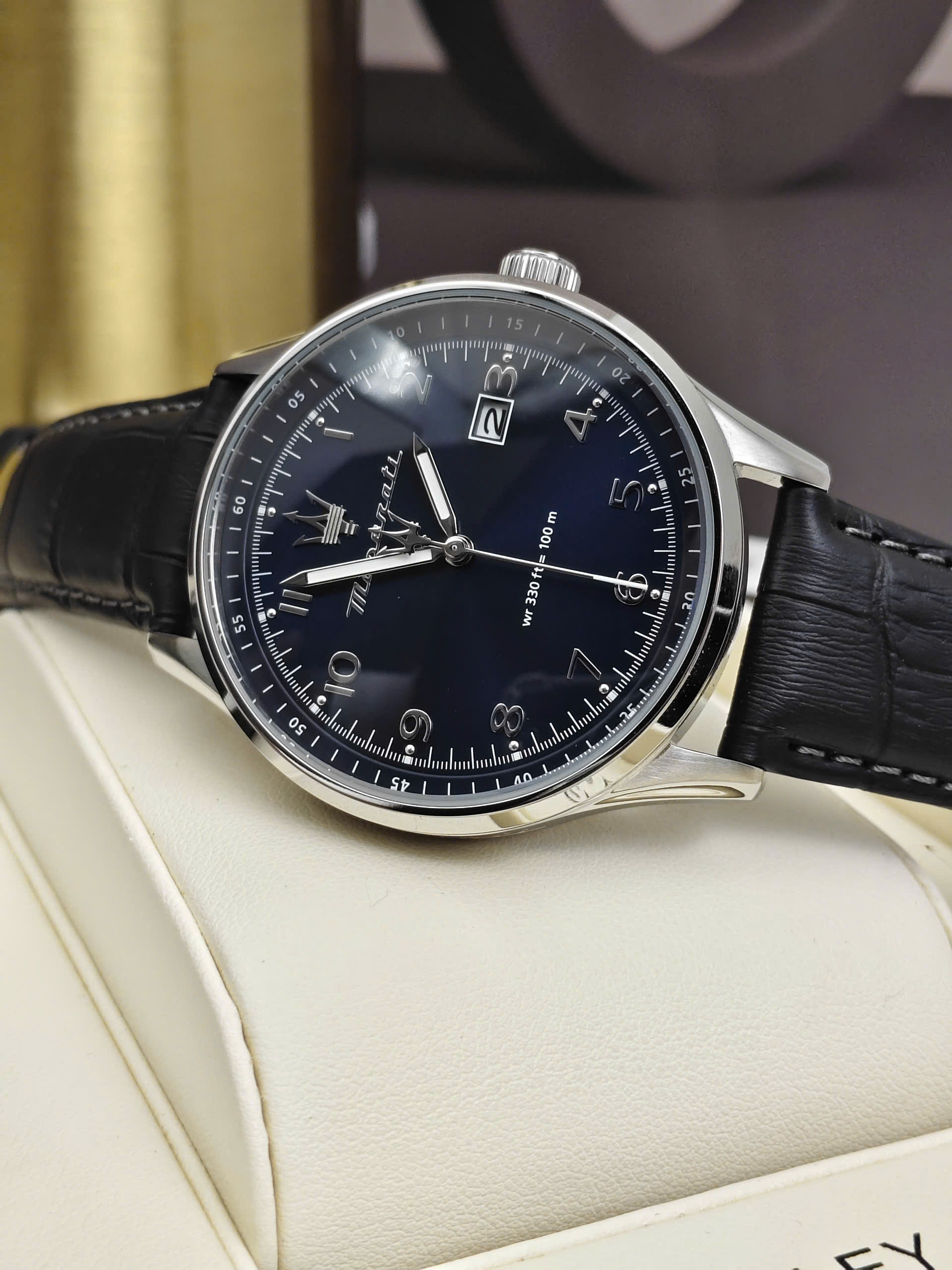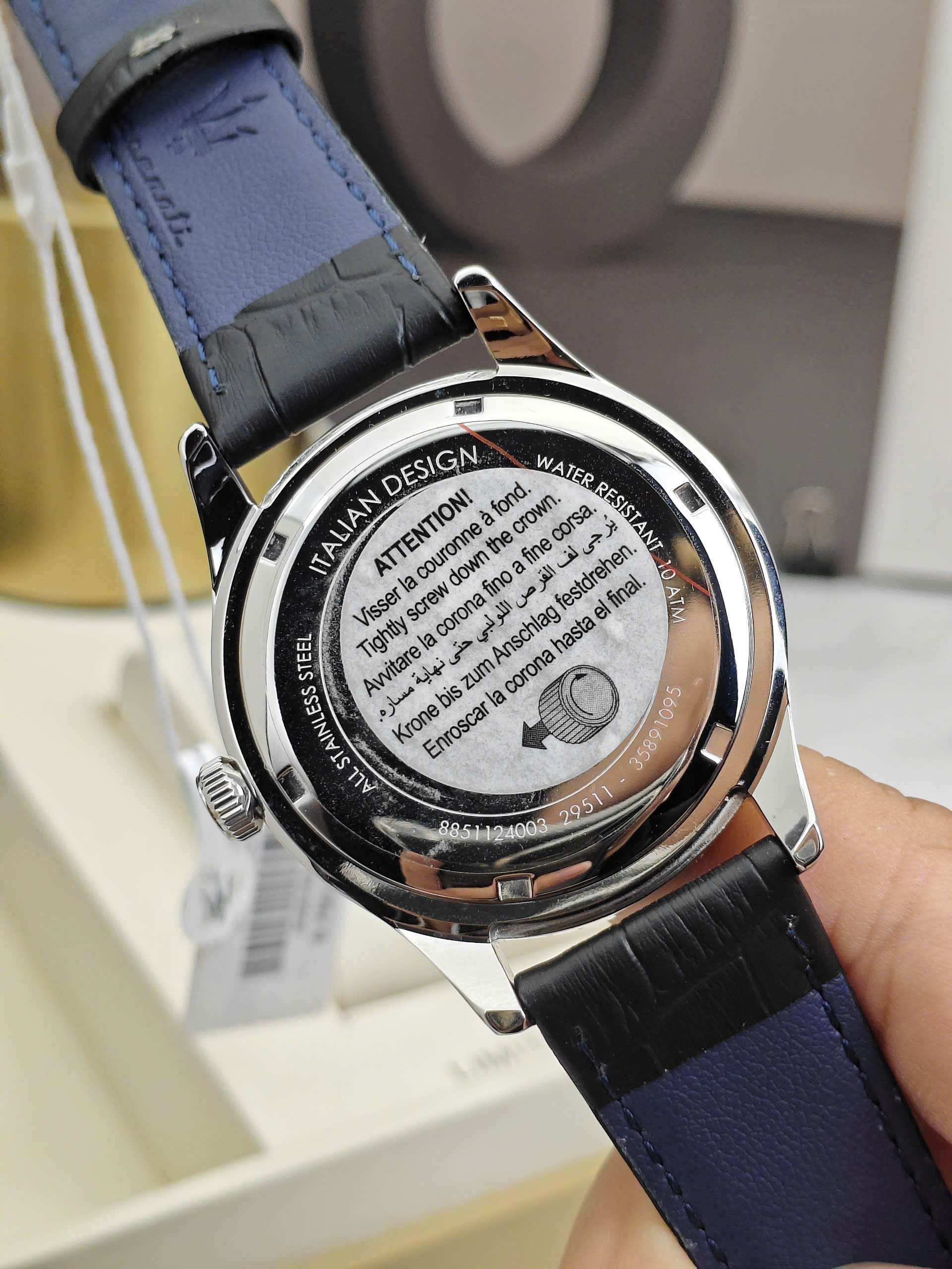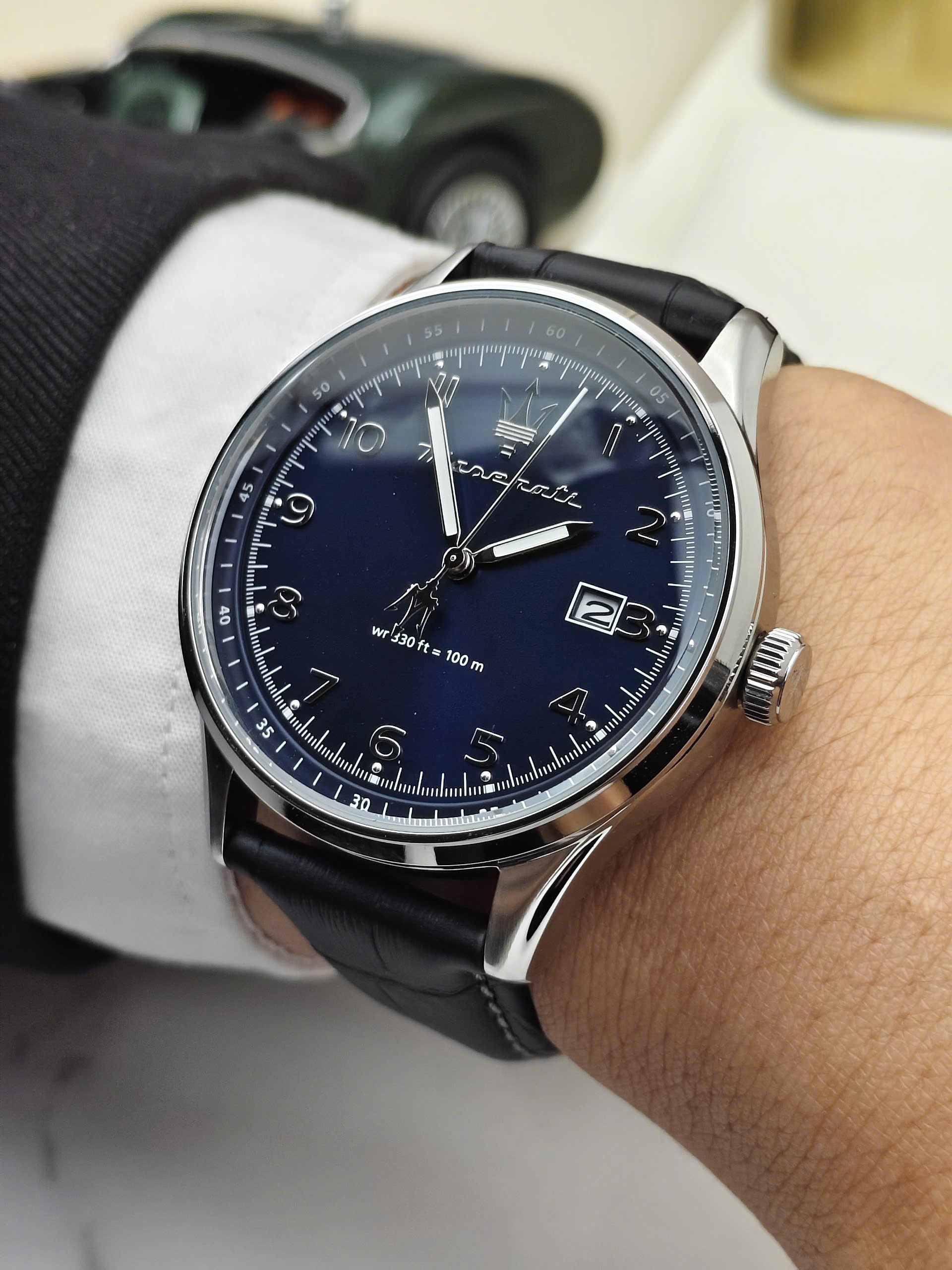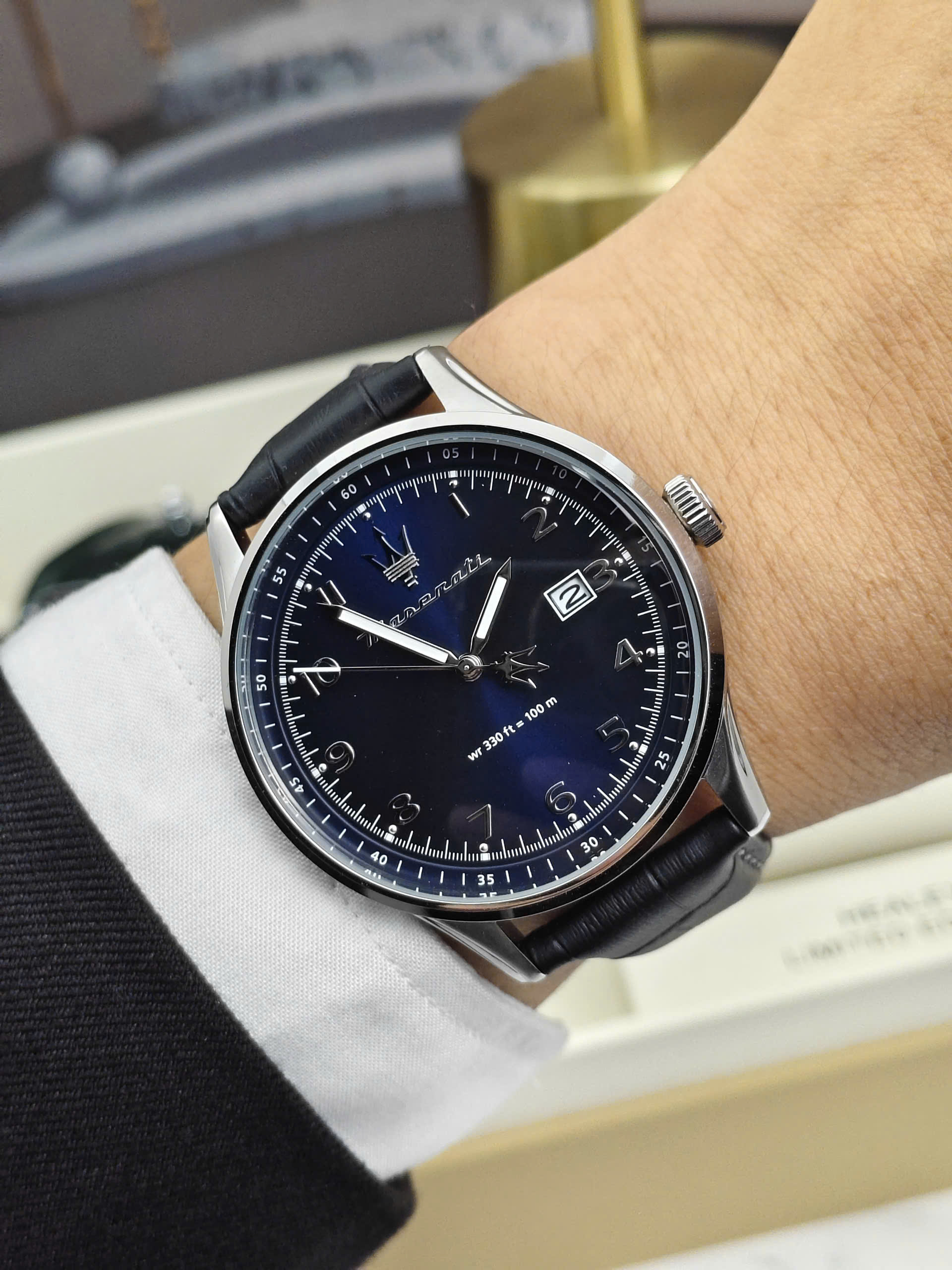 Không chỉ nổi bật về thiết kế, Maserati Sorpasso R8851124003 còn được trang bị khả năng chống nước lên đến 10 ATM, giúp người dùng yên tâm khi rửa tay, đi mưa hoặc tham gia các hoạt động thường ngày. Độ dày 12.55mm tạo nên tổng thể mạnh mẽ và chắc chắn trên cổ tay. Sự kết hợp giữa mặt số xanh cuốn hút và dây da xanh thanh lịch giúp chiếc đồng hồ trở thành phụ kiện hoàn hảo dành cho những quý ông yêu thích phong cách hiện đại và tinh tế.