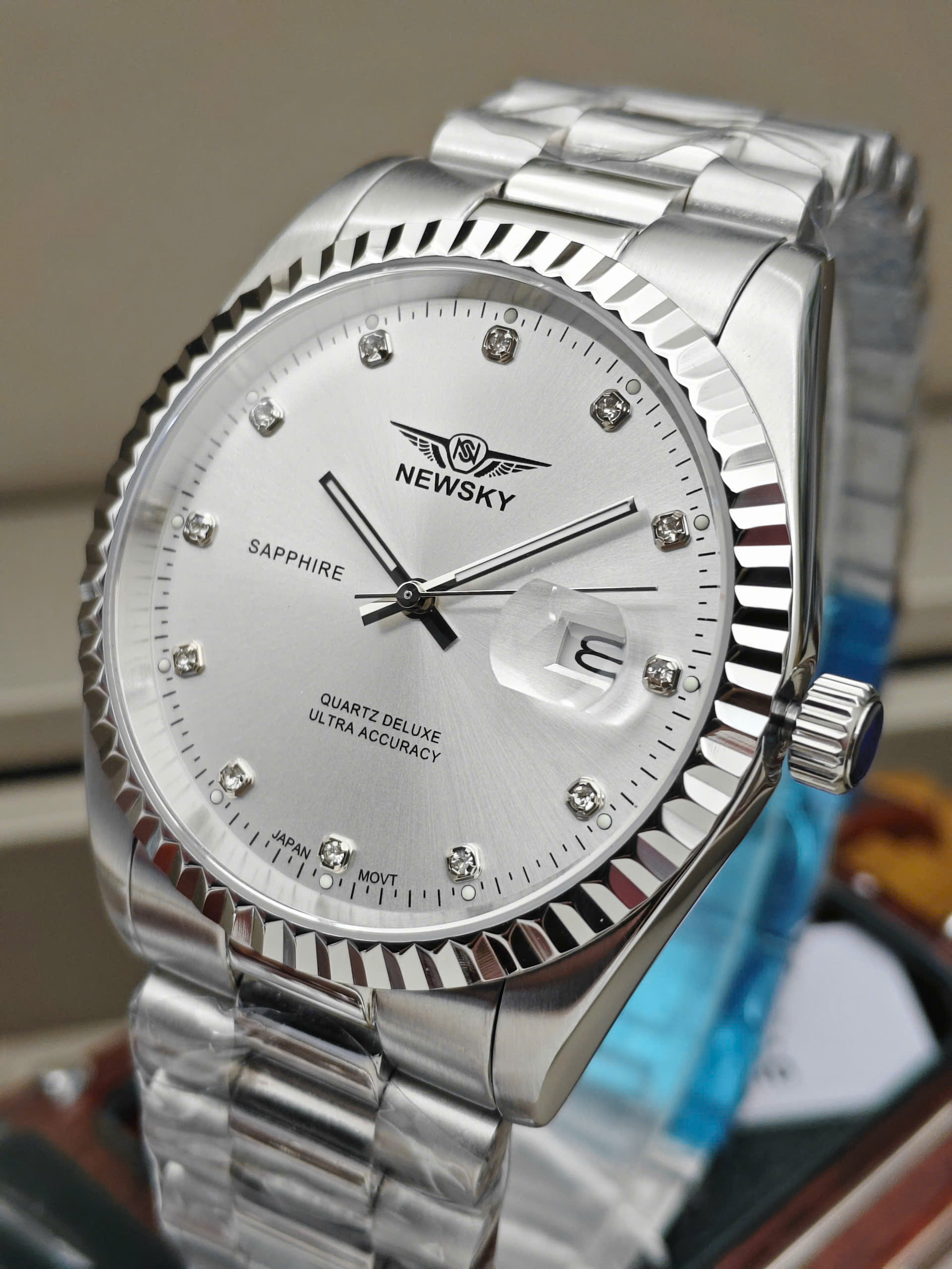 Đồng hồ Newsky NS5020G.S06 được trang bị bộ máy pin Quartz Nhật Bản, nổi tiếng về độ chính xác, bền bỉ và ổn định theo thời gian. Các chức năng cơ bản như giờ, phút, giây và lịch ngày được bố trí rõ ràng, thuận tiện cho sinh hoạt hằng ngày. Mặt kính sapphire cao cấp giúp chống trầy xước hiệu quả, giữ cho đồng hồ luôn sáng đẹp như mới. Chất liệu thép không gỉ mang lại cảm giác chắc chắn, đồng thời tăng tuổi thọ sản phẩm trong quá trình sử dụng lâu dài.