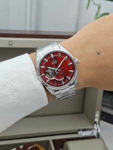 Đồng hồ nam Orient Small Second Open Heart RA-AR0010R10B vừa được ra mắt năm 2024 thuộc dòng sản phẩm Contemporary Semi Skeleton (Small Second Open Heart). Đặc điểm của dòng này là thiết kế ô kim giây nhỏ (kim rốn) nằm kế ô hở tim đầy nổi bật, cỗ máy của Orient thực sự thu hút mọi sự chú ý ngay từ cái nhìn đầu tiên.
