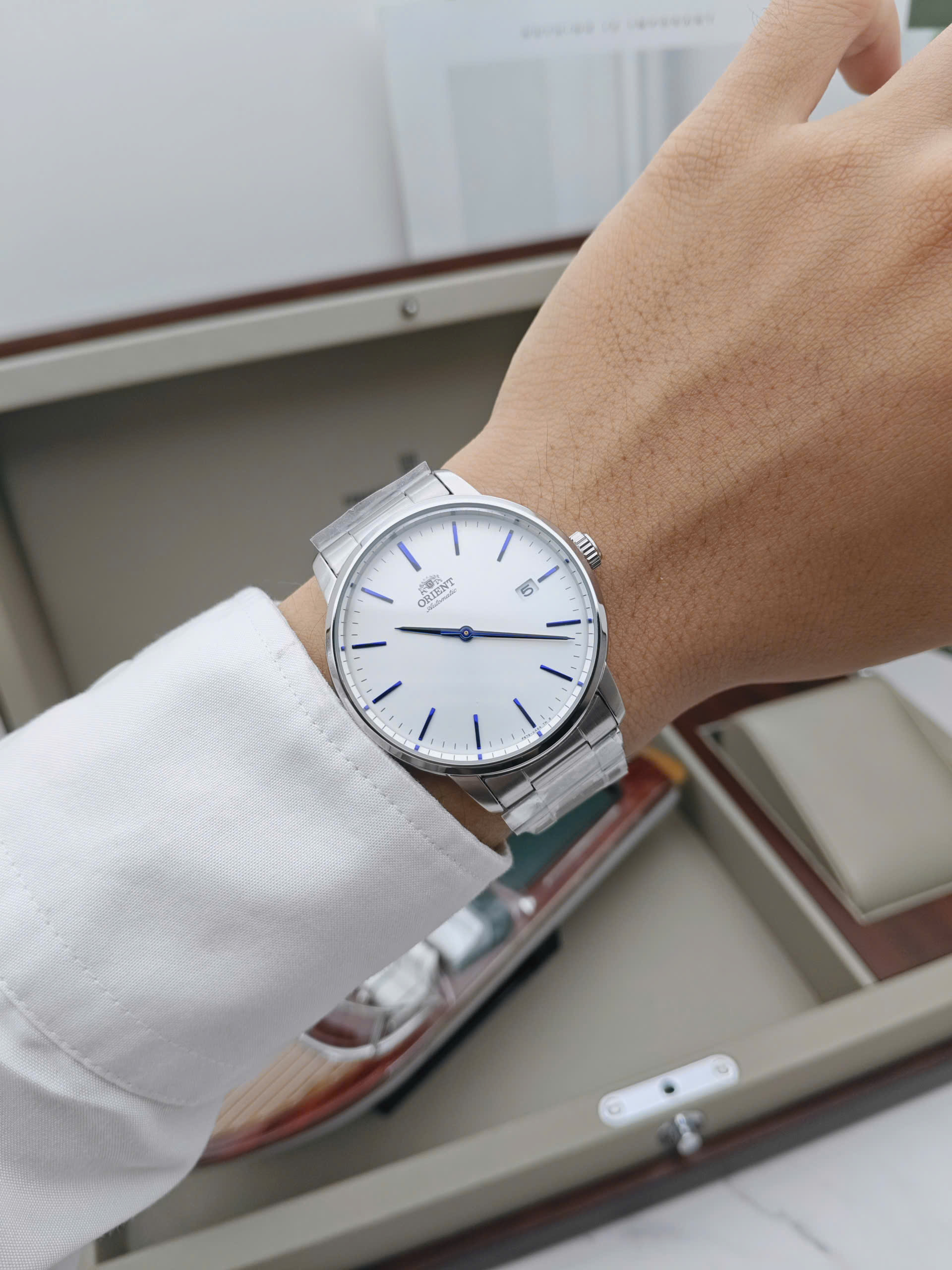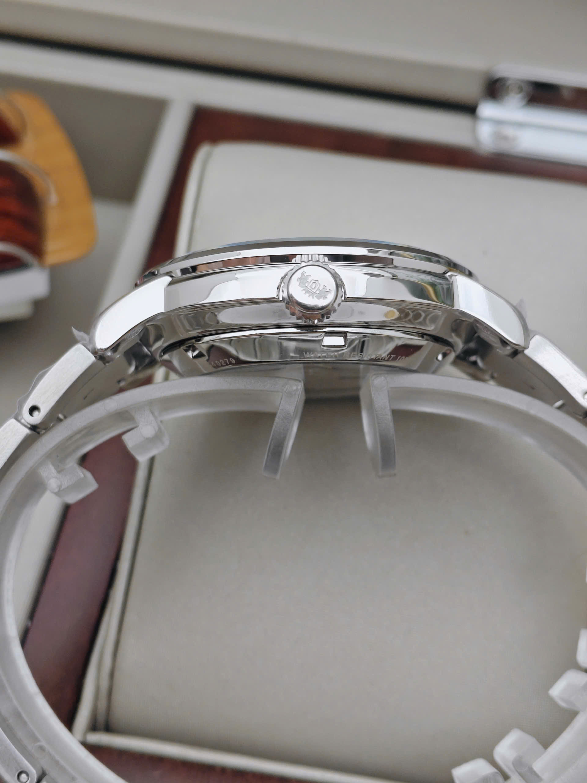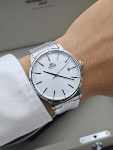 Sự kết hợp hoàn hảo giữa thẩm mỹ và độ bền Khác với nhiều mẫu đồng hồ Dress Watch thường “nhạy cảm” với nước, Orient Maestro gây ấn tượng mạnh mẽ với khả năng chống nước lên tới 100m (10 ATM). Thông số này cho phép bạn thoải mái sử dụng trong sinh hoạt hàng ngày, đi mưa, hay thậm chí đi bơi nhẹ mà không cần lo lắng. Kết hợp cùng mặt kính cứng chịu lực tốt và dây đeo kim loại dạng lưới (hoặc thép) ôm tay, đây chính là món phụ kiện đa năng, vừa là điểm nhấn thời trang, vừa là người bạn đồng hành bền bỉ trên mọi hành trình của phái mạnh.