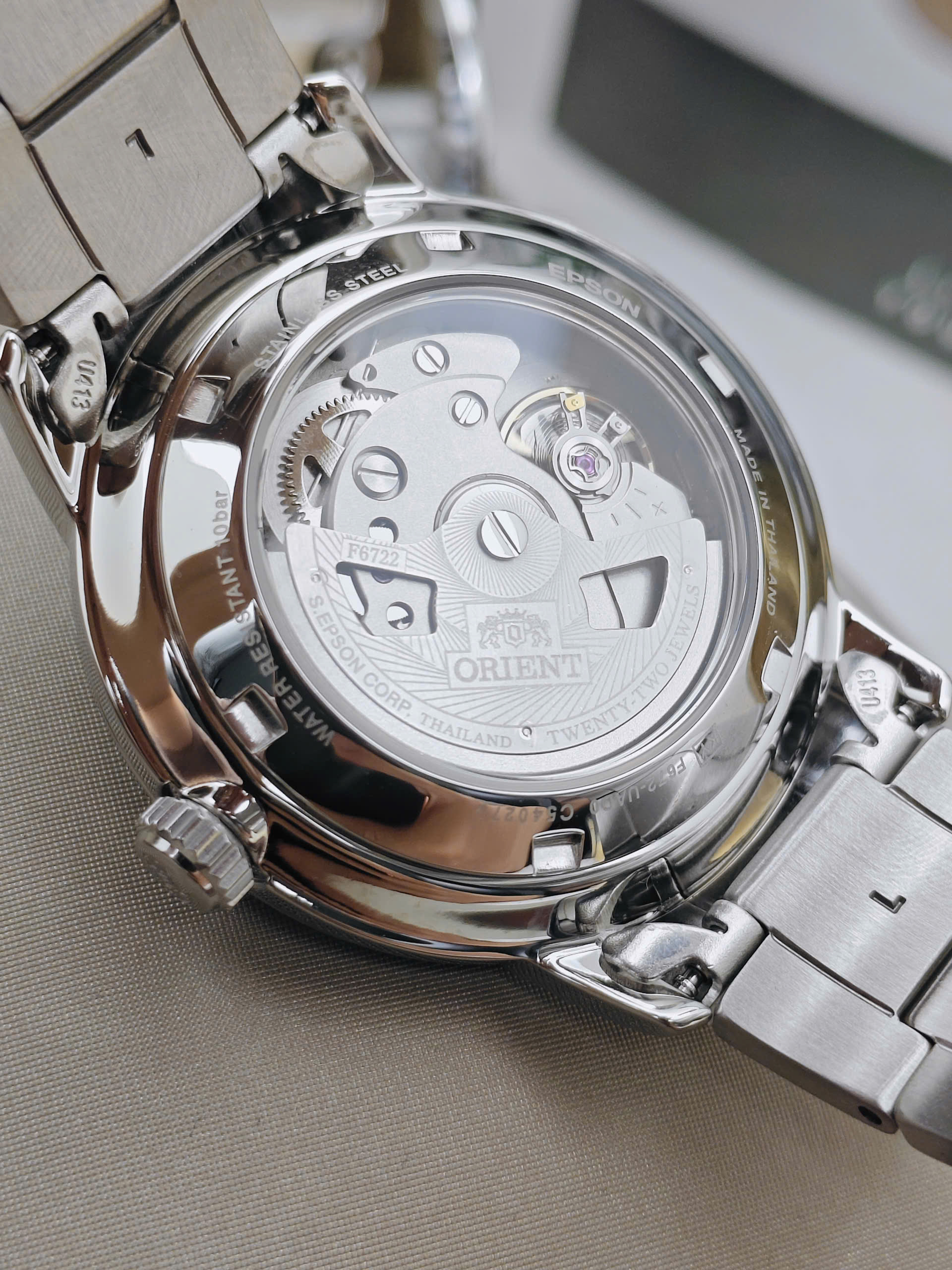 Bộ máy cơ khí mạnh mẽ và tiện dụng Ẩn sau vẻ ngoài hào hoa là bộ máy Automatic Caliber F6722 “in-house” trứ danh của Orient. Đây là dòng máy hiện đại được trang bị đầy đủ các tính năng cao cấp như lên cót tay (Hand-winding) và dừng kim giây khi chỉnh giờ (Hacking Stop), giúp người dùng dễ dàng thao tác và điều chỉnh chính xác. Với khả năng trữ cót lên đến 40 giờ và vận hành ổn định, Orient Maestro đảm bảo sự bền bỉ và tin cậy trong suốt quá trình sử dụng, minh chứng cho chất lượng vượt trội của đồng hồ Nhật Bản.