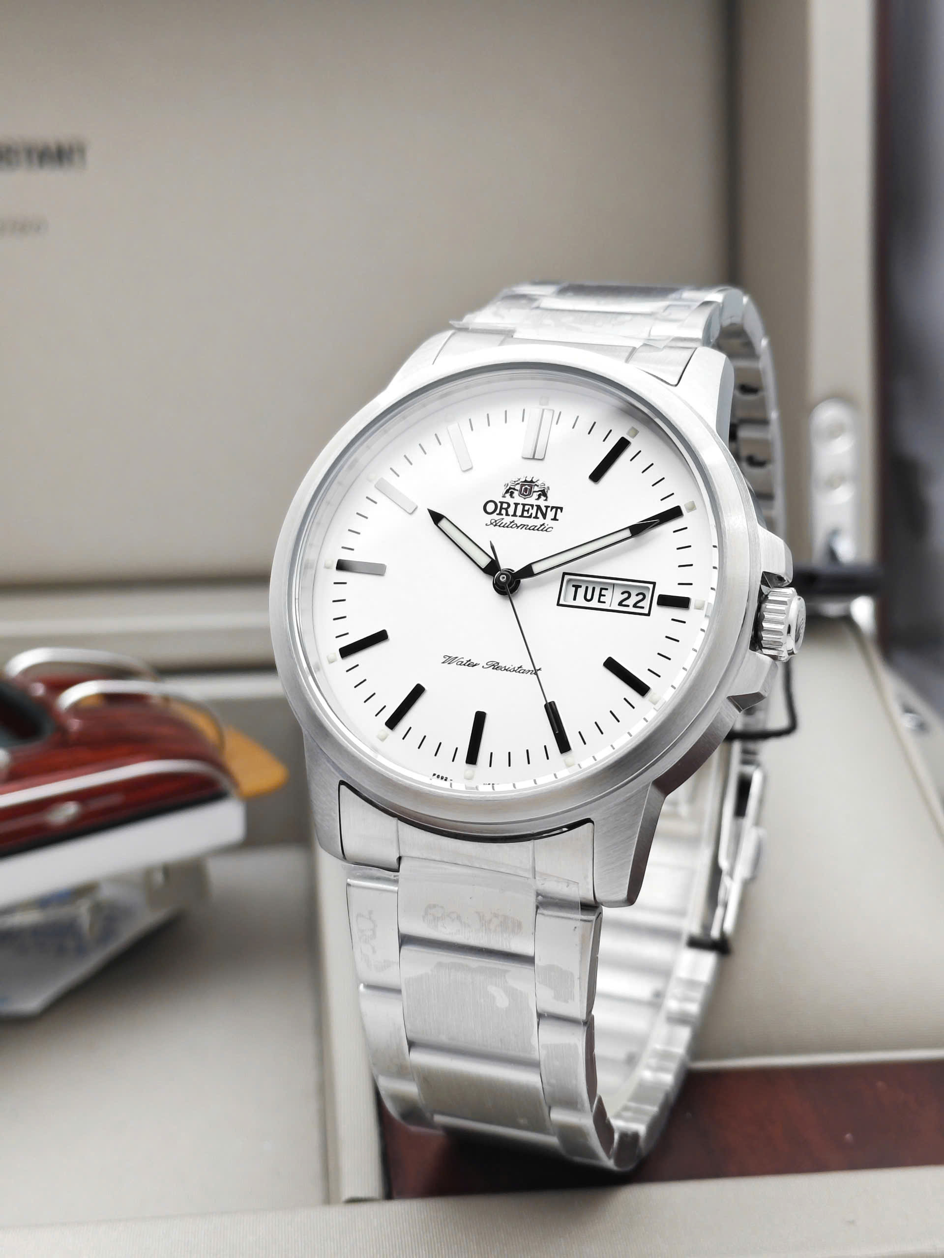 Đồng hồ nam Tự động Orient Mặt trắng vỏ trắng Lịch đôi RA-AA0C03S39B (RA-AA0C03S)