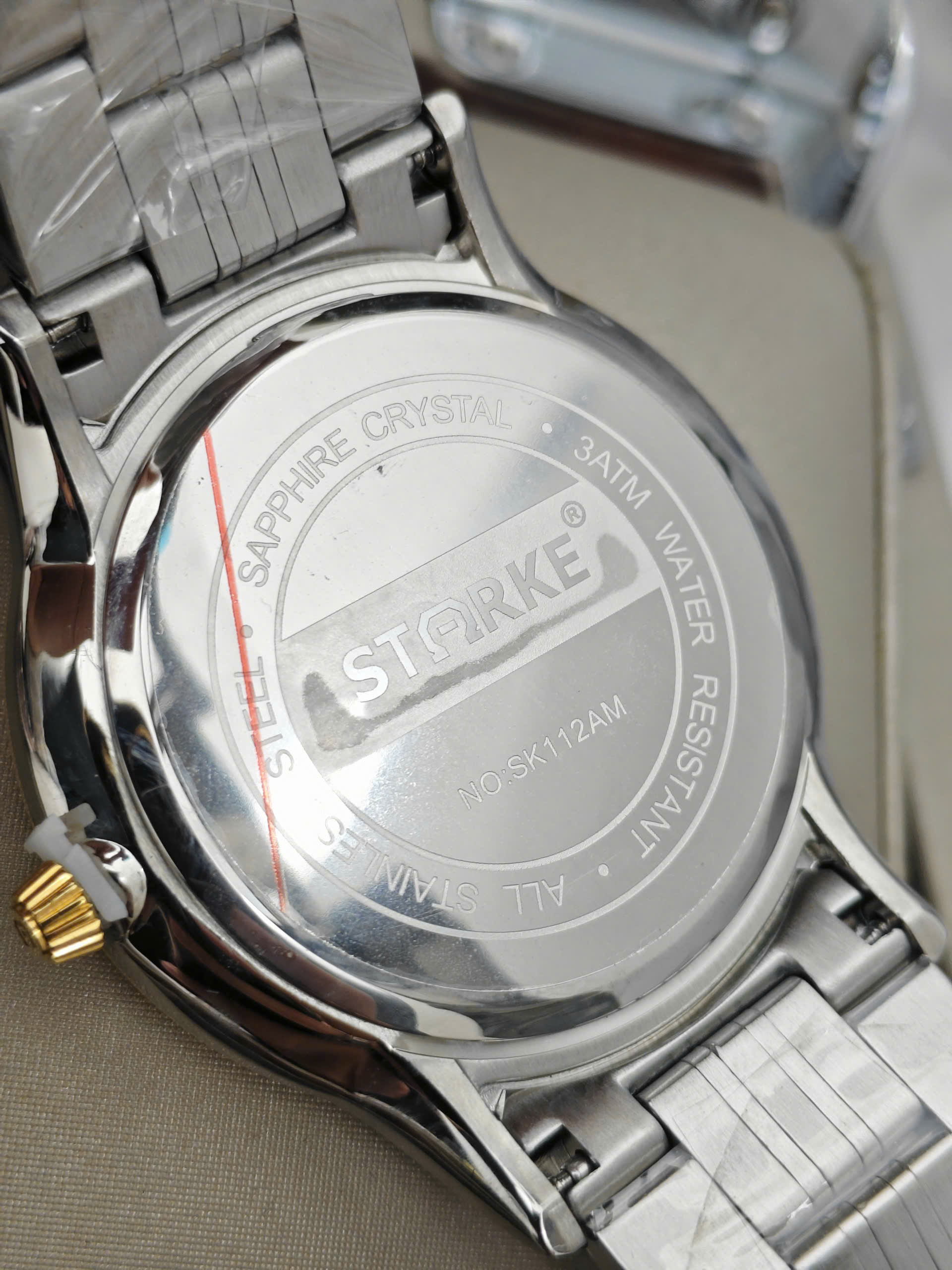 Starke SK112AM-AAW được chế tác từ thép không gỉ cao cấp, mang lại độ bền cao, khả năng chống ăn mòn và giữ màu tốt theo thời gian. Độ dày chỉ 8mm là điểm cộng lớn, giúp đồng hồ trở nên mỏng nhẹ, thanh thoát và mang lại cảm giác đeo thoải mái suốt ngày dài. Mặt kính Sapphire Crystal chống trầy xước hiệu quả, bảo vệ mặt số luôn sáng rõ. Với độ chịu nước 3ATM, sản phẩm đáp ứng tốt các nhu cầu sinh hoạt cơ bản như rửa tay hay đi mưa nhẹ.