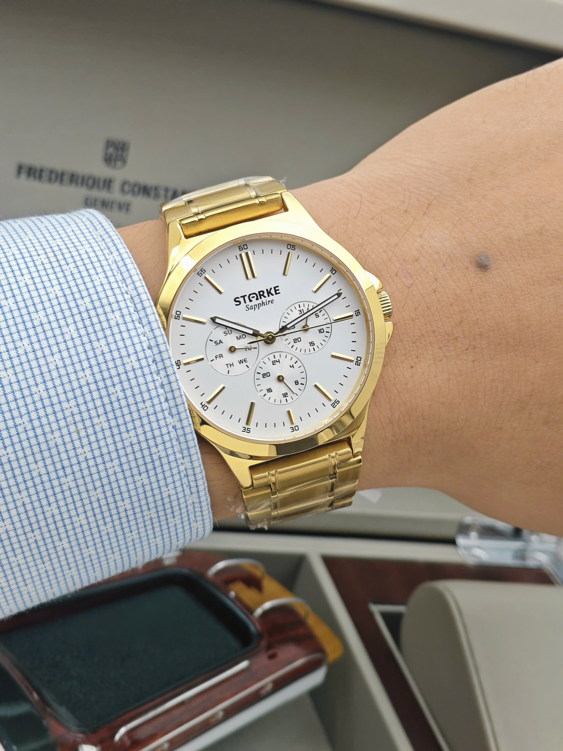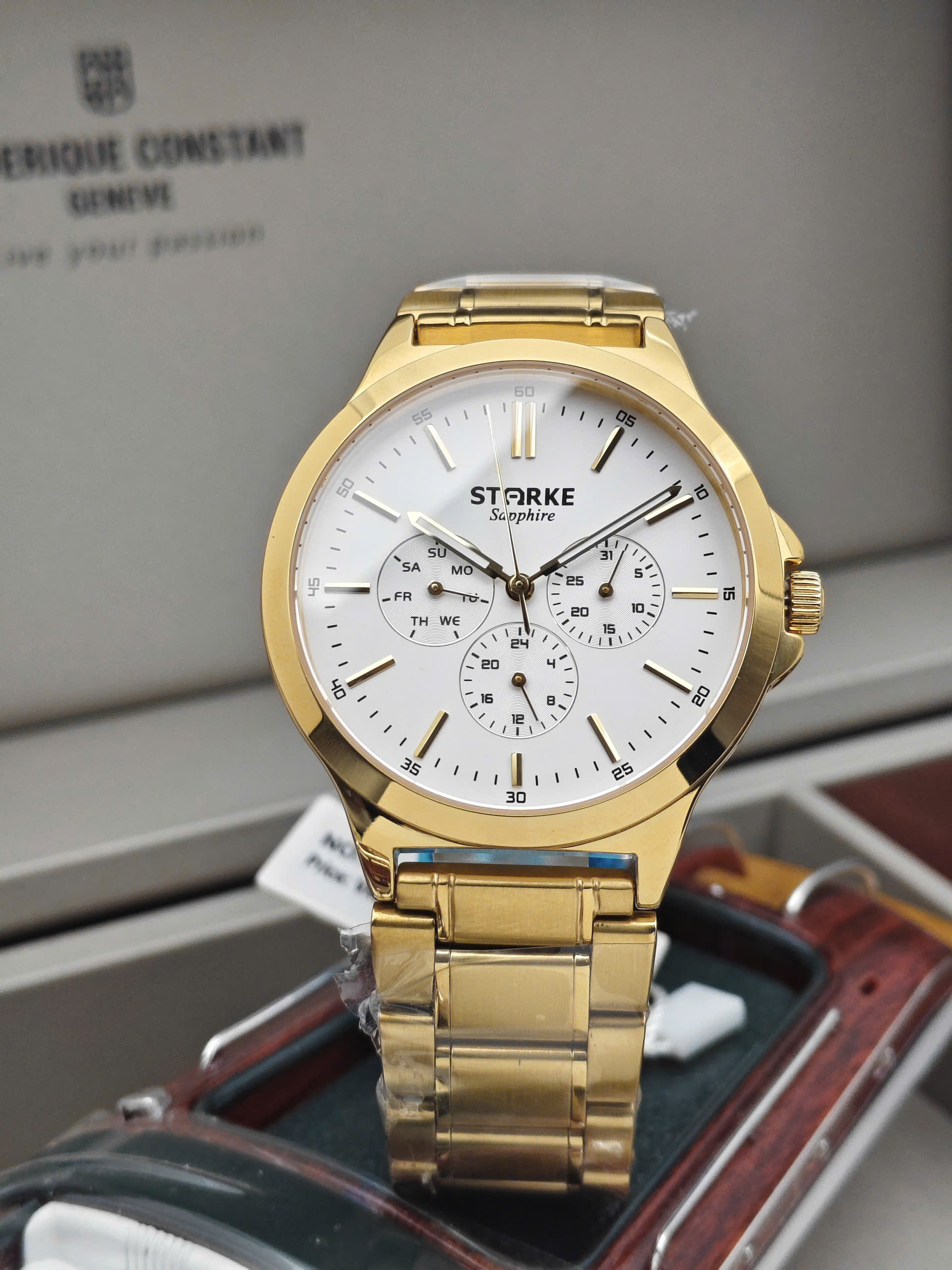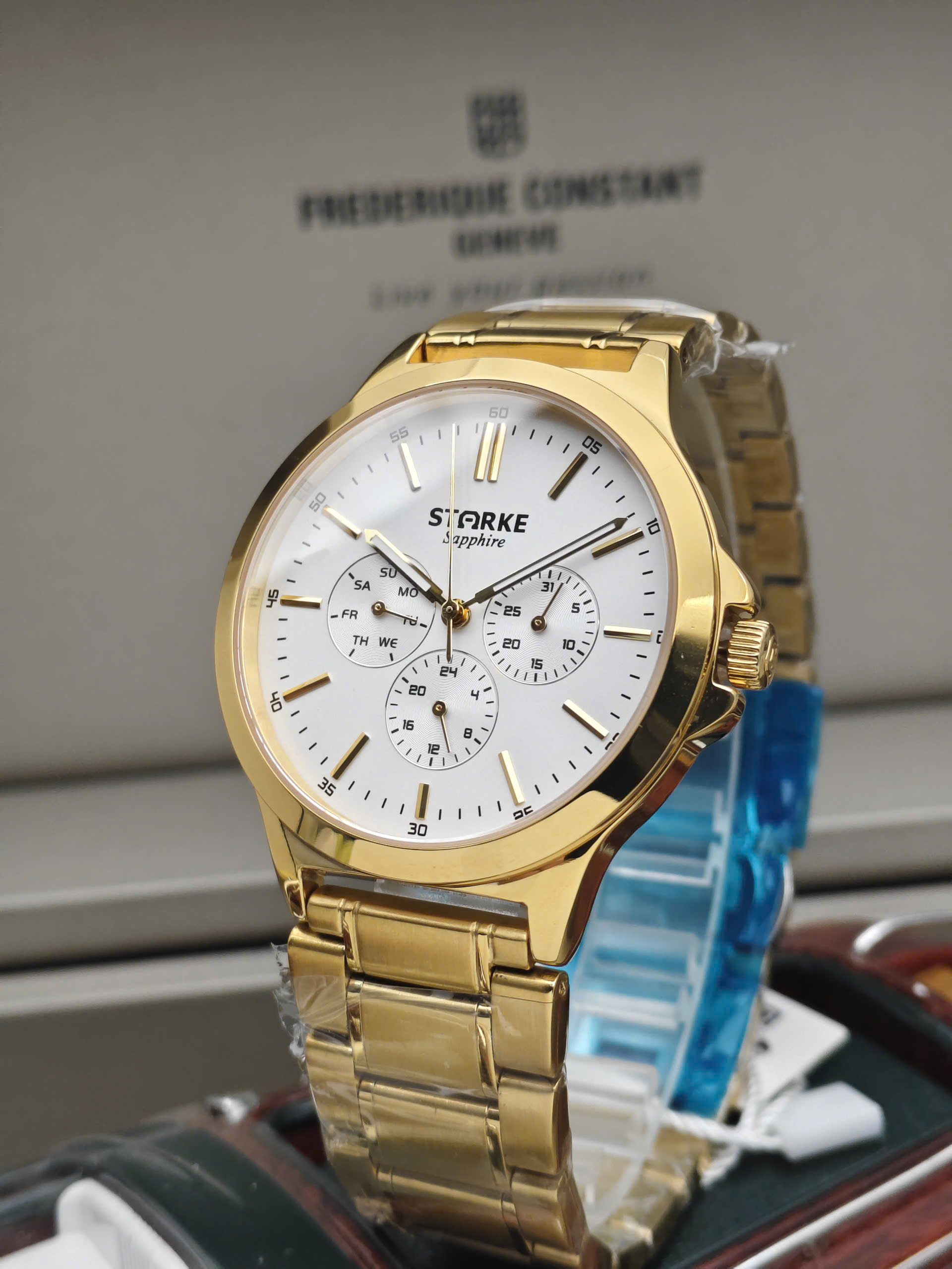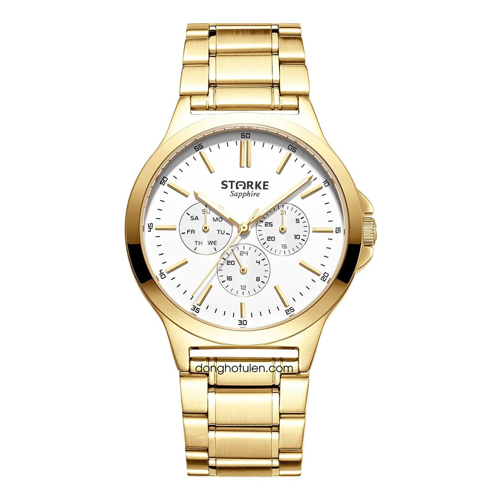 Đồng hồ nam Starke SK153AM-GGW là sự kết hợp hài hòa giữa phong cách châu Âu lịch lãm và độ chính xác bền bỉ. Thuộc thương hiệu Starke đến từ Đức, sản phẩm gây ấn tượng với thiết kế vỏ và dây bằng thép không gỉ mạ vàng sang trọng, phù hợp cho quý ông yêu thích vẻ ngoài đẳng cấp. Mặt số trắng tinh tế, đường kính 41mm vừa vặn cổ tay nam giới, mang lại cảm giác thanh lịch nhưng vẫn mạnh mẽ. Đây là mẫu đồng hồ lý tưởng để sử dụng hằng ngày lẫn trong các dịp trang trọng.