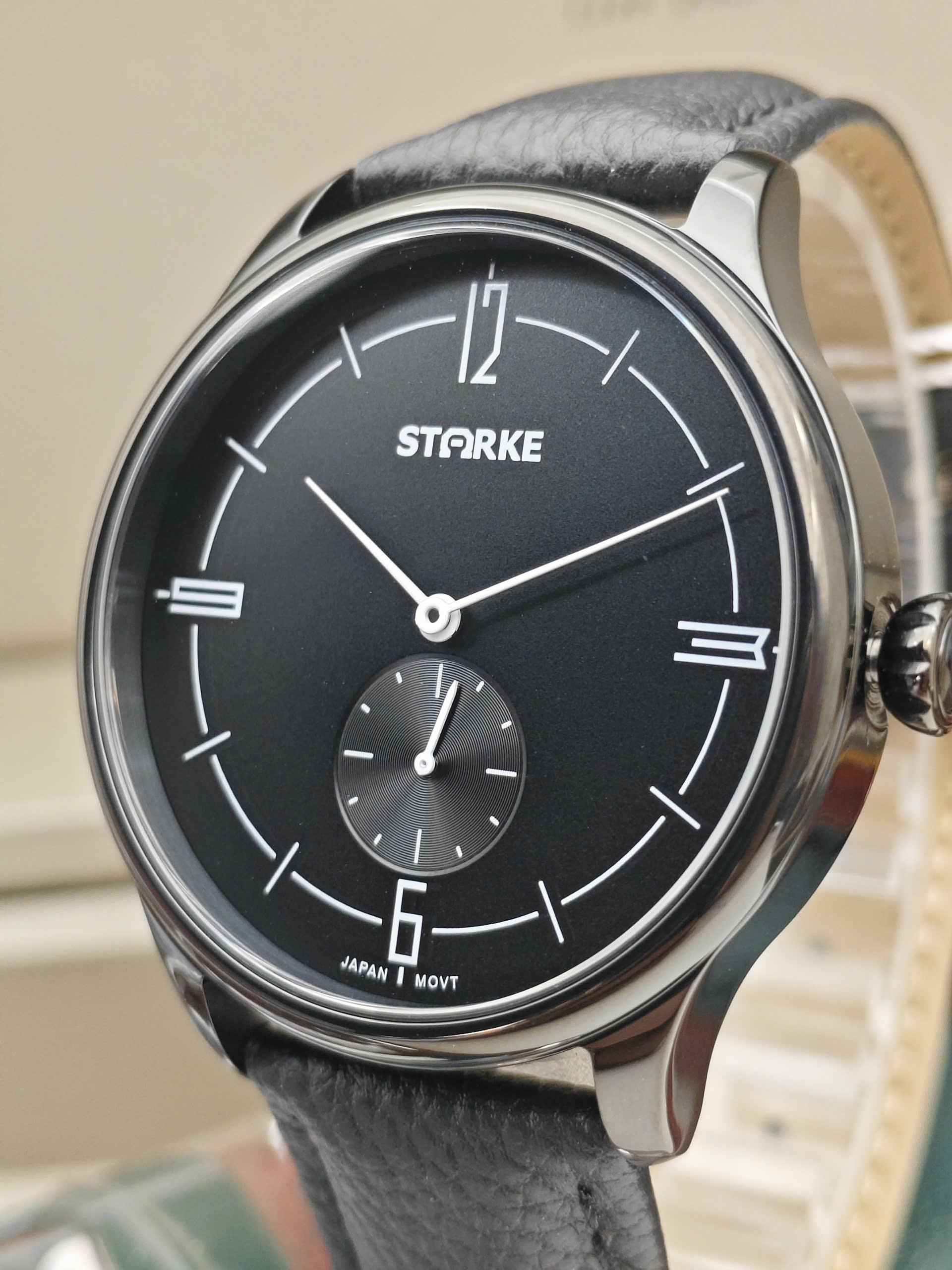 Đồng hồ Starke SK186PM-BBB sử dụng bộ máy pin Quartz Nhật Bản cho độ chính xác cao và hoạt động ổn định theo thời gian. Các chức năng cơ bản như giờ, phút, giây được bố trí rõ ràng, dễ quan sát và thuận tiện khi sử dụng. Vỏ thép không gỉ phủ màu đen mang lại cảm giác chắc chắn và bền bỉ. Dây da đen mềm mại, tạo sự thoải mái khi đeo lâu. Mặt kính sapphire chống trầy xước giúp bảo vệ đồng hồ hiệu quả trong quá trình sử dụng.