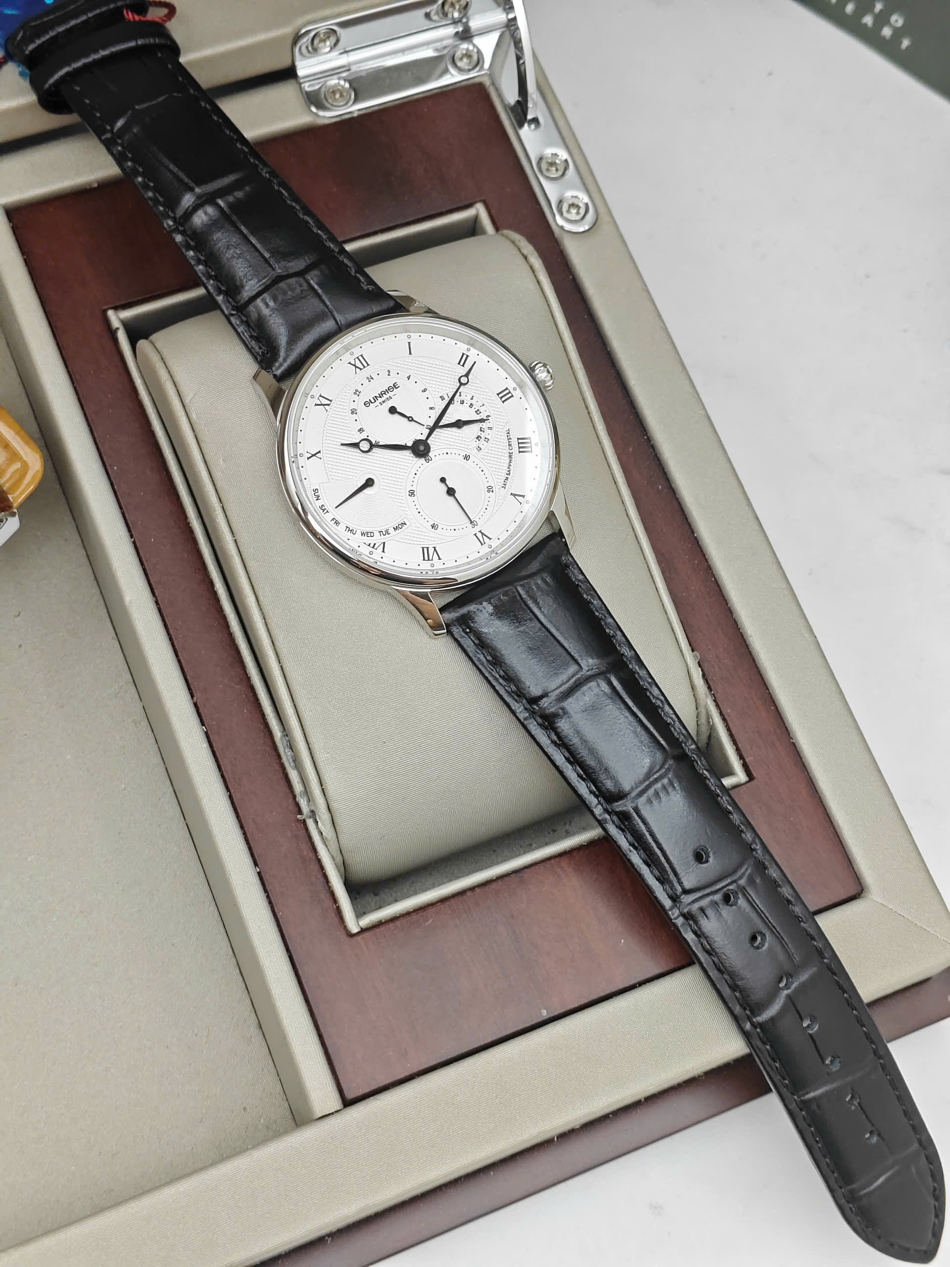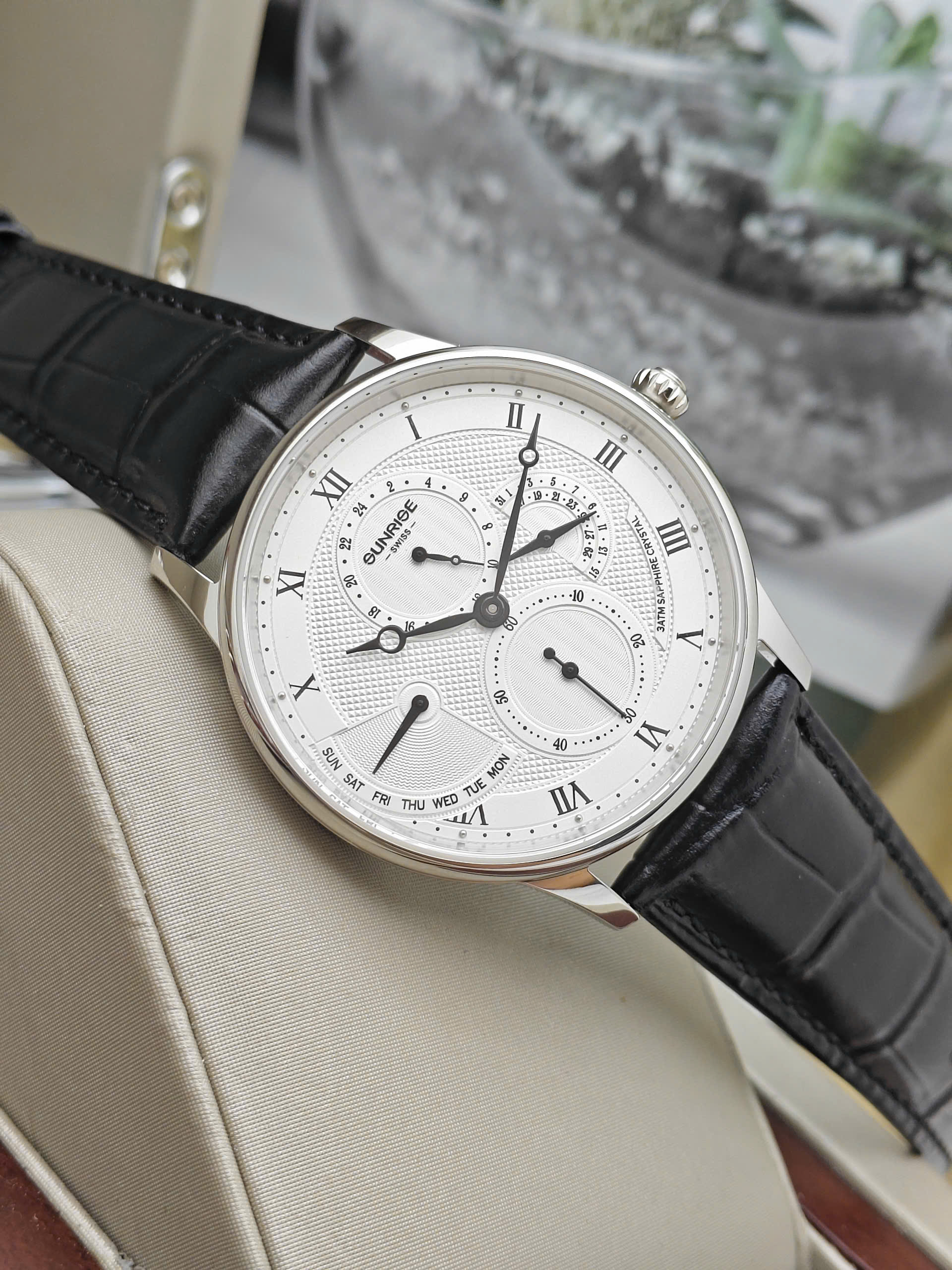 Sunrise 1134pa-White phiên bản dây da mang đến một góc nhìn hoàn toàn mới cho đấng mày râu yêu thích sự hoài cổ và tinh tế. Điểm nhấn làm nên sự khác biệt chính là chất liệu dây da mềm mại, ôm trọn lấy cổ tay, tạo nên một tổng thể hài hòa và vô cùng lịch lãm. Thiết kế mặt số với các chi tiết cọc số và bộ kim được vuốt nhọn sắc sảo giúp chiếc đồng hồ không chỉ dừng lại ở vai trò là một cỗ máy thời gian, mà còn là một món phụ kiện hoàn hảo để kết hợp cùng áo sơ mi hay những bộ suit công sở sang trọng.