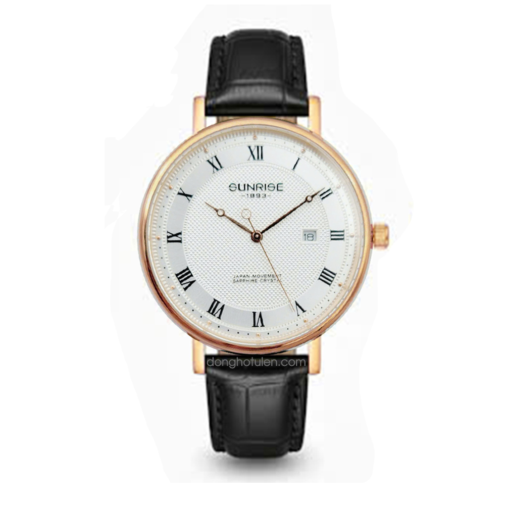 Đồng hồ nam Sunrise Viền Vàng hồng Mặt Vàng 1257PA-RGW-LBk